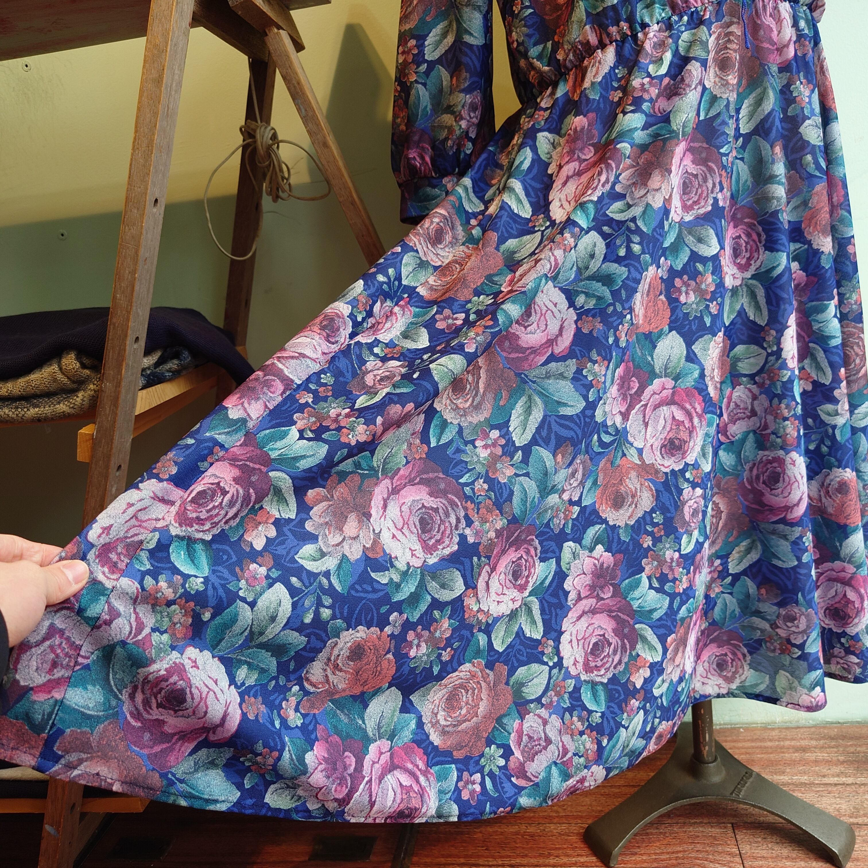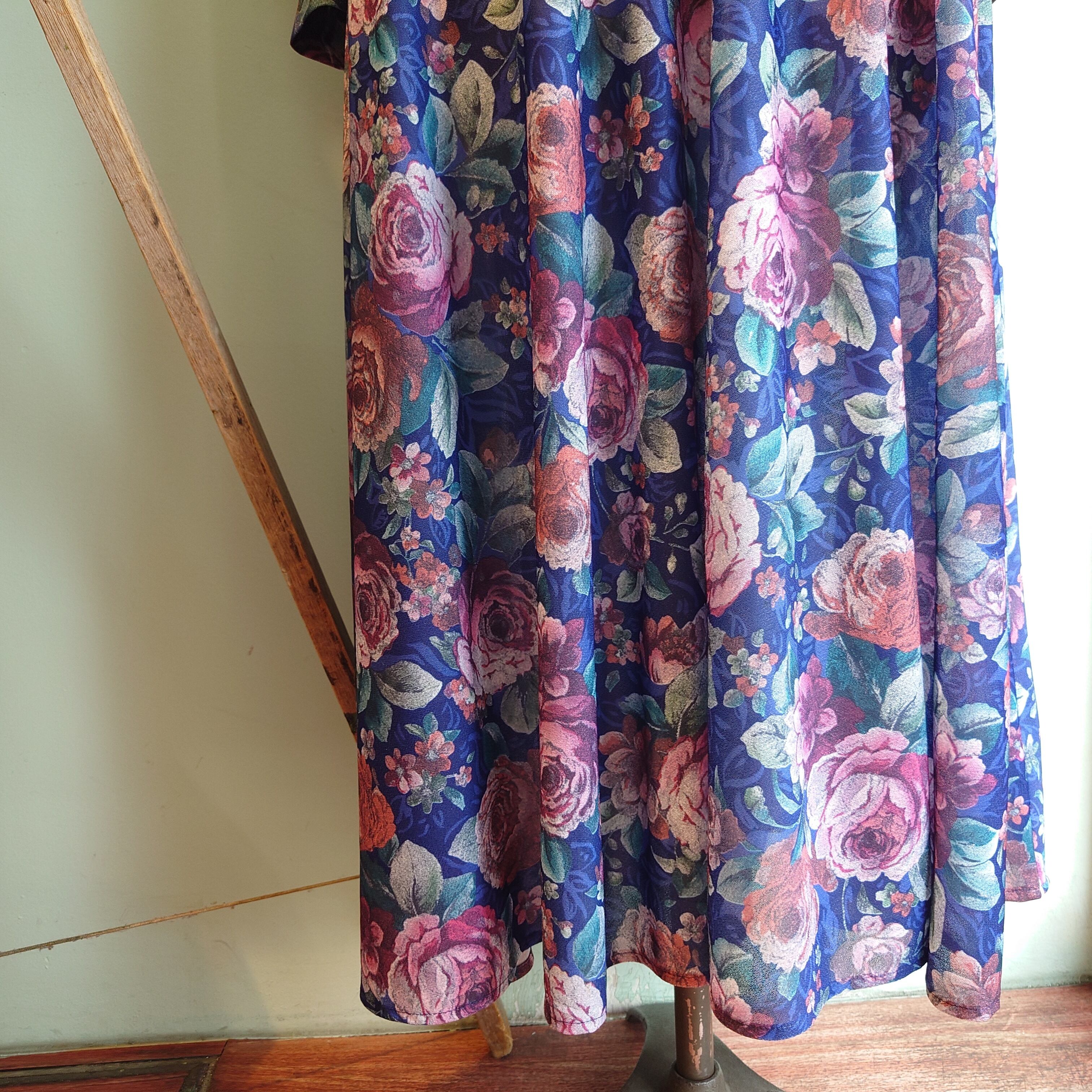 California LOOKS 70-80s vintage ヴィンテージドレス 総柄ワンピース フローラルドレス ネイビー 花柄