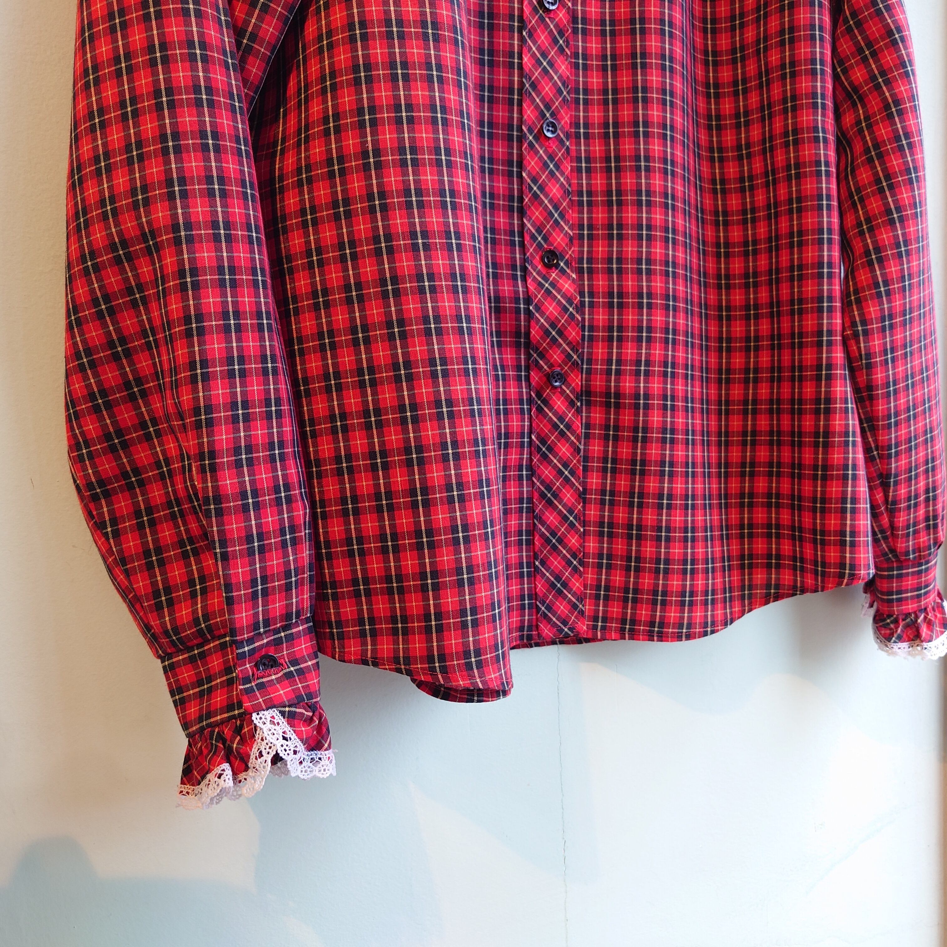Shapely 70s vintage ヴィンテージブラウス フリルブラウス チェックブラウス 赤系 タータン 14