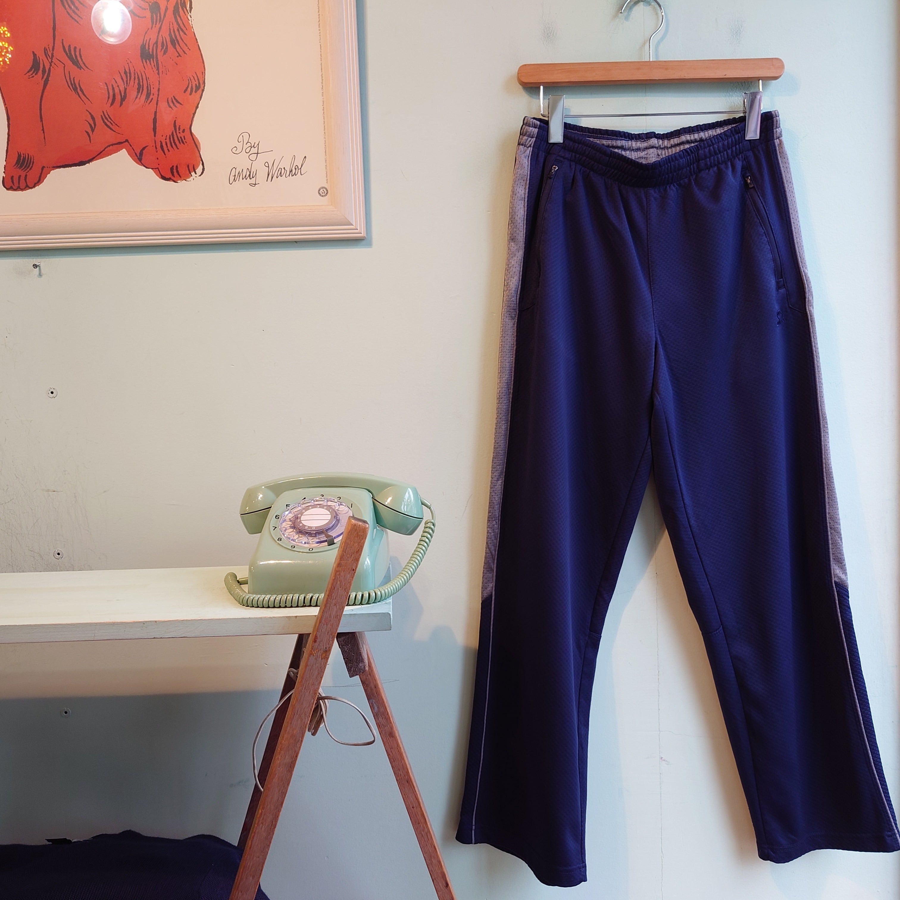 これぞジャージパンツなサイドライン、ウエストの割にゆるっと履けるテーパードがレトロなスターターのトラックパンツ。表皮はドット状の織りが付いていて、アディダスやナイキとは一味違う面白さ。裏起毛無しでオールシーズンOKな一本です。