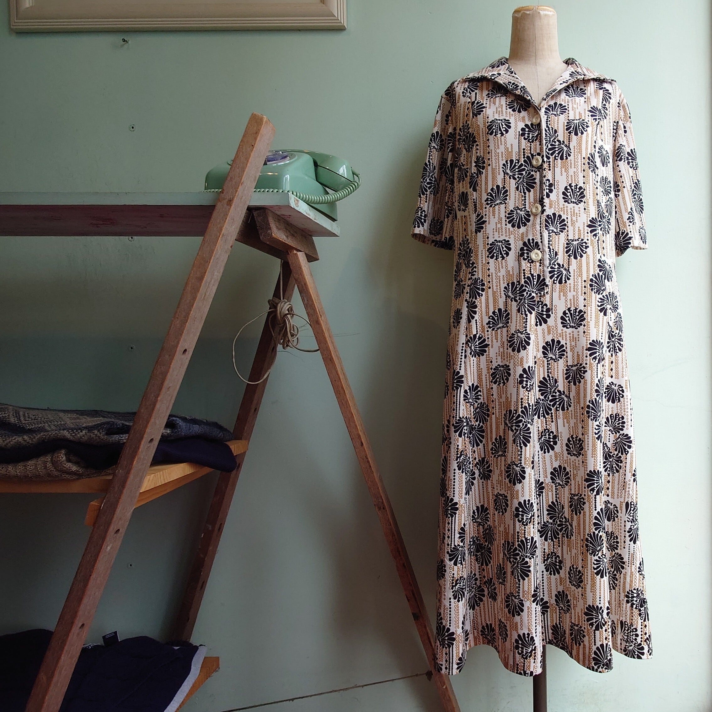 70s vintage ヴィンテージドレス プルオーバードレス 総柄ドレス