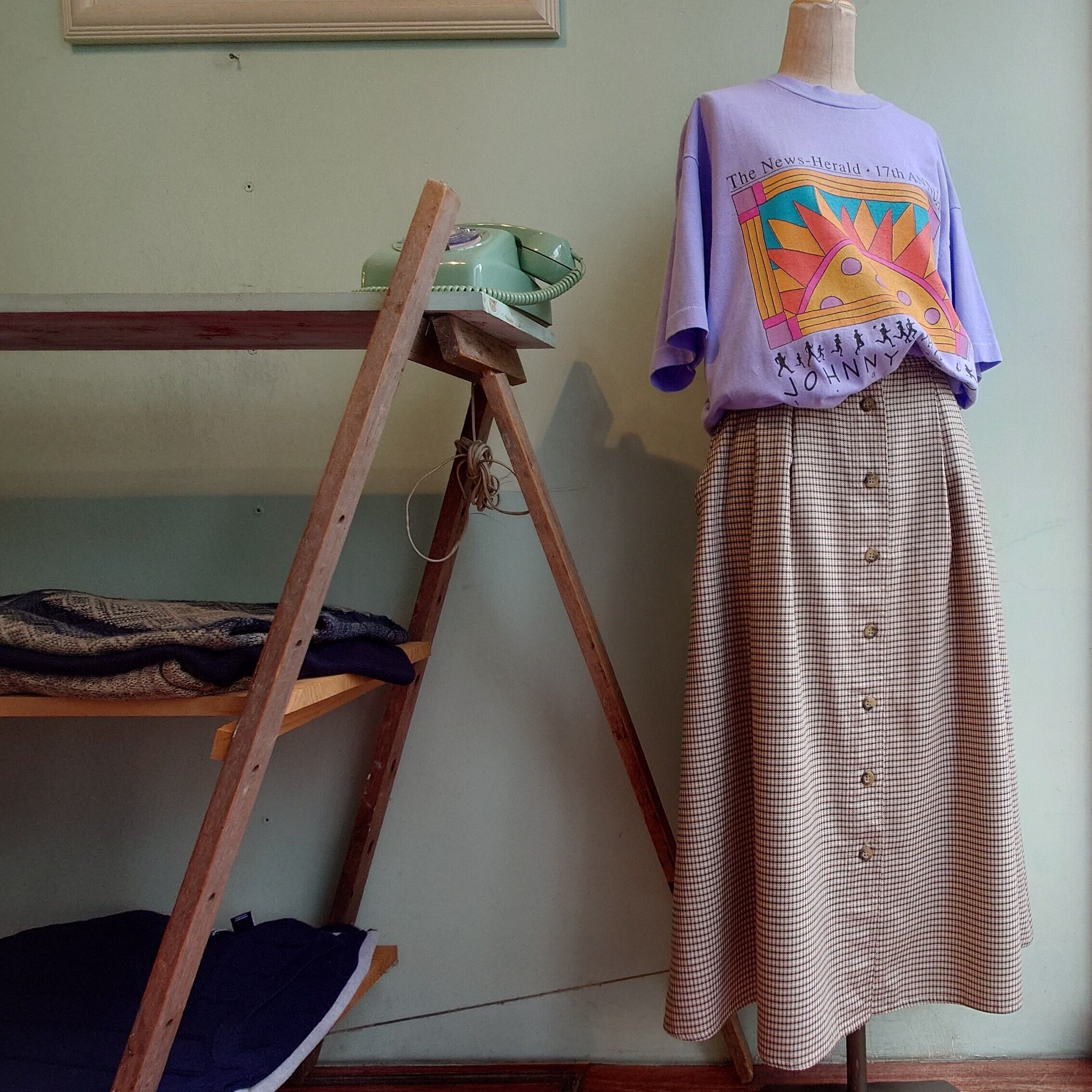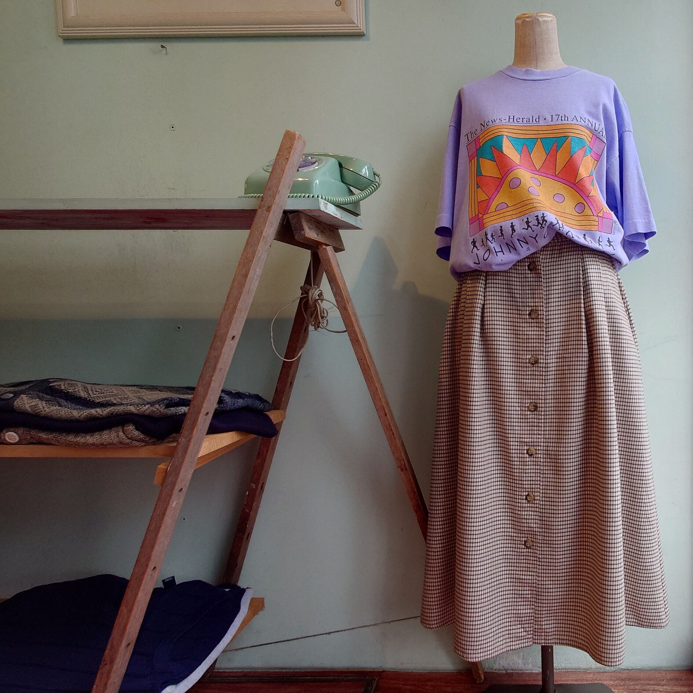 JANZEN 90s vintage ヴィンテージスカート ボタンフロントスカート チェックスカート ベージュ系 USA製