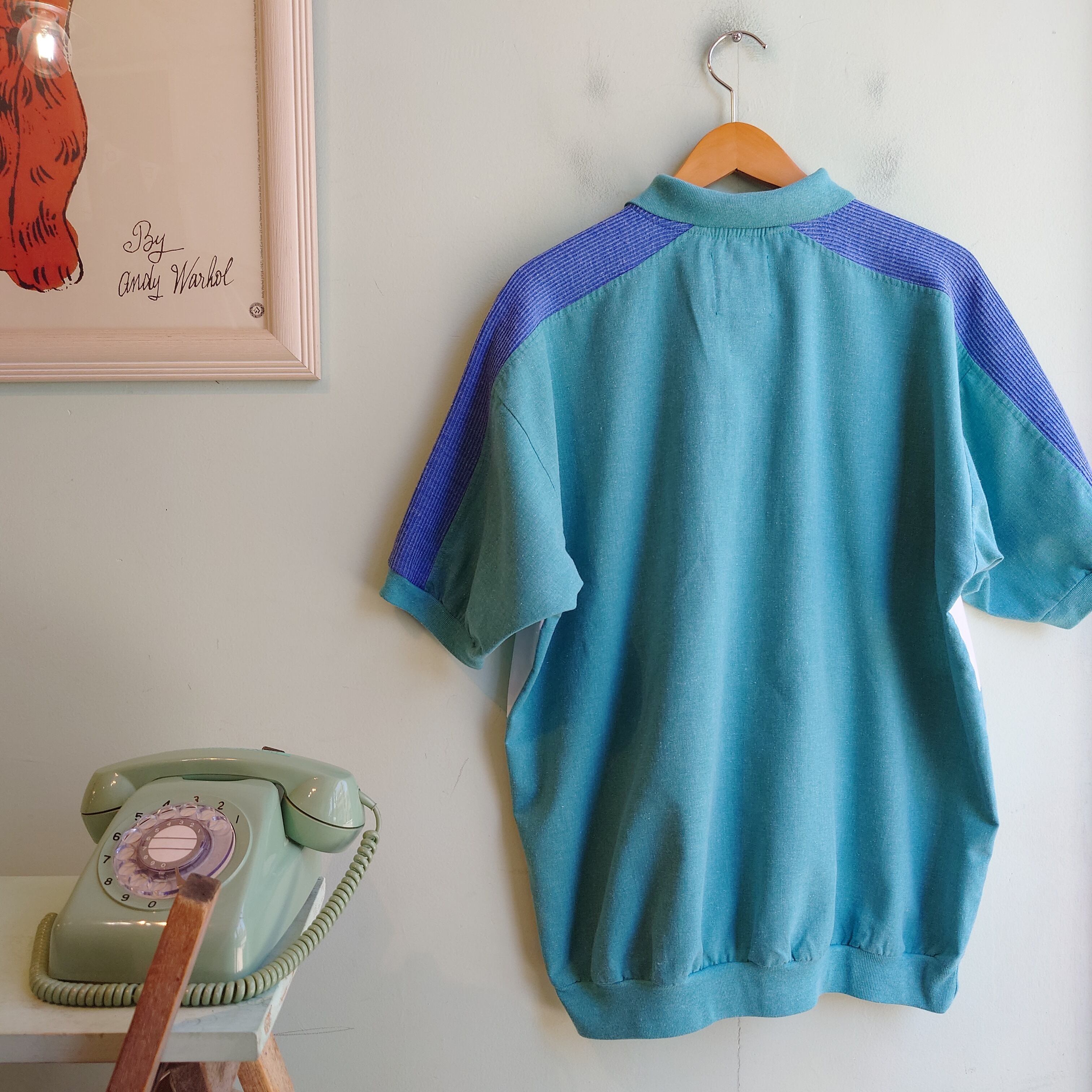 ポロシャツの襟周り、サラッとしたコットンシャツ、スウェットライクな丸さを併せ持った、プルオーバースタイルのシャツ。マルチカラーに素材の切り替え、遊び心あふれるデザイン。このタイプでは珍しくトールサイズで、丸さ控えめシュッとしたシルエットもいい。ユニセックスな雰囲気あふれる古着らしいアイテムです◎
