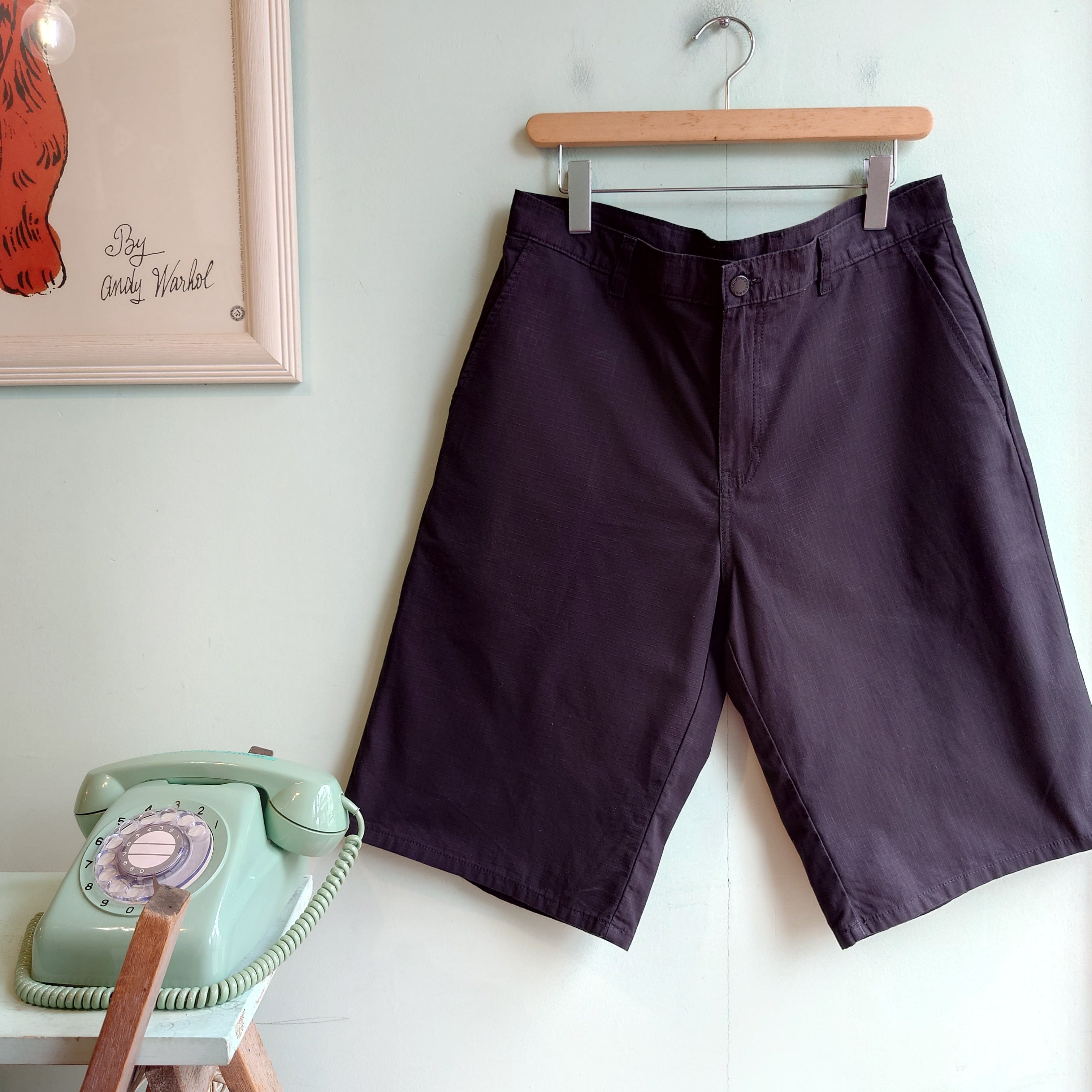 クールなブラックとリップストップらしい軽さが使える、Dickiesの長め丈ショーツ。ワークウエアらしくタフだけど、ツイル系やダックより激しく軽さがあり、夏の涼しさも抜群。しっかりワイドが嬉しい、あらゆるトップスに合わせやすい定番中の定番。