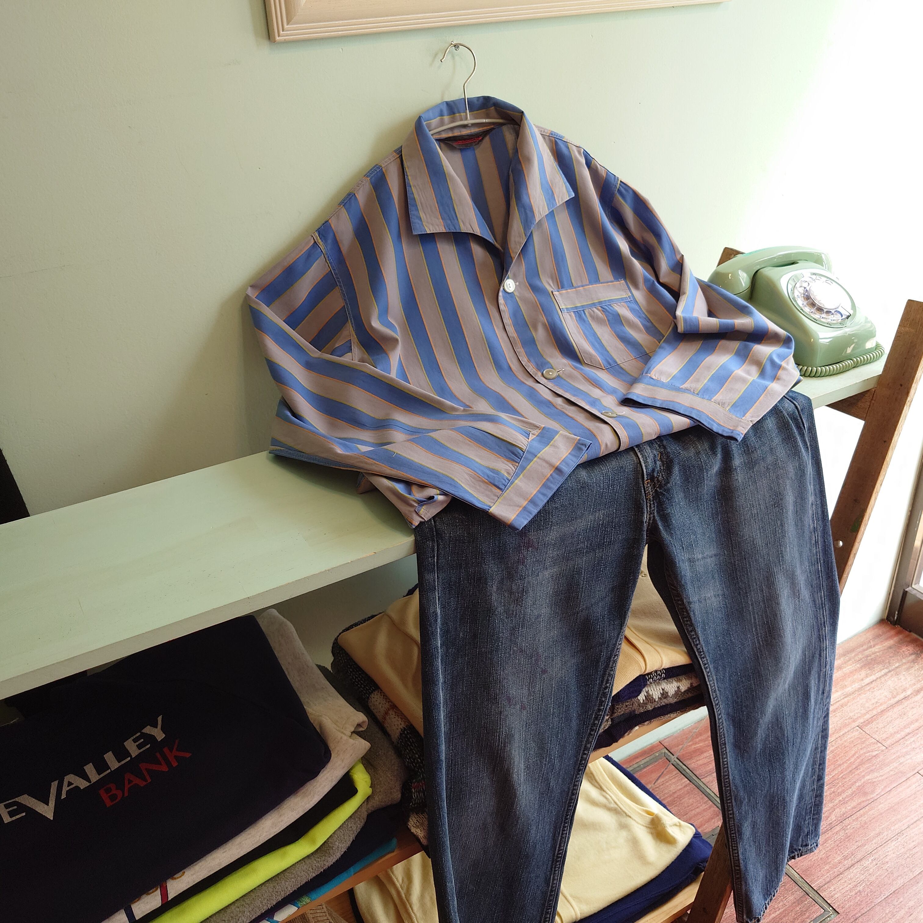 ★『襟のカーブと織りのストライプがかわいいレトロパジャマ』