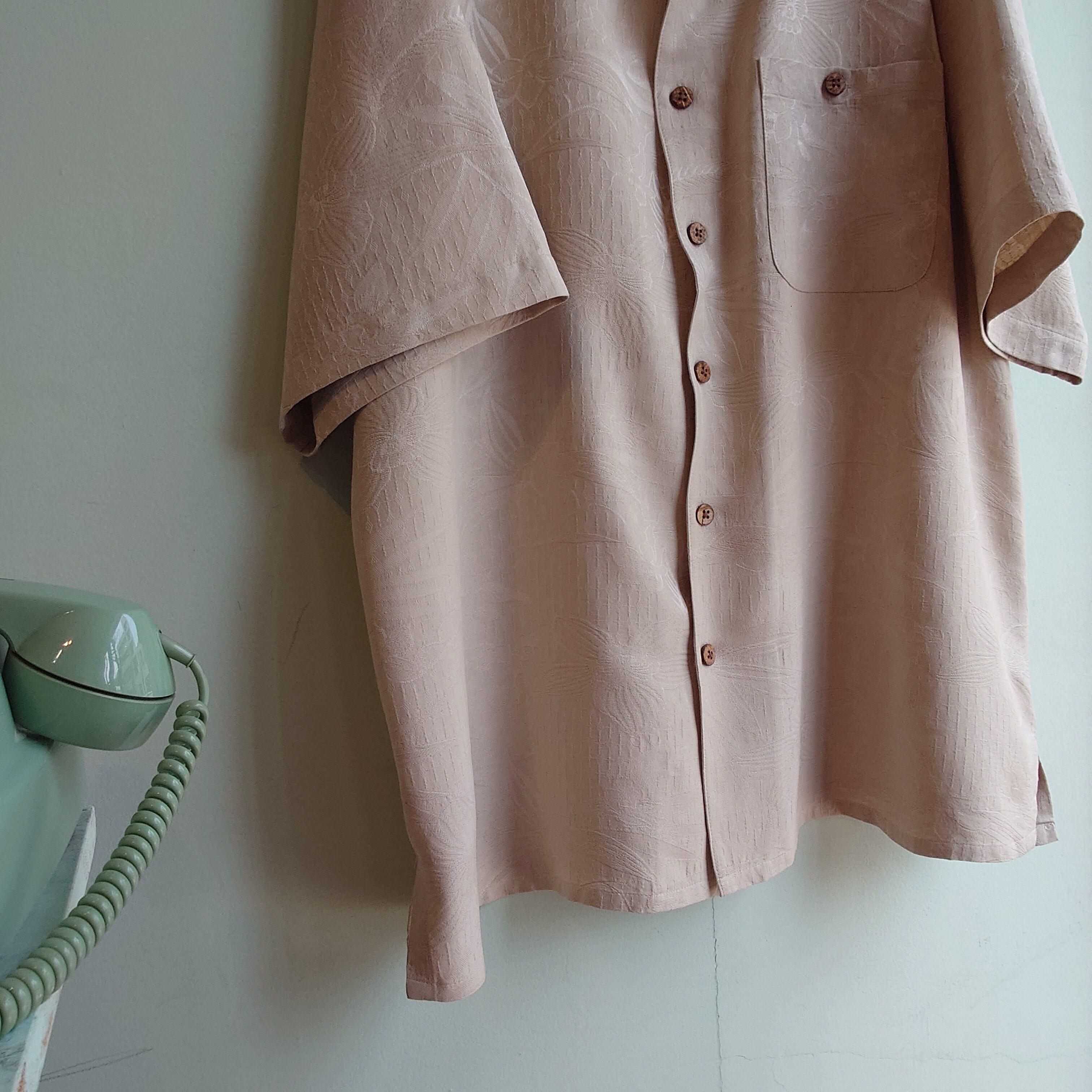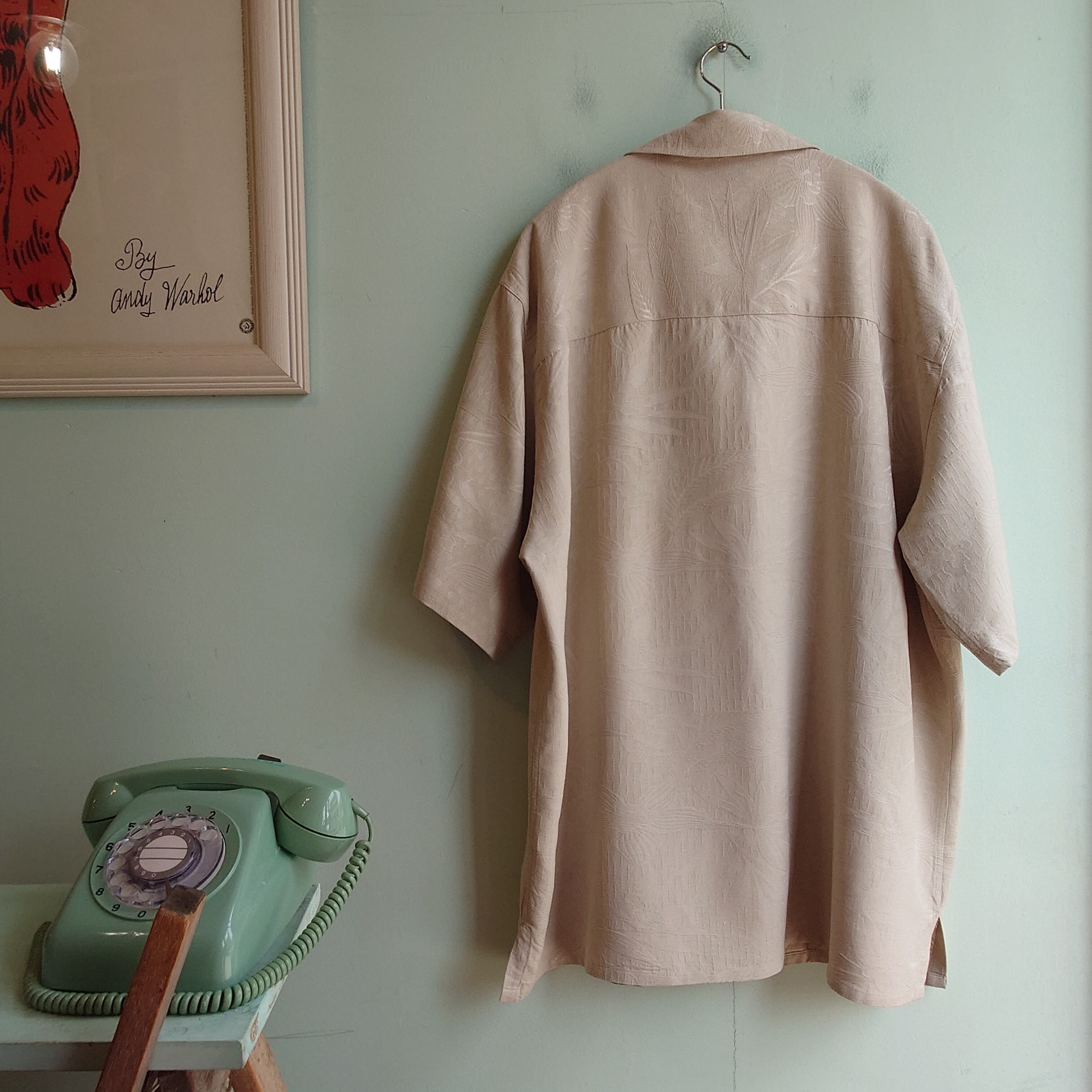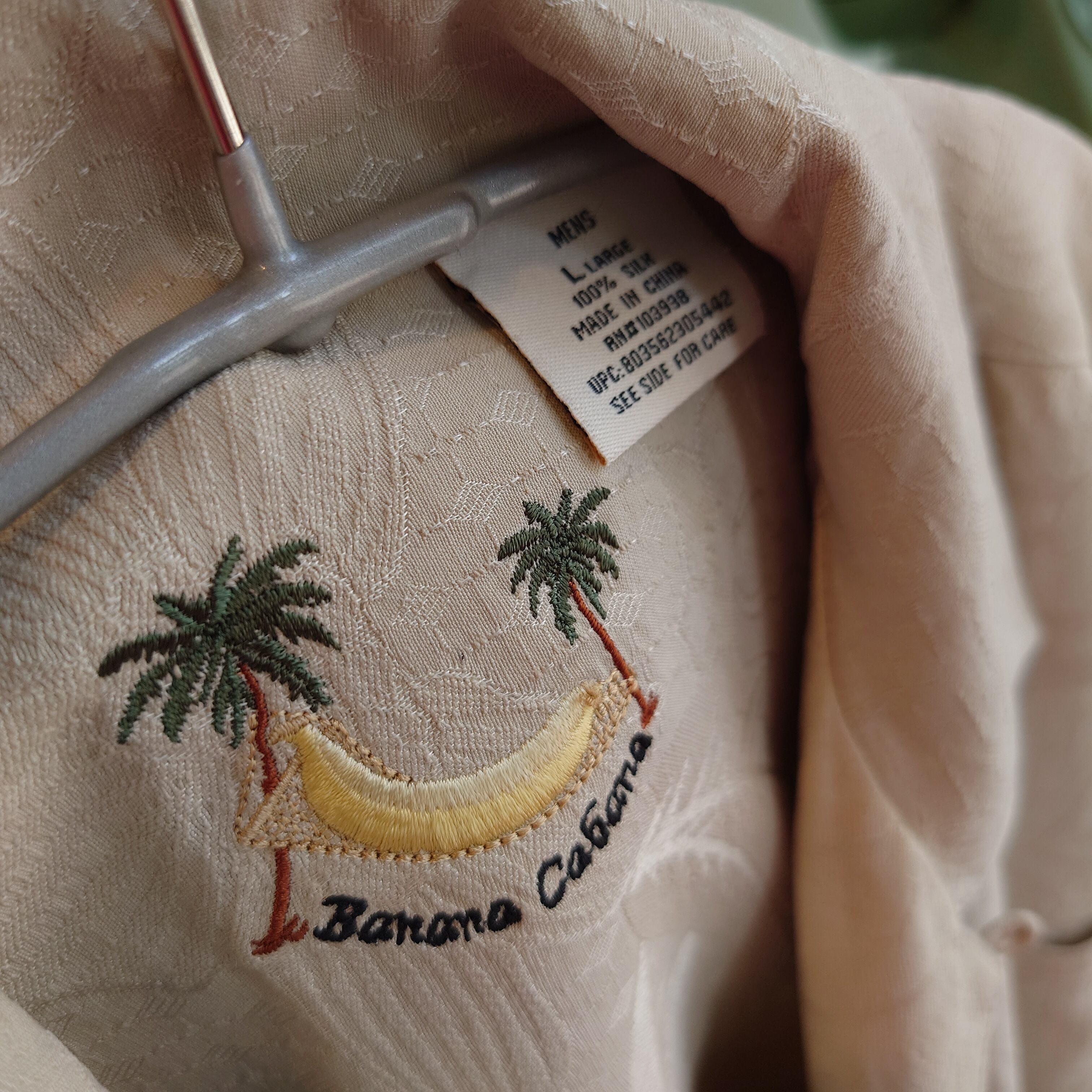◎Banana Cabana 90-00s シルクシャツ ハワイアンシャツ オープンカラーシャツ オフホワイト/ベージュ L