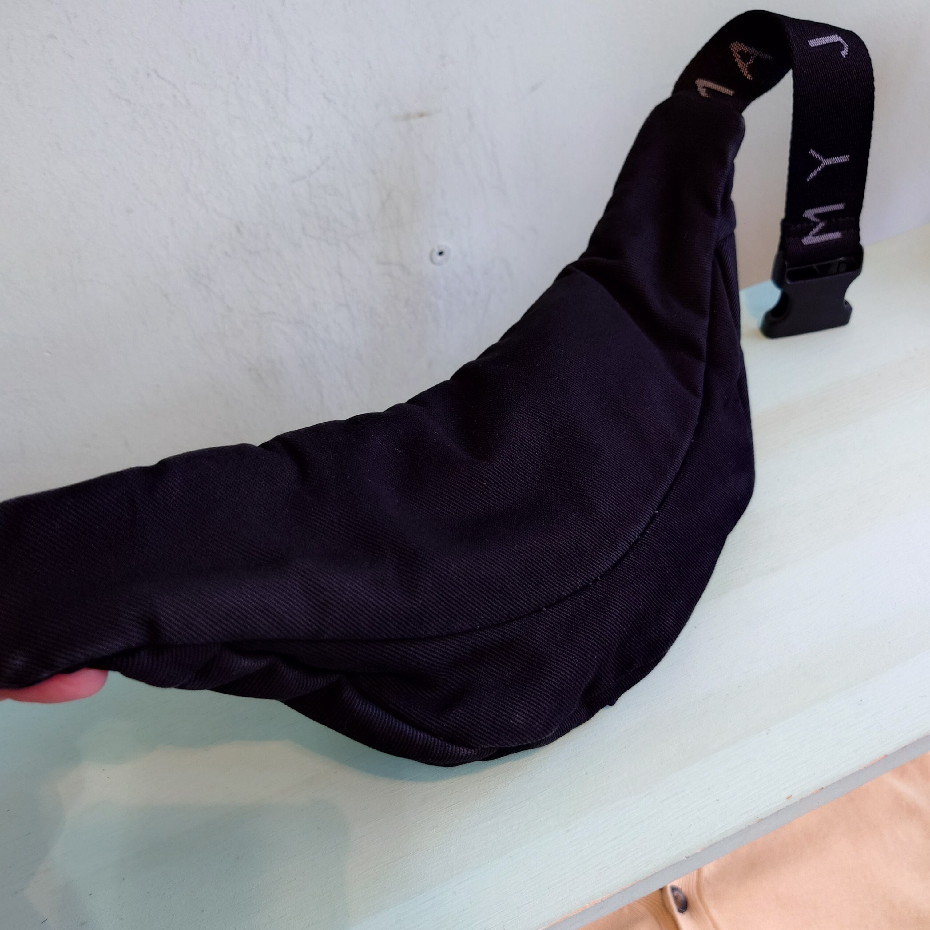 コロンとしつつもシャープな万能シルエットがかわいい、トミー・ヒルフィガーのウエストポーチ。ストラップの可変も大きめで、ウエストポーチとして、斜めがけとして幅広く調整OK。邪魔にならないシルエットながら、ペットボトルが横に入る絶妙サイズ◎