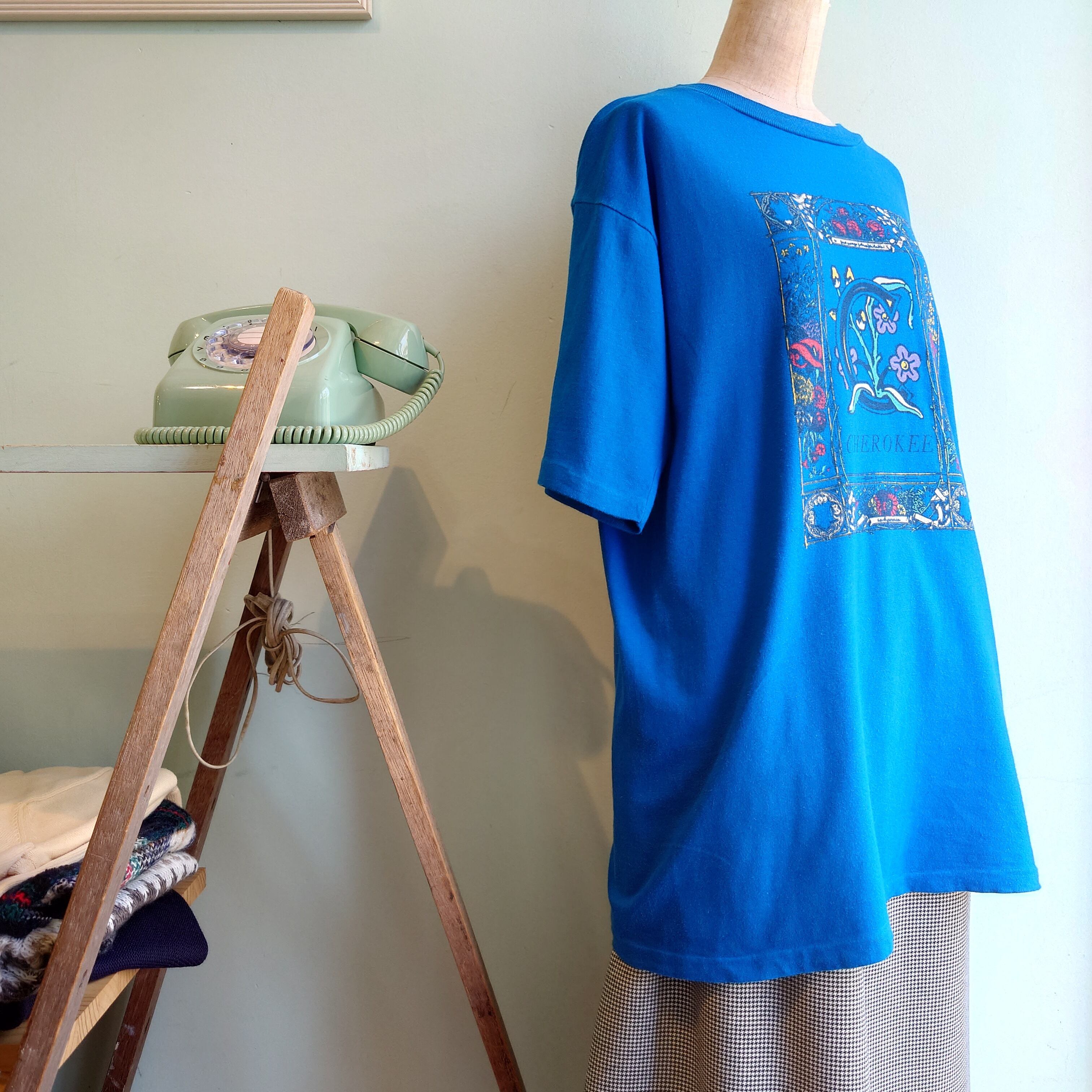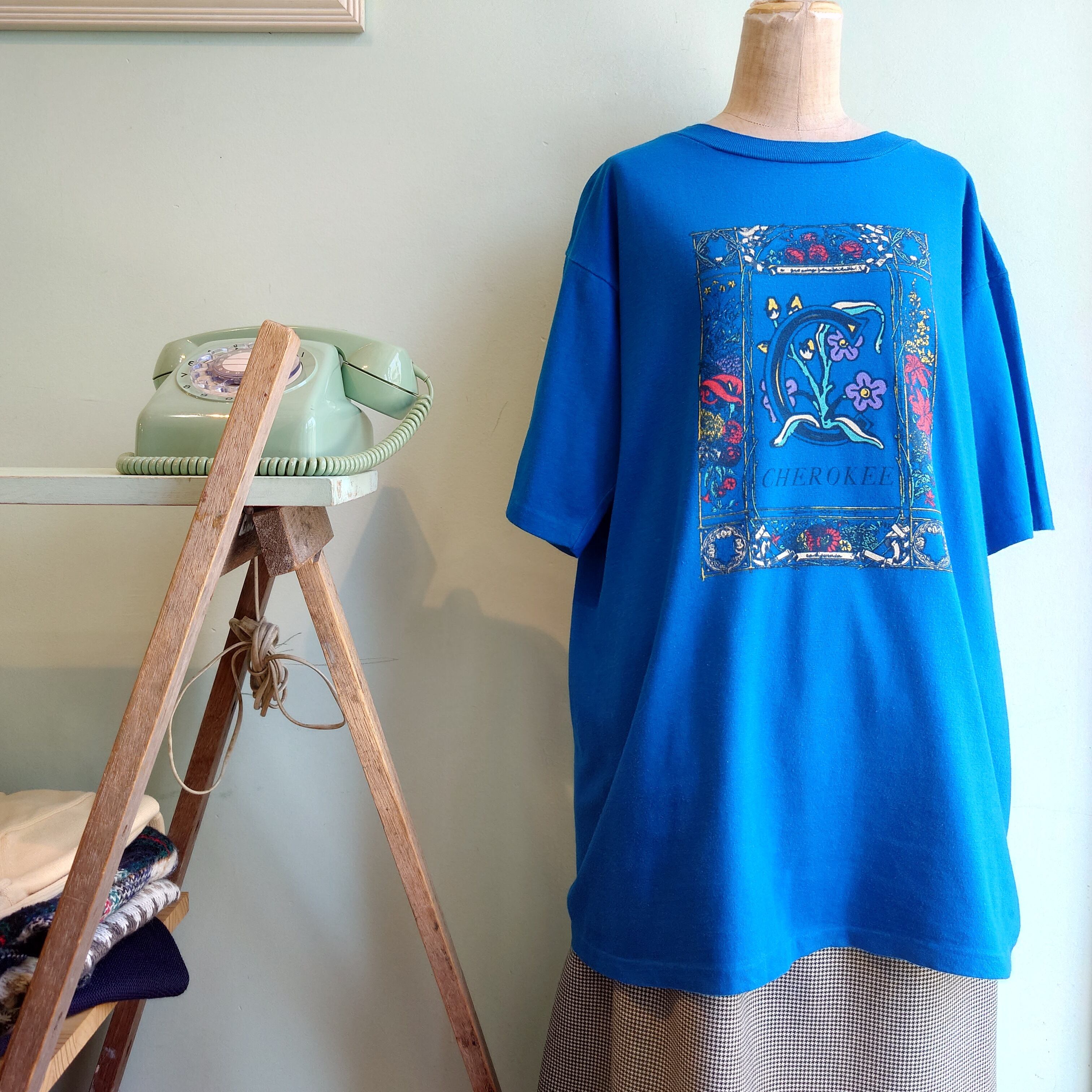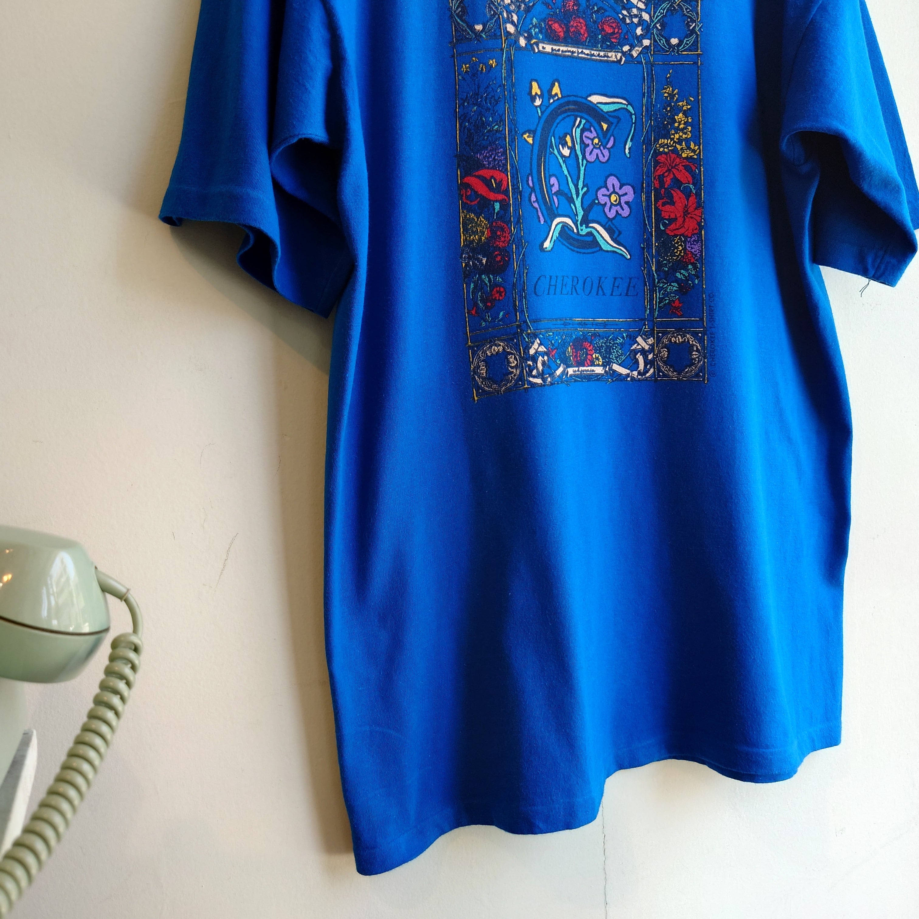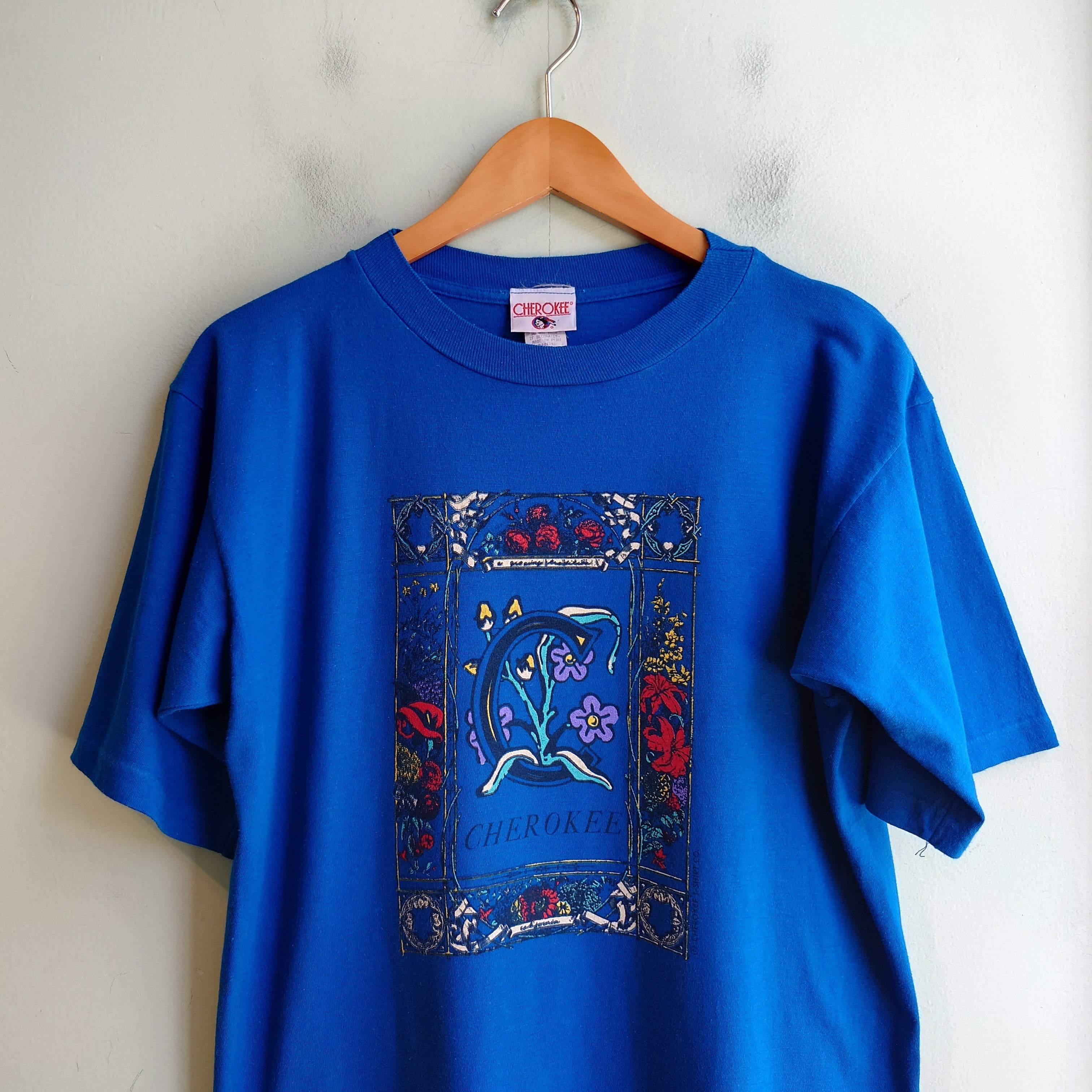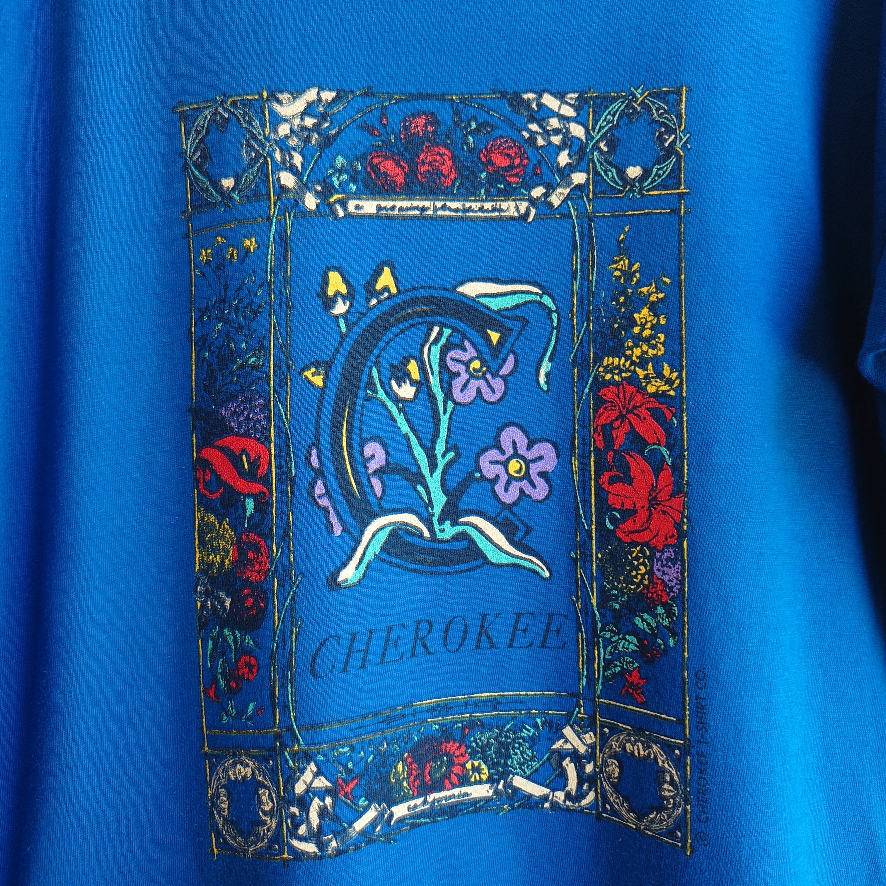 ◎CHEROKEE 90s vintage ヴィンテージTシャツ ガーリーTシャツ アートTシャツ 青 L シングルステッチ
