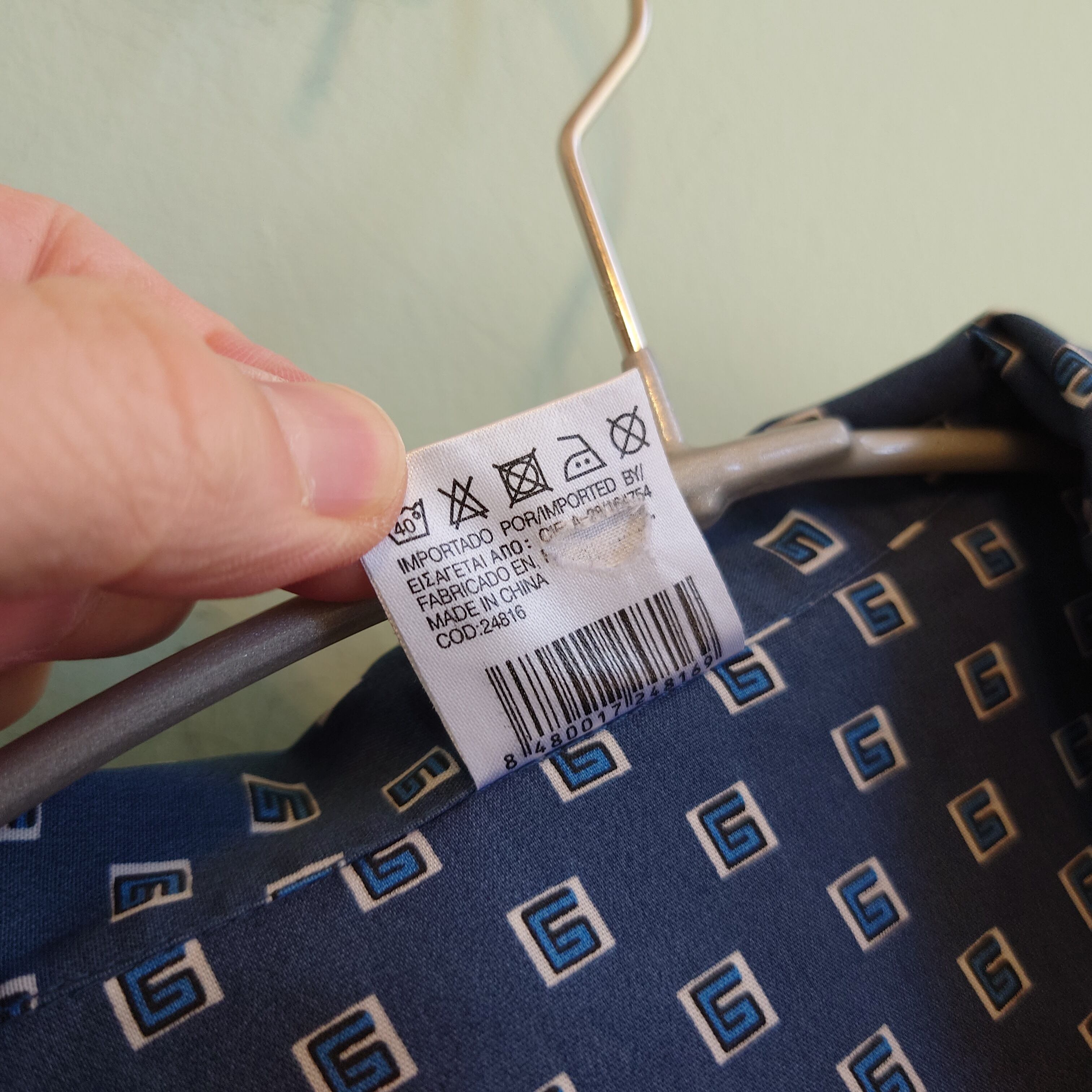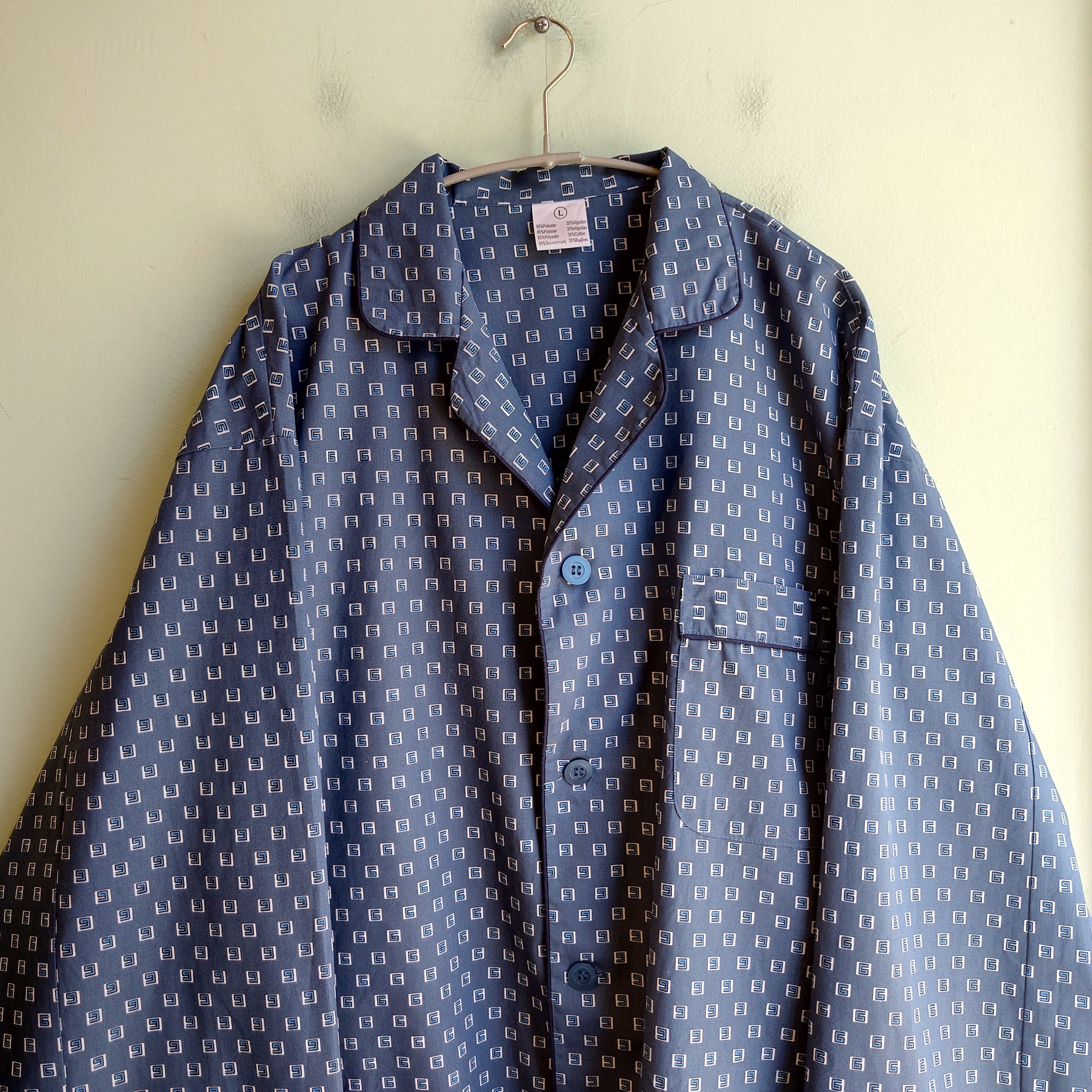 90-00s ユーロ系 パジャマシャツ 総柄シャツ ナイトシャツ 青系 L