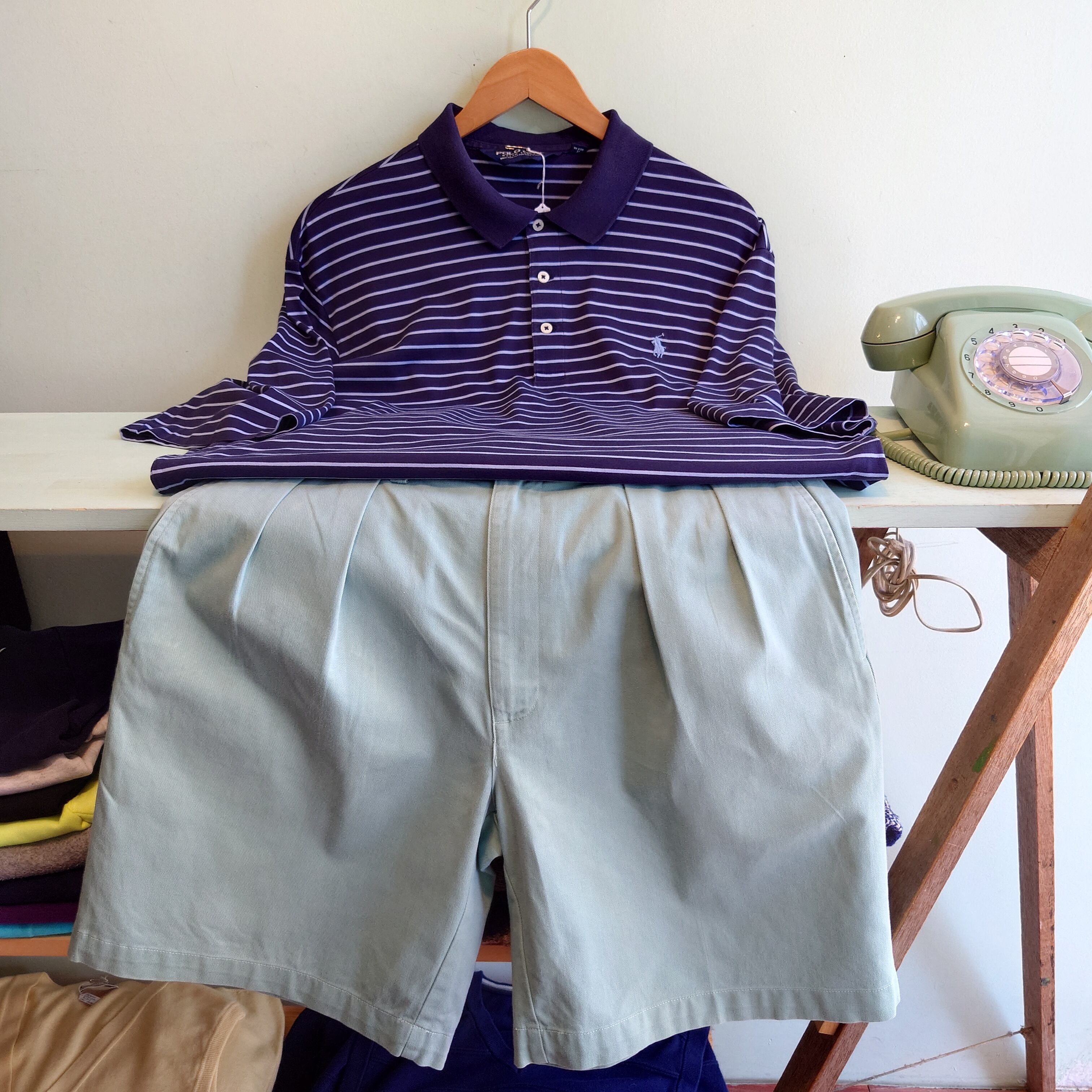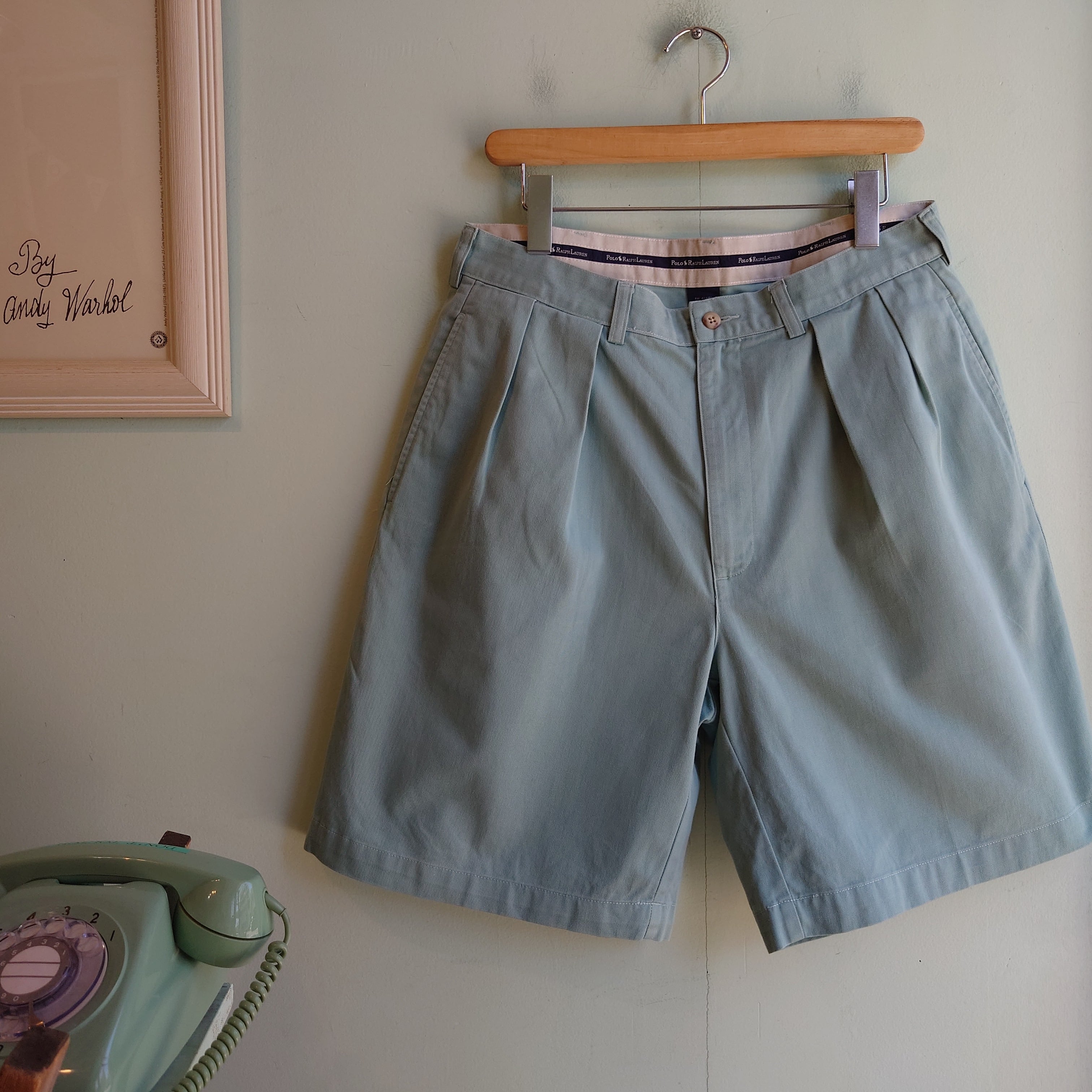 ベージュ系とは違う爽やかさが漂う、ミントグリーンのチノショーツ。しっかりしたアメカジらしいコットンの風合いでラルフらしく長く履ける一本。ウエストに対してしっかり太めないい時代のショーツ、年々希少になるアイテムです!
