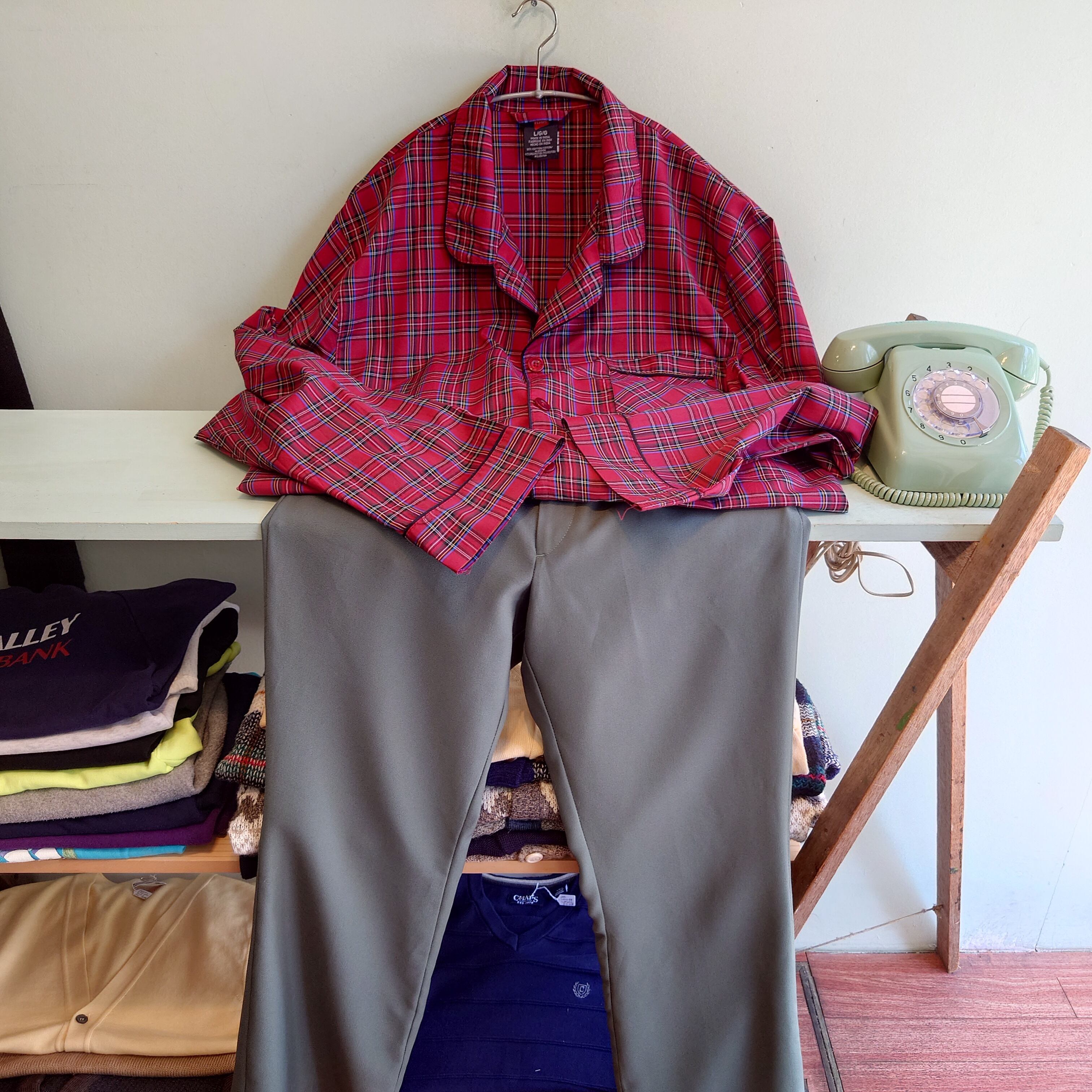 ヘインズのパジャマシャツ。赤系タータンチェックのシャツは数あれど、パジャマシャツならではのデザインで新鮮に。フランネルではなくさらっとパリッとした薄手素材で、夏も気持ちよく重ねられるタイプです。