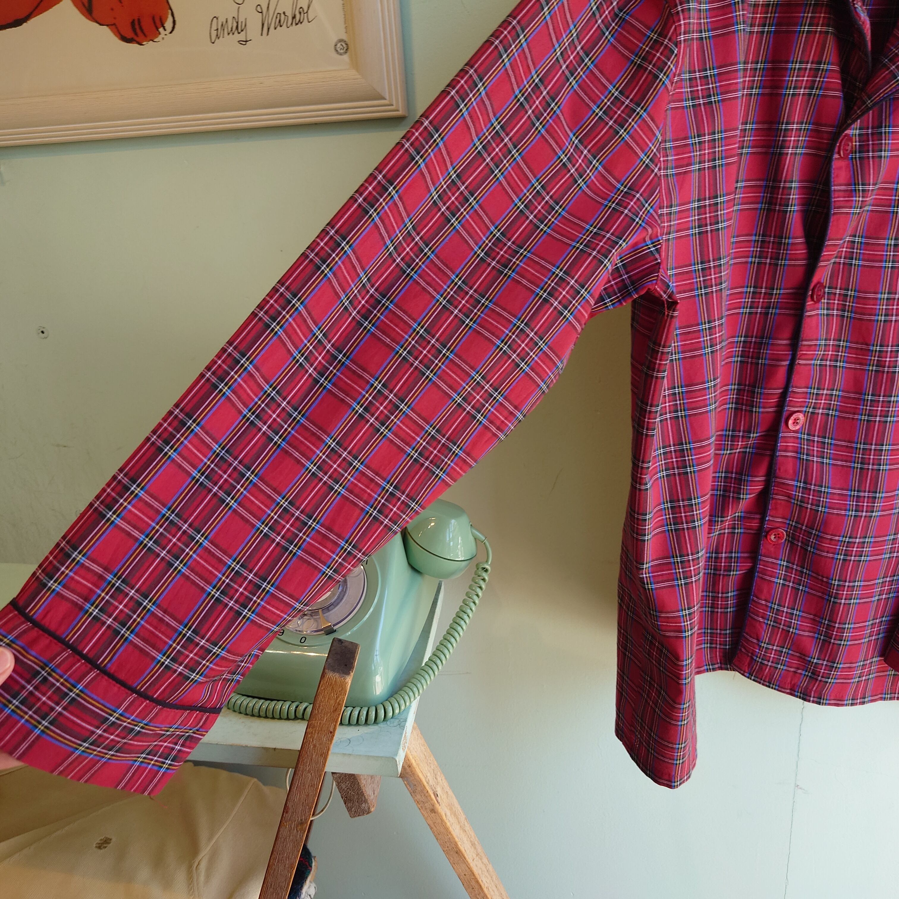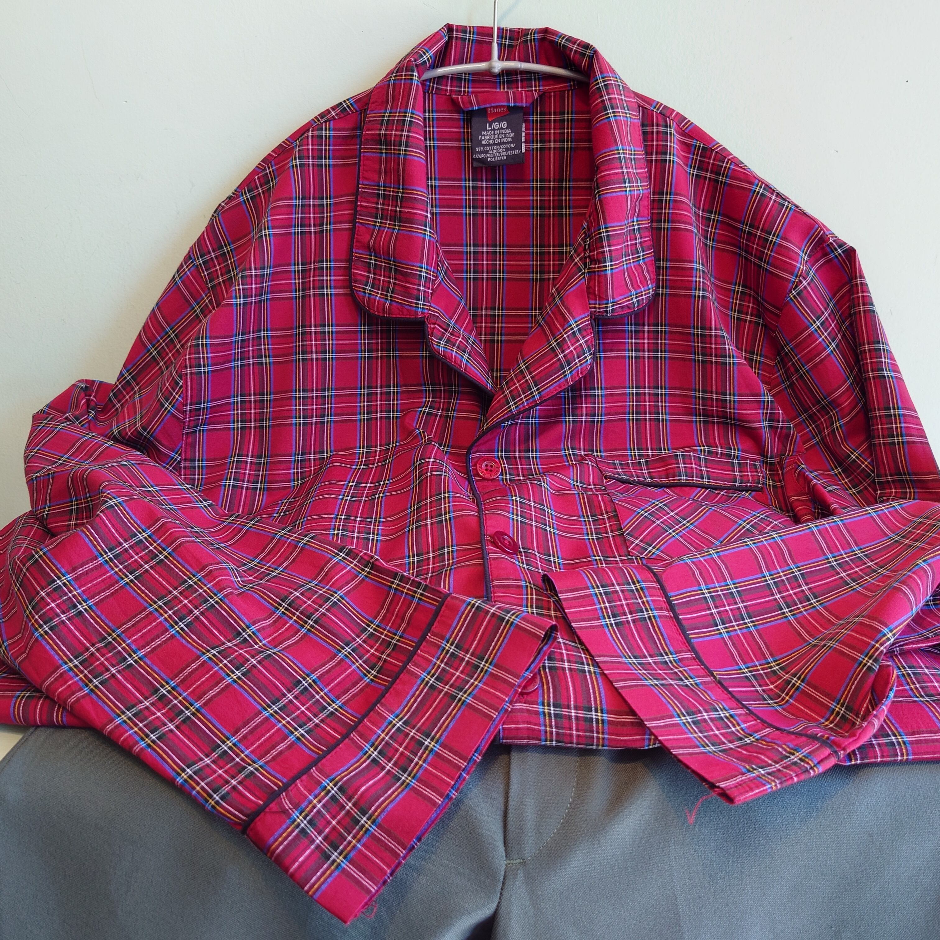 Hanes 90-00s パジャマシャツ タータンチェック ナイトシャツ 赤系 L