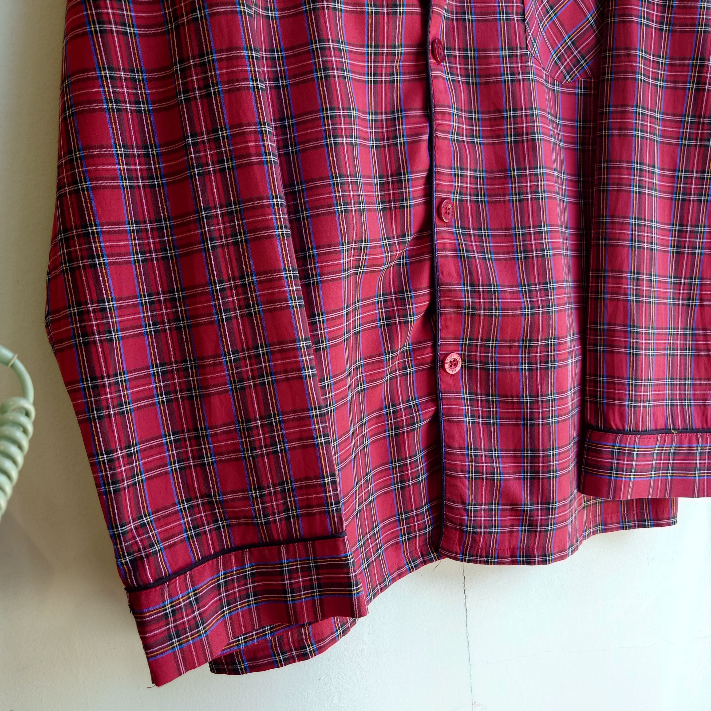 ◎Hanes 90-00s パジャマシャツ タータンチェック ナイトシャツ 赤系 L