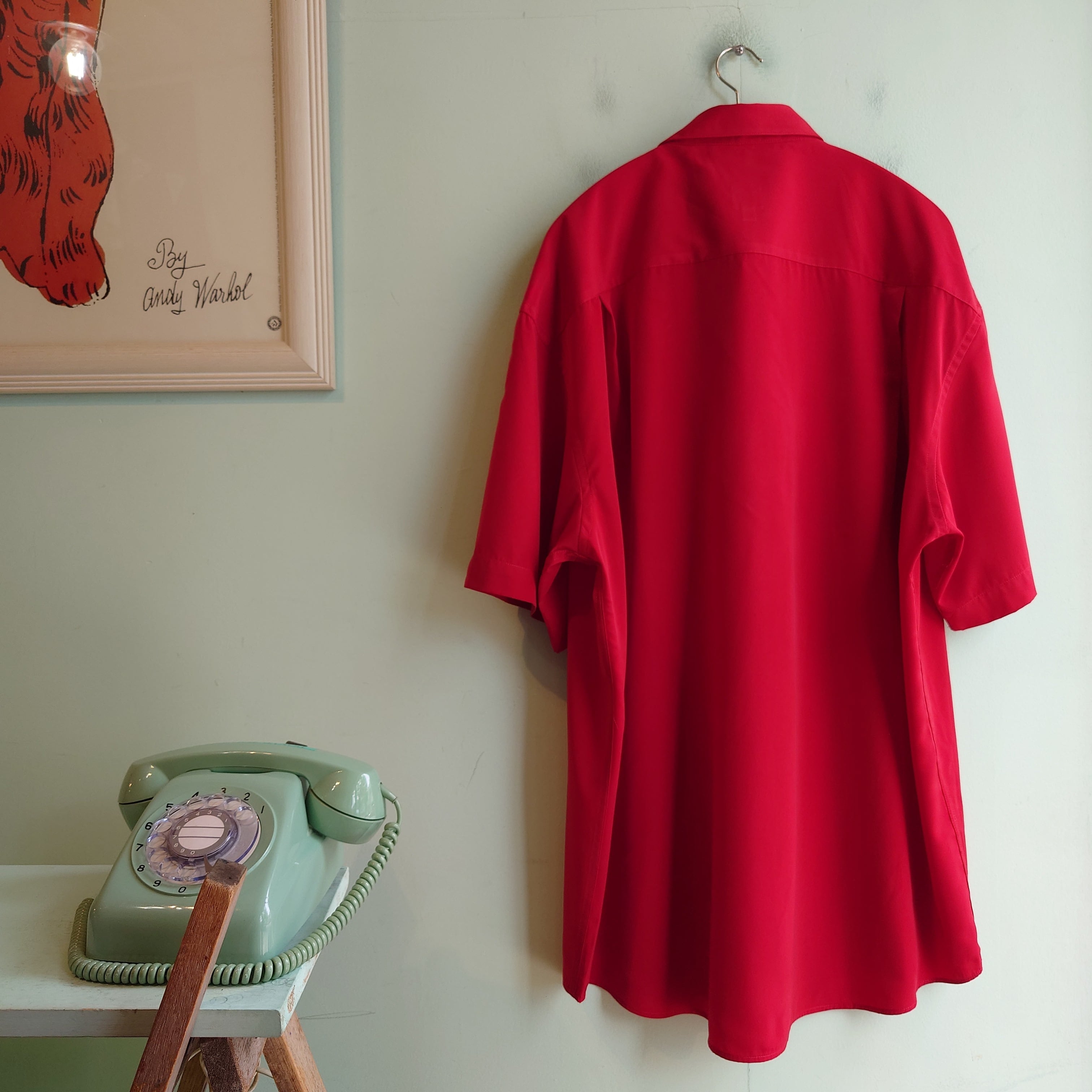 ポリ系の中でも、特にツルッと柔らかなとろみがいい、ドレッシー系の赤シャツ。これぞ赤な発色と光沢感がシンプルに主張する一枚。スタンダードなシルエットもまた使いやすい。