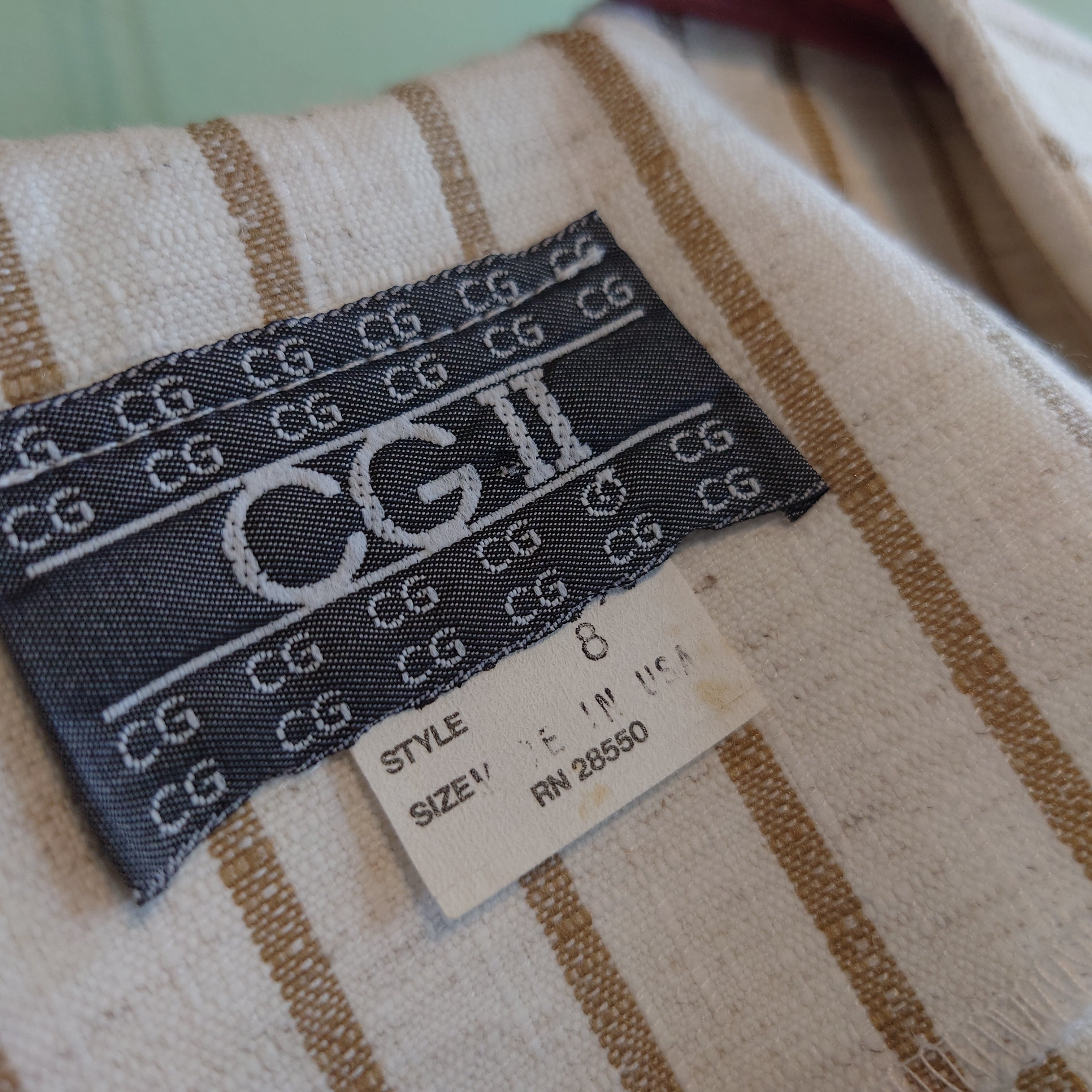 CG II 80s vintage ヴィンテージドレス リネンライクワンピース ストライプドレス オフホワイト/ベージュ USA製