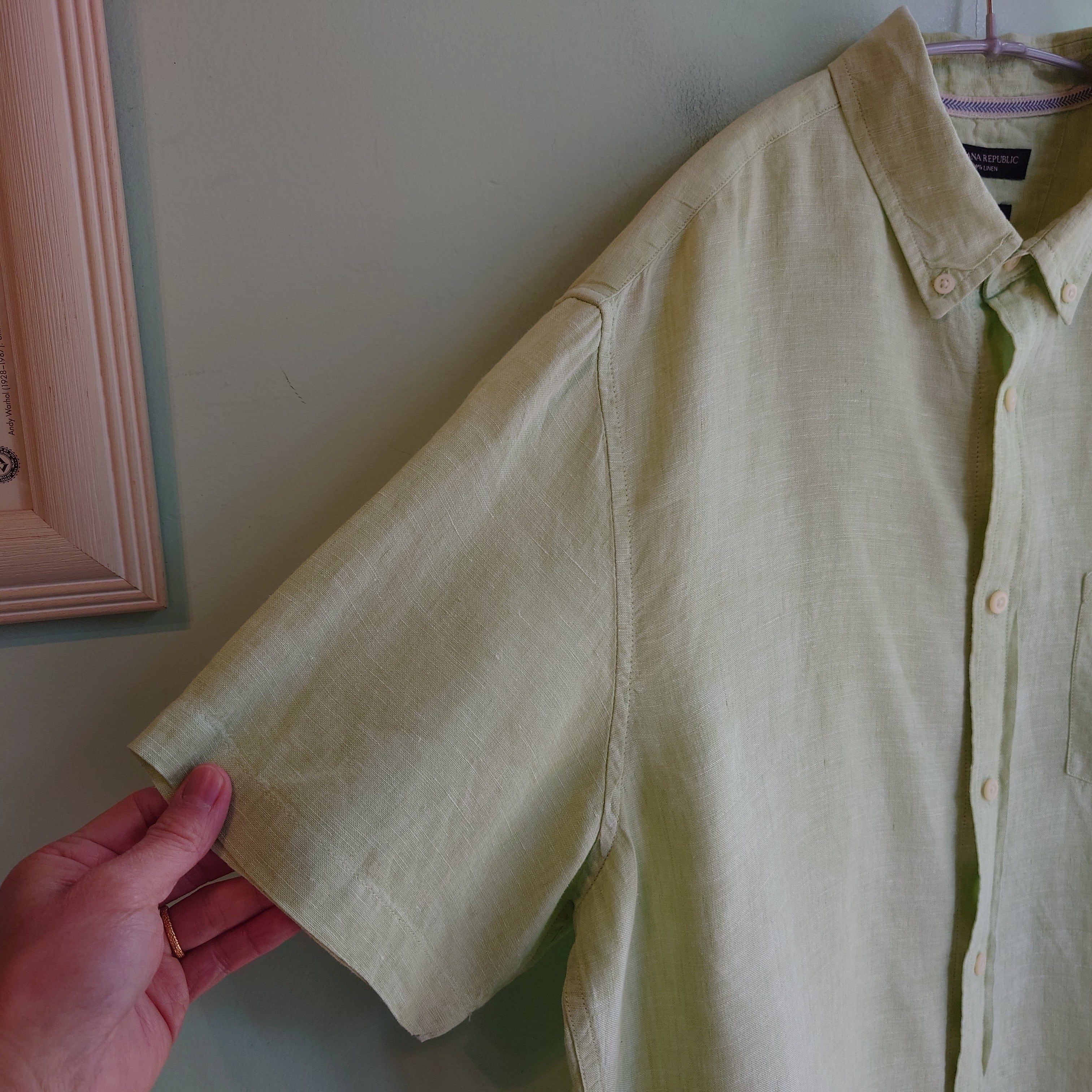 BANANA REPUBLIC リネンシャツ ドレスシャツ L 緑系 若草色 CAMDEN FIT