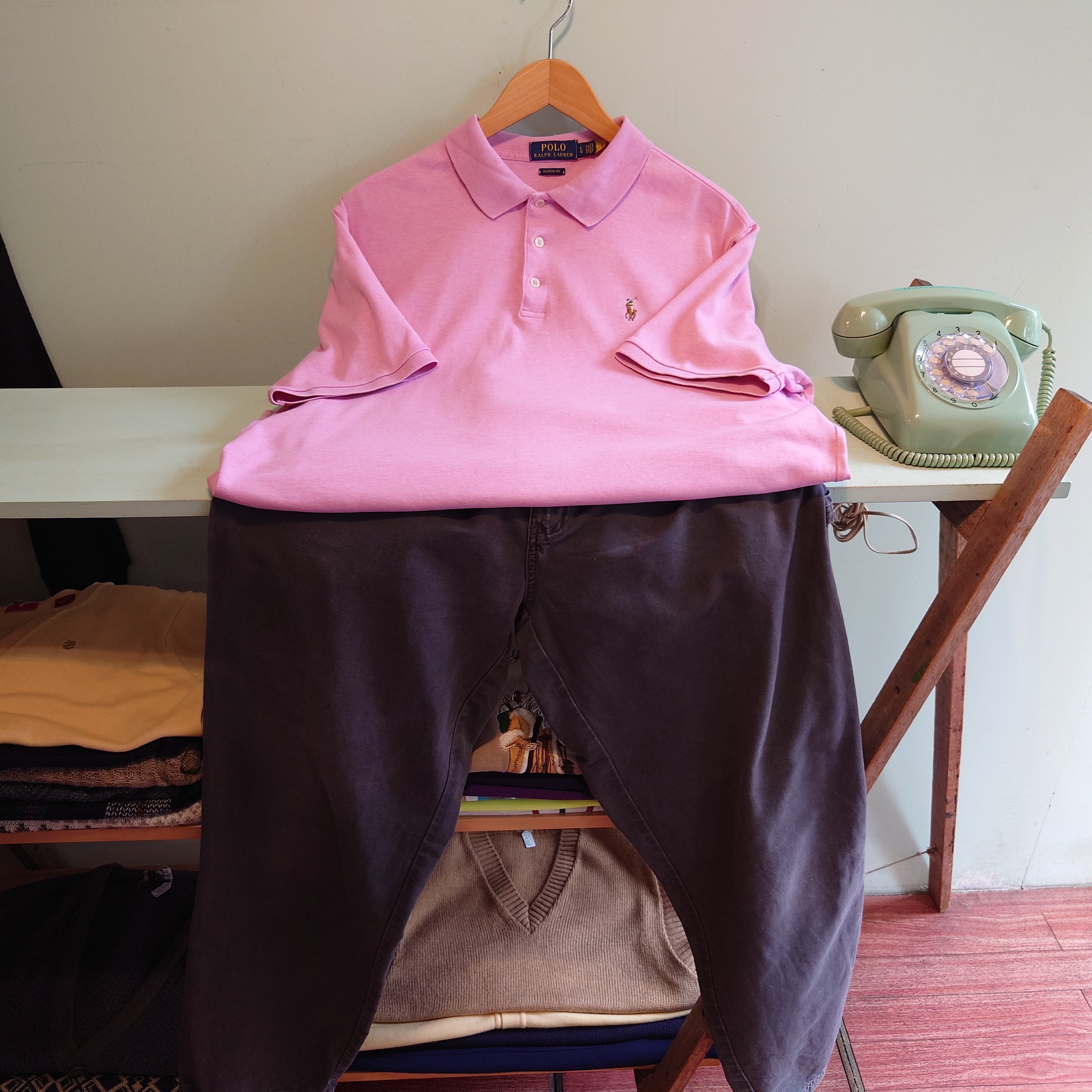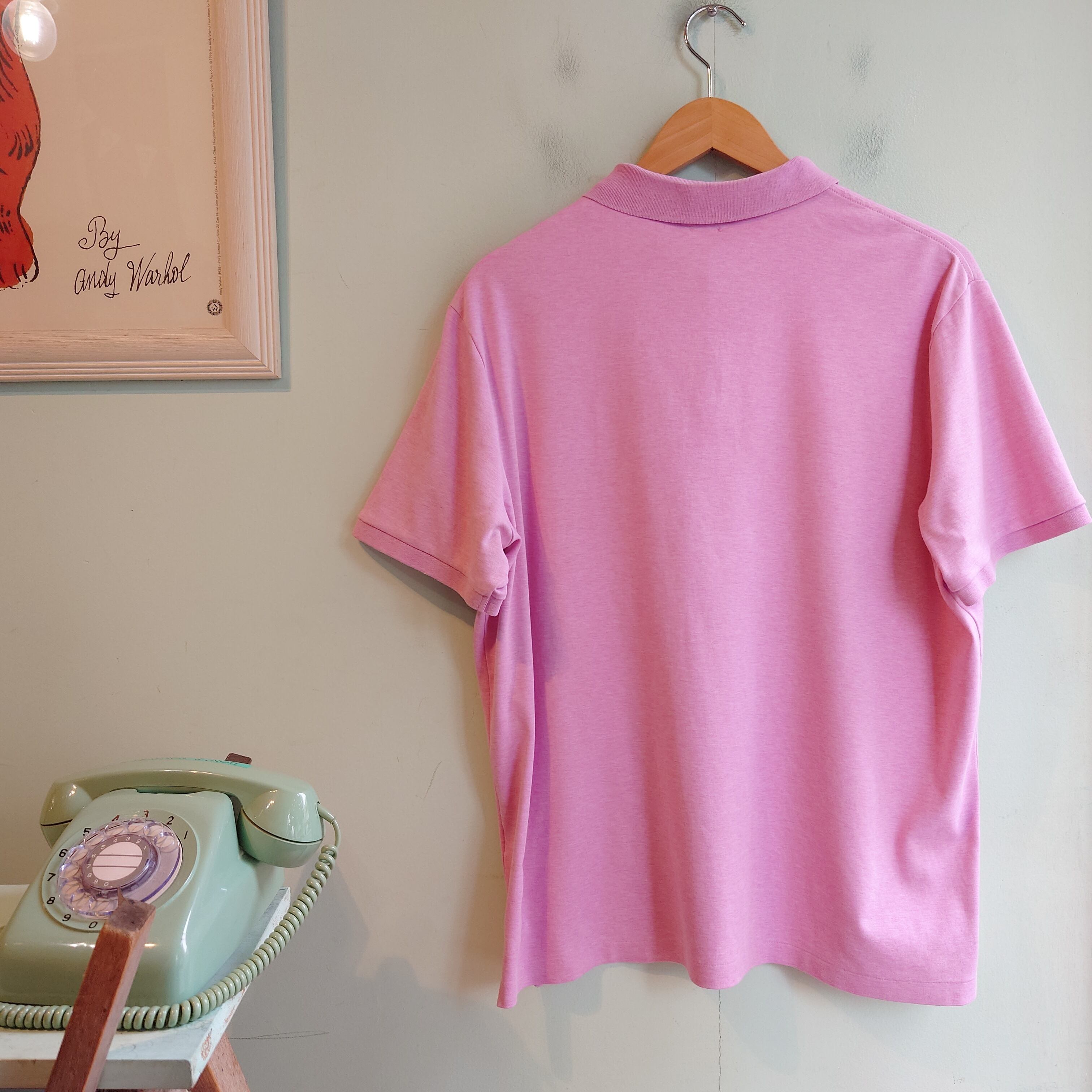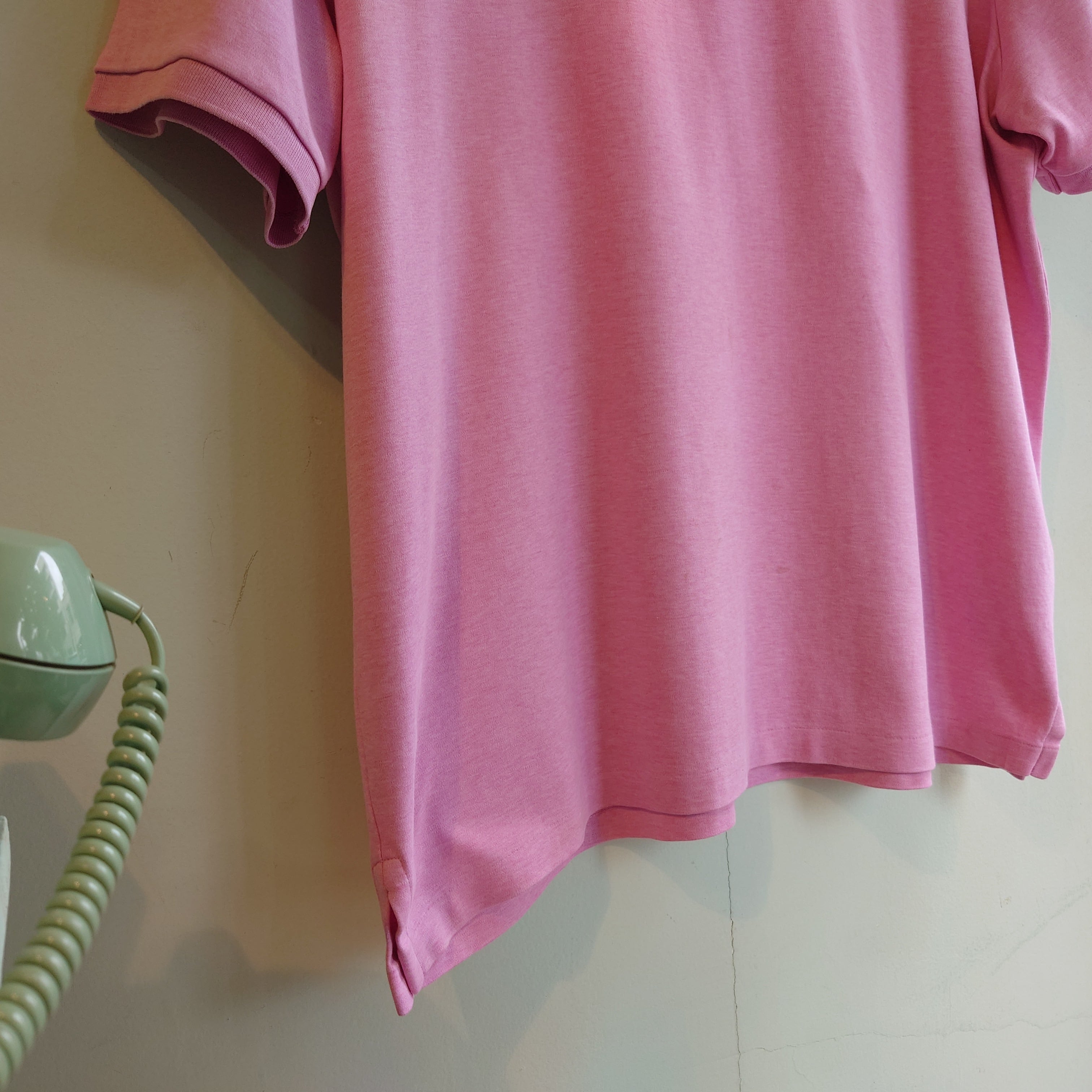 POLO RALPH LAURENのワンポイントポロシャツ。鹿の子ではなくスムースさのあるカットソー素材で、着心地Tシャツが嬉しい。ベビーピンクに杢の入る独特な色合いも良し。普段ポロシャツを着ないお客様にもおすすめです。