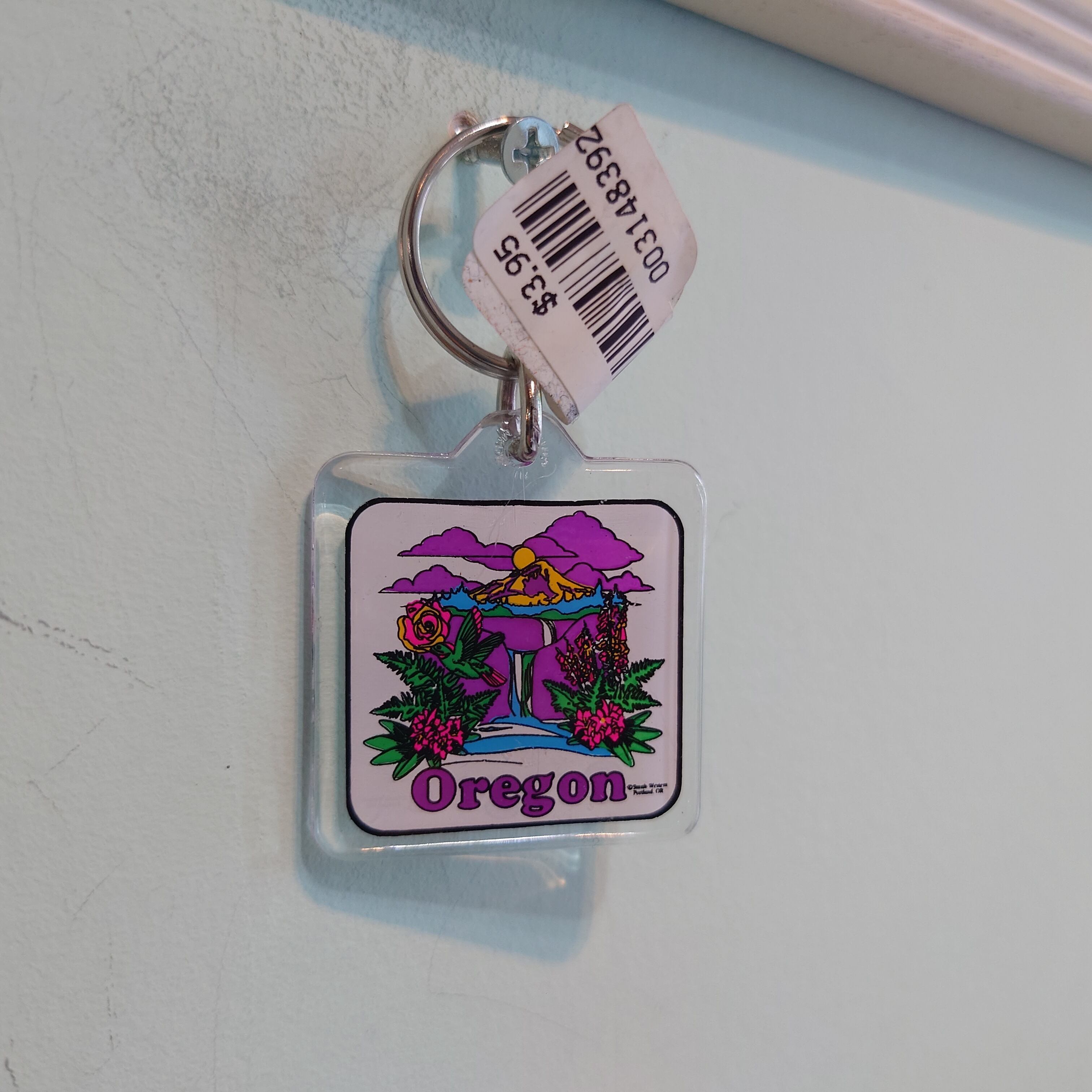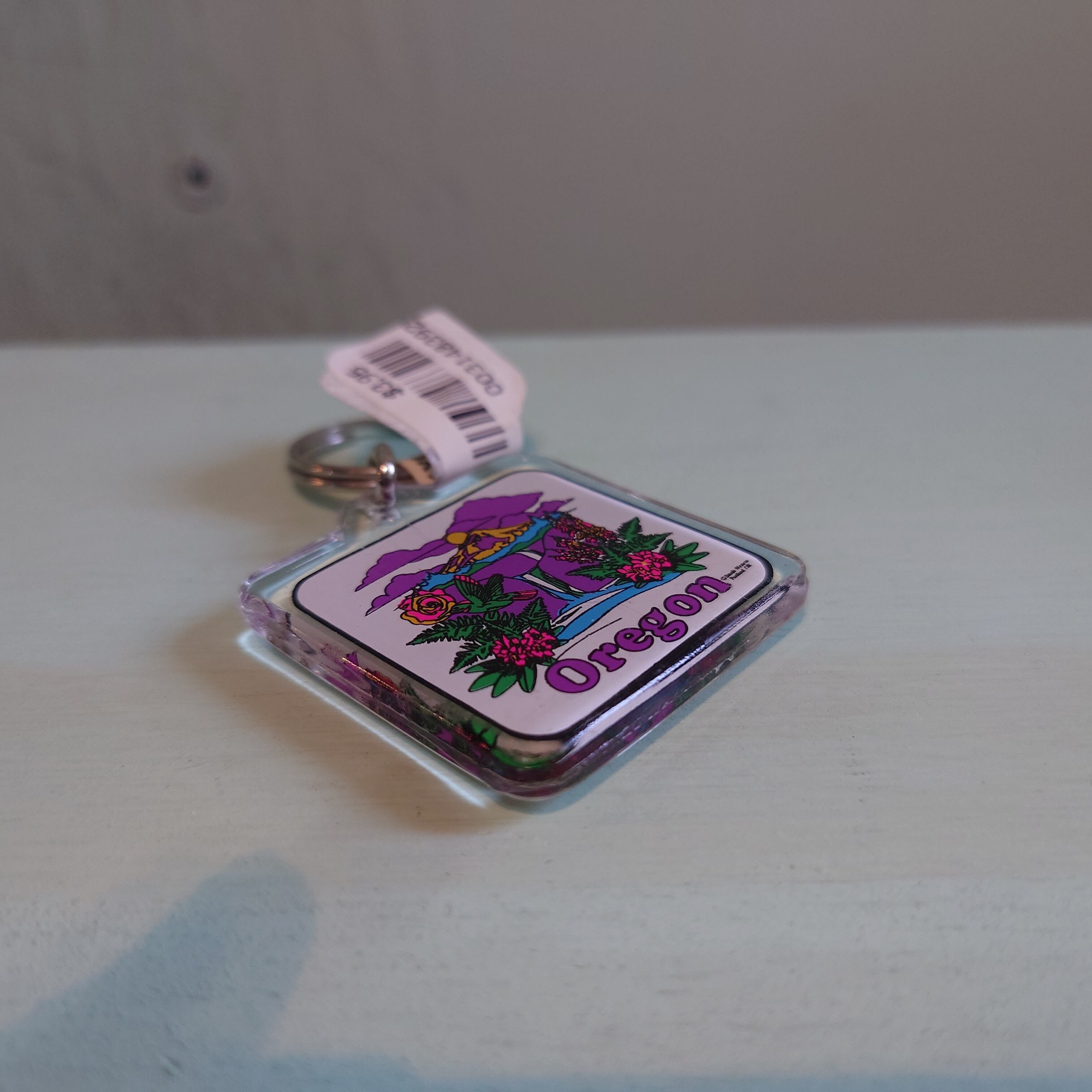 オレゴン州のヴィンテージキーホルダー。北米に生息するハチドリと、州花であるオレゴングレープをモチーフにしたレトロなキーホルダー。タグ付きのデッドストックアイテム。