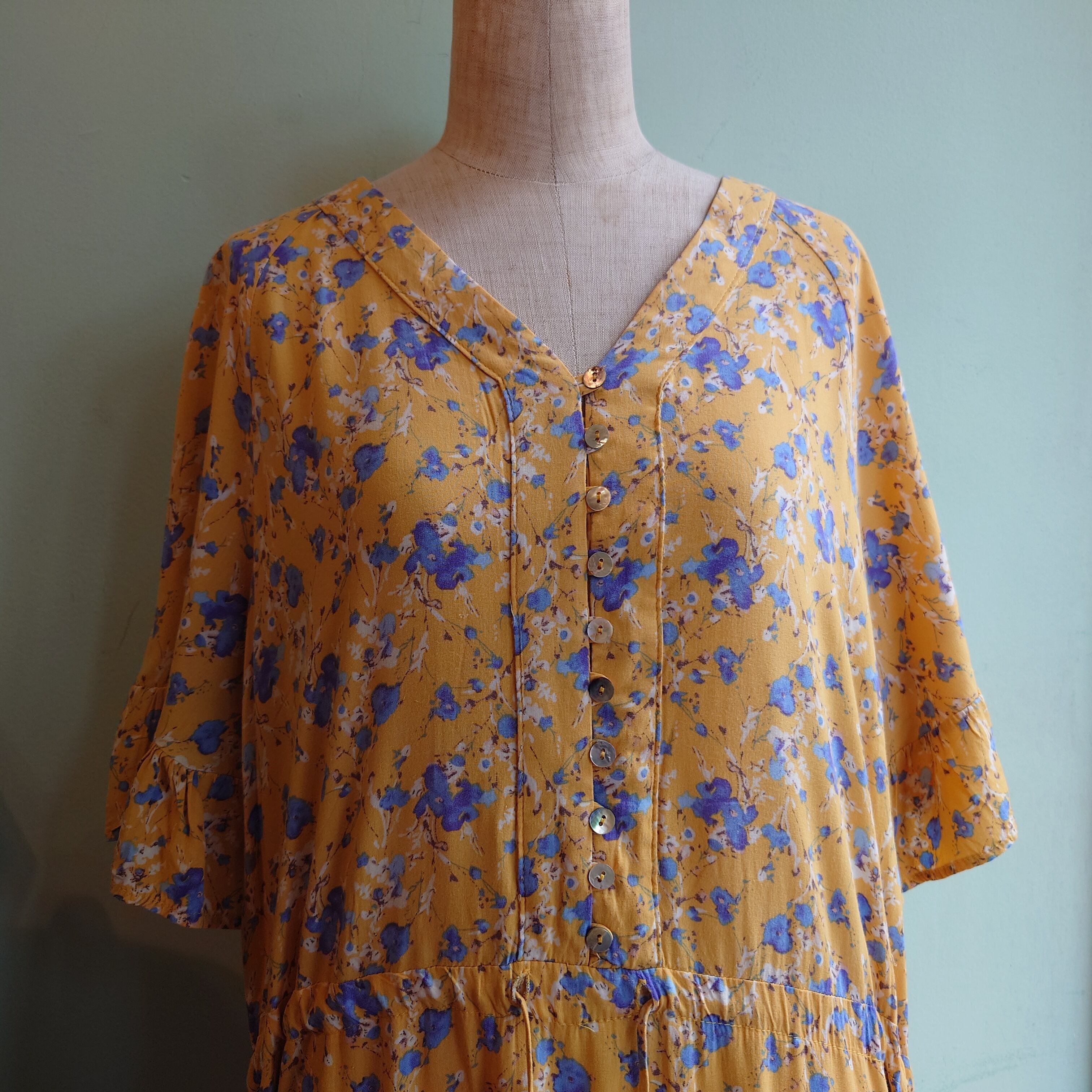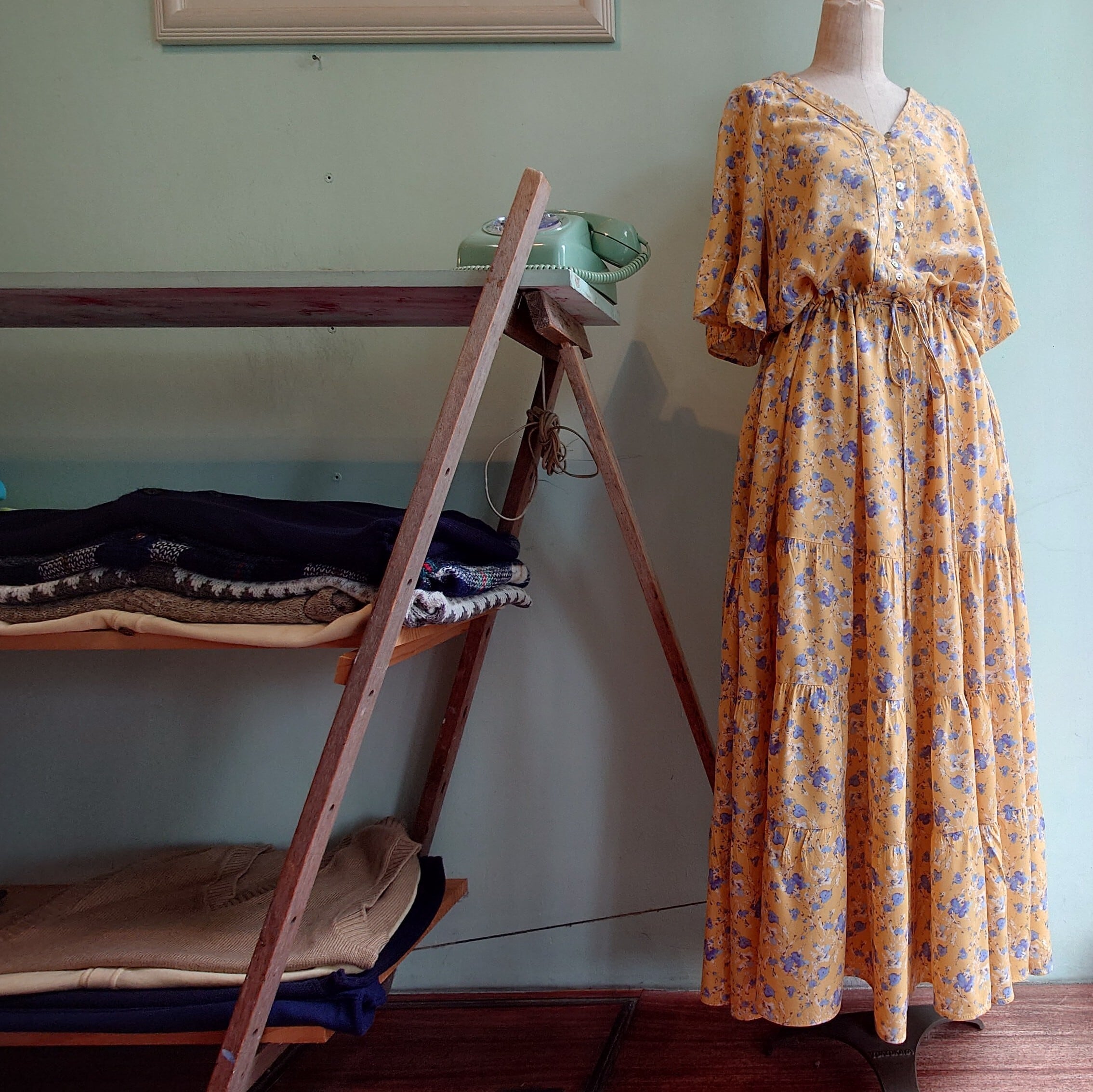 SWEETSALT 00s 総柄ワンピース ティアードワンピース ボヘミアンドレス イエロー 花柄 マキシ丈