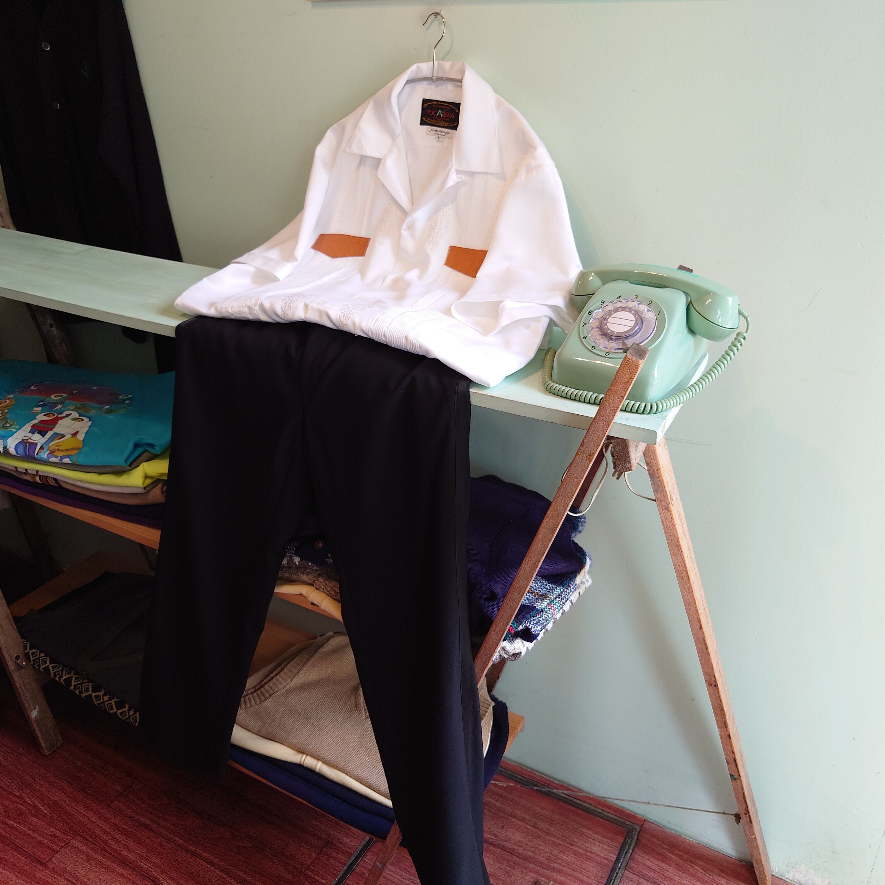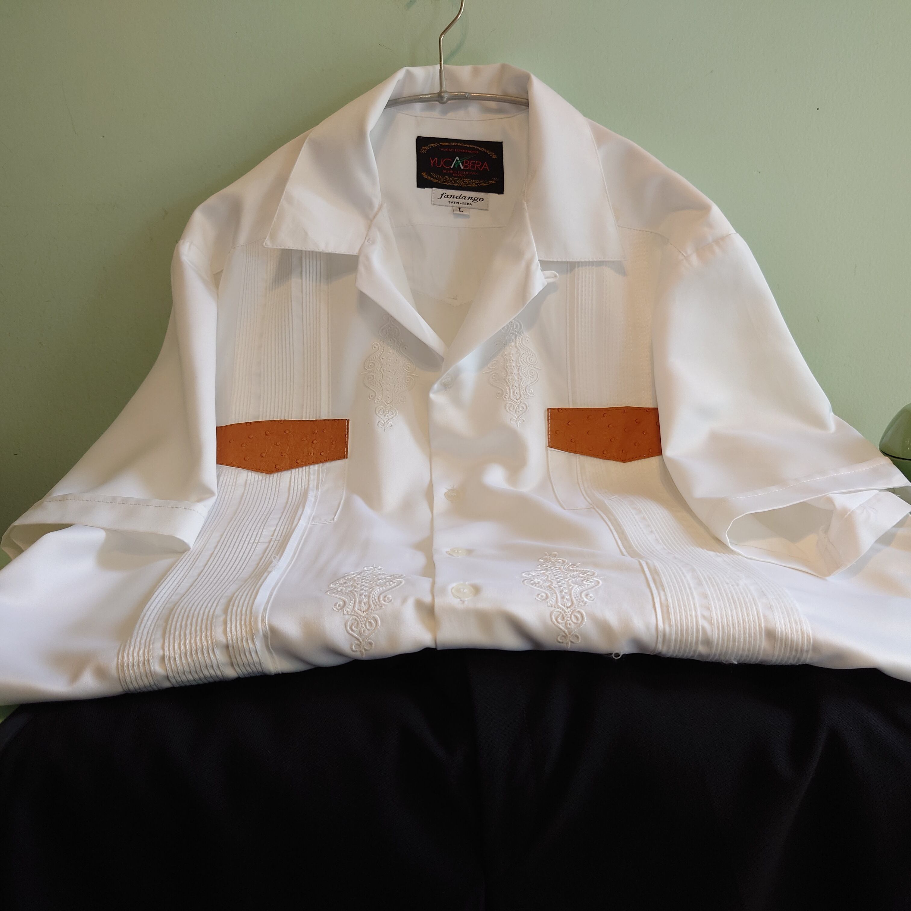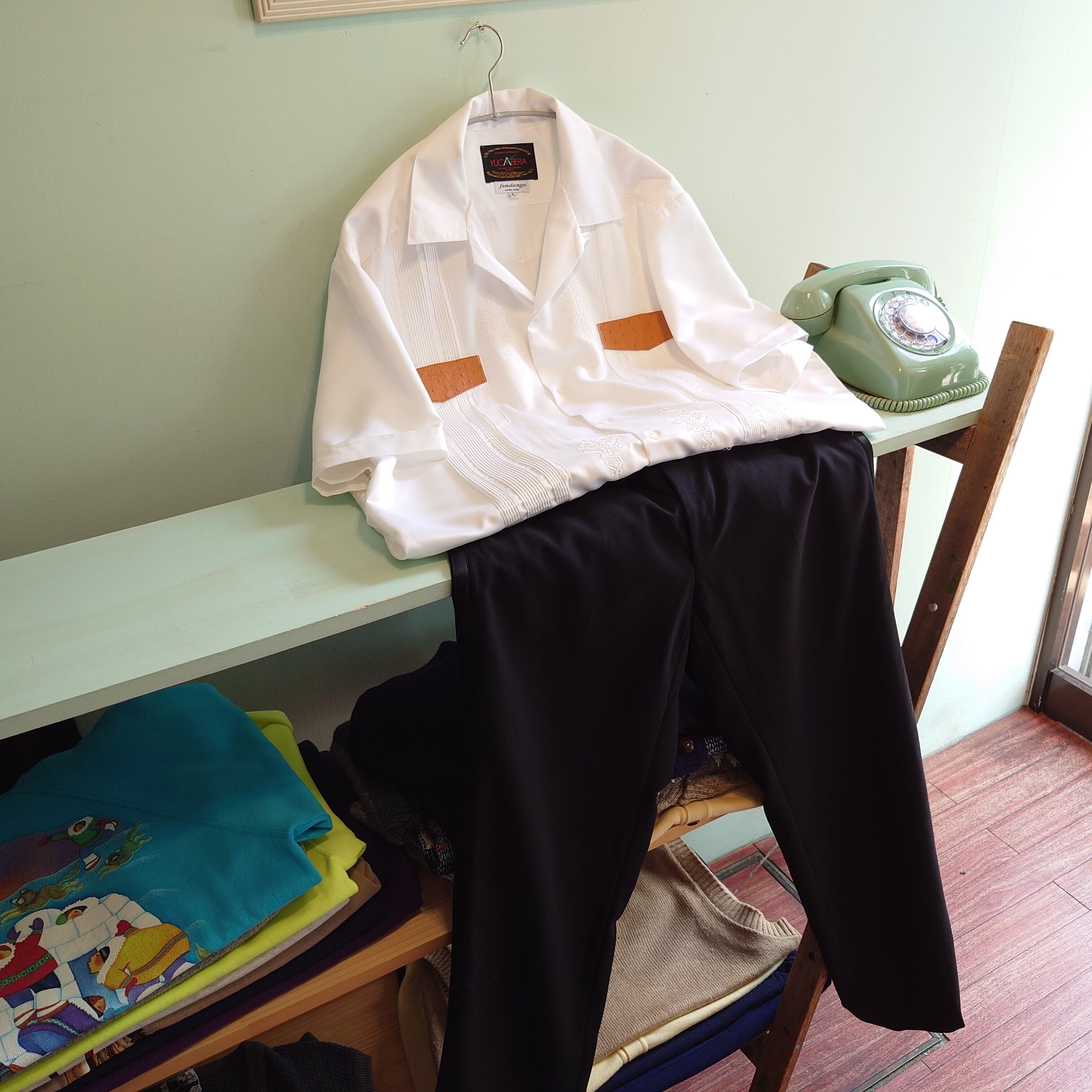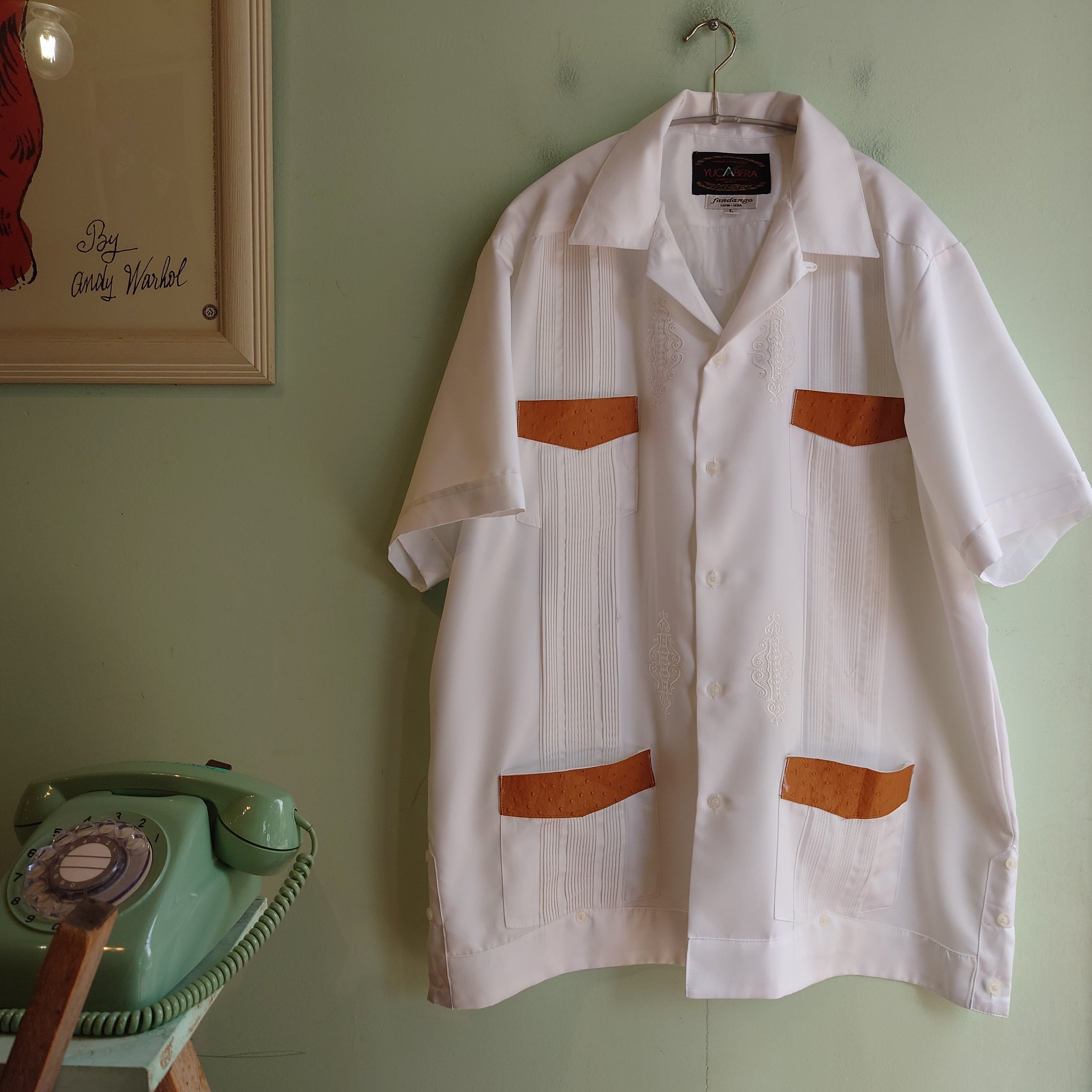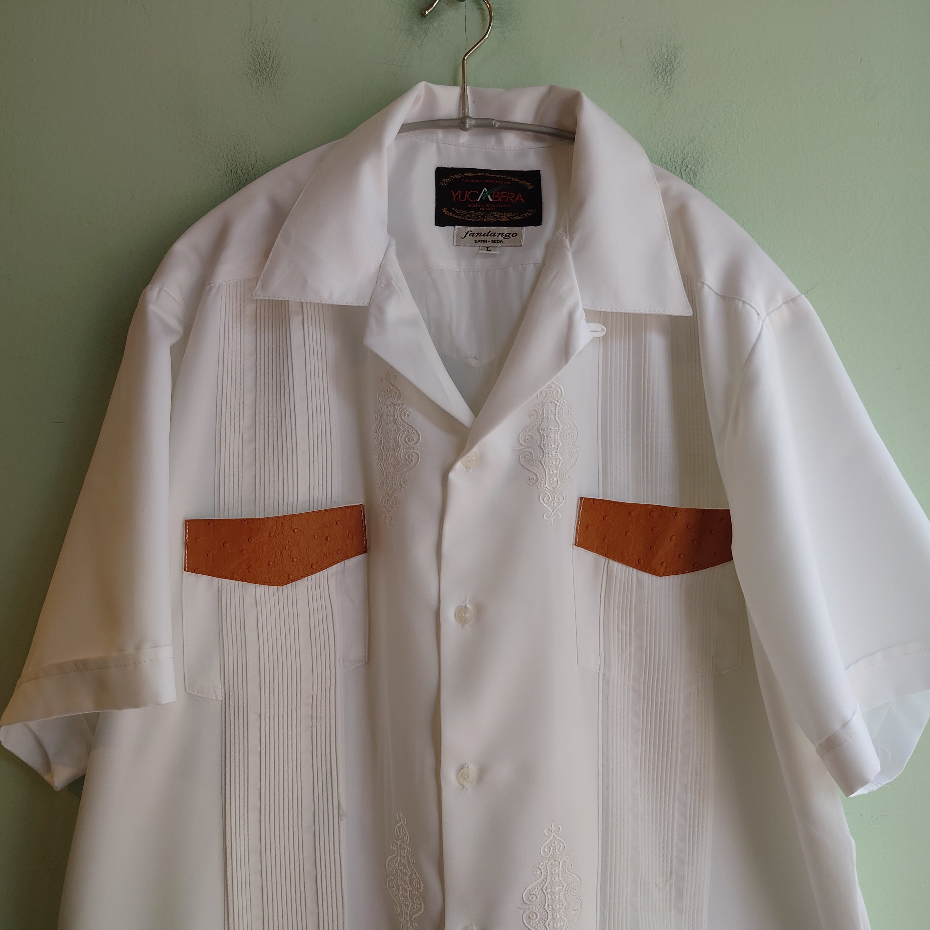 YUCABERA 90-00s キューバシャツ グアヤベラシャツ サテン素材 白 レアタイプ L