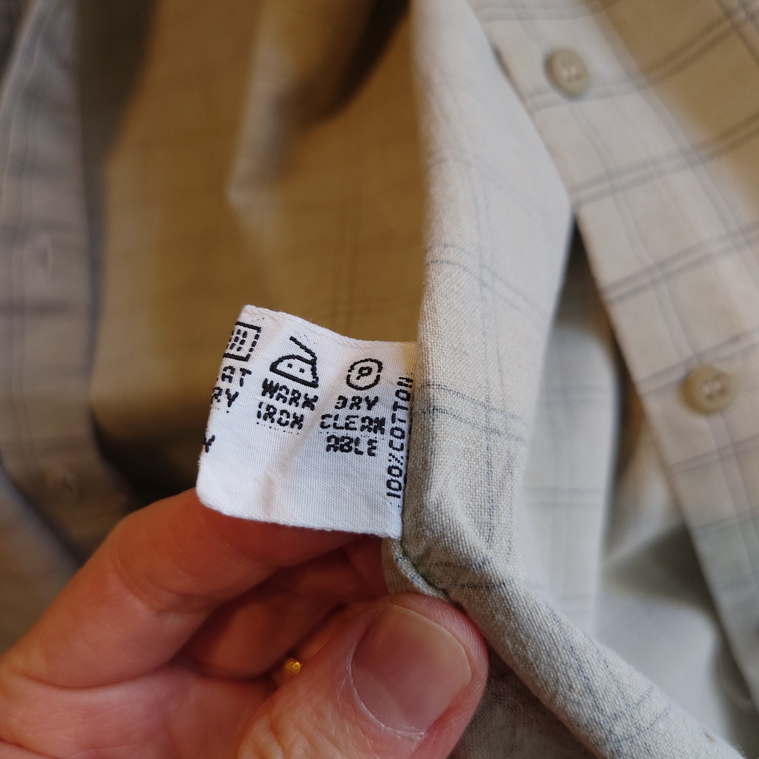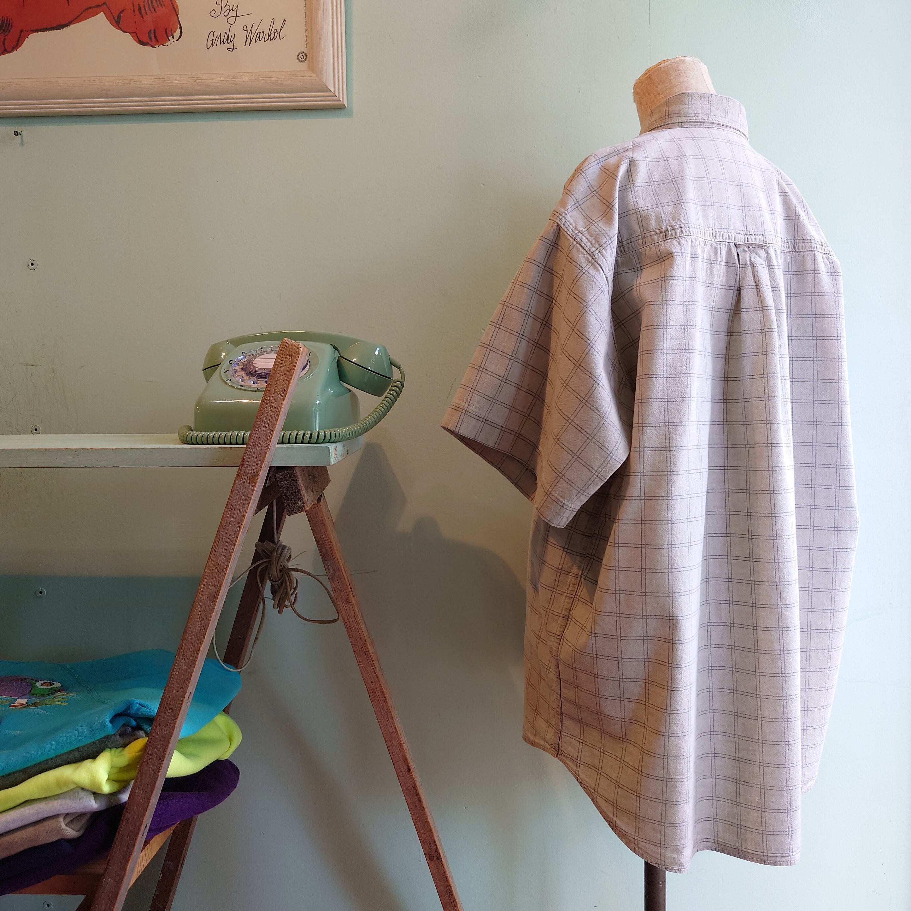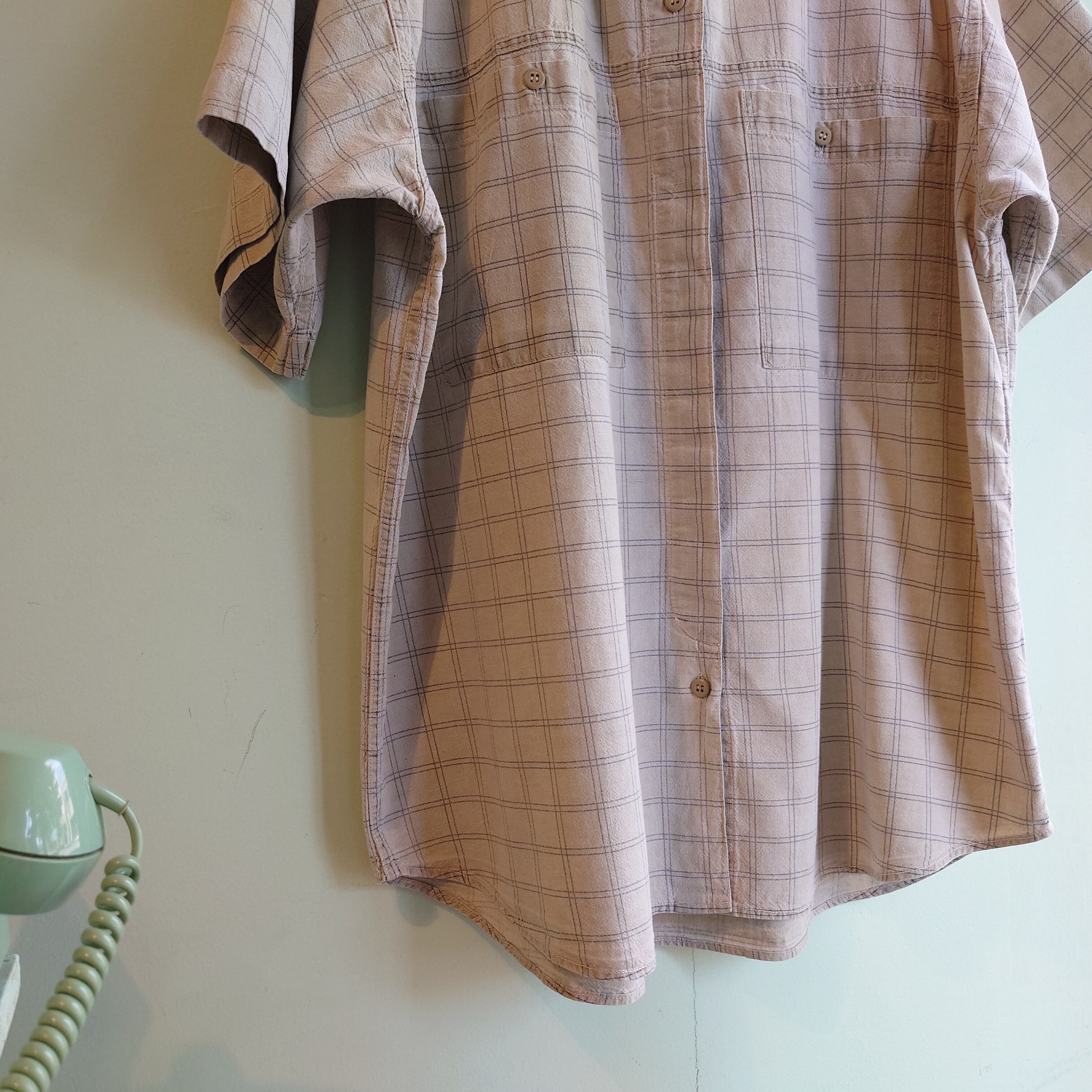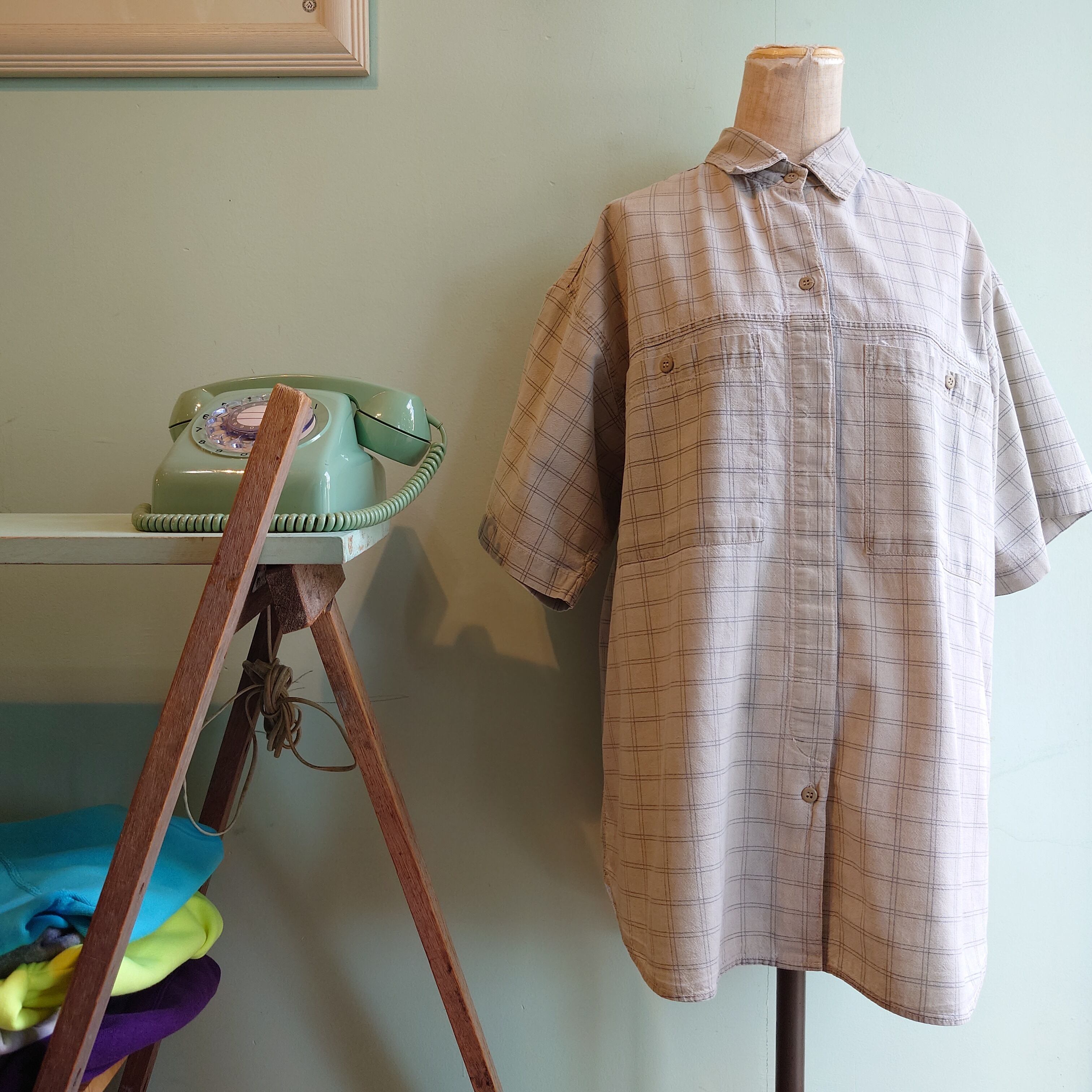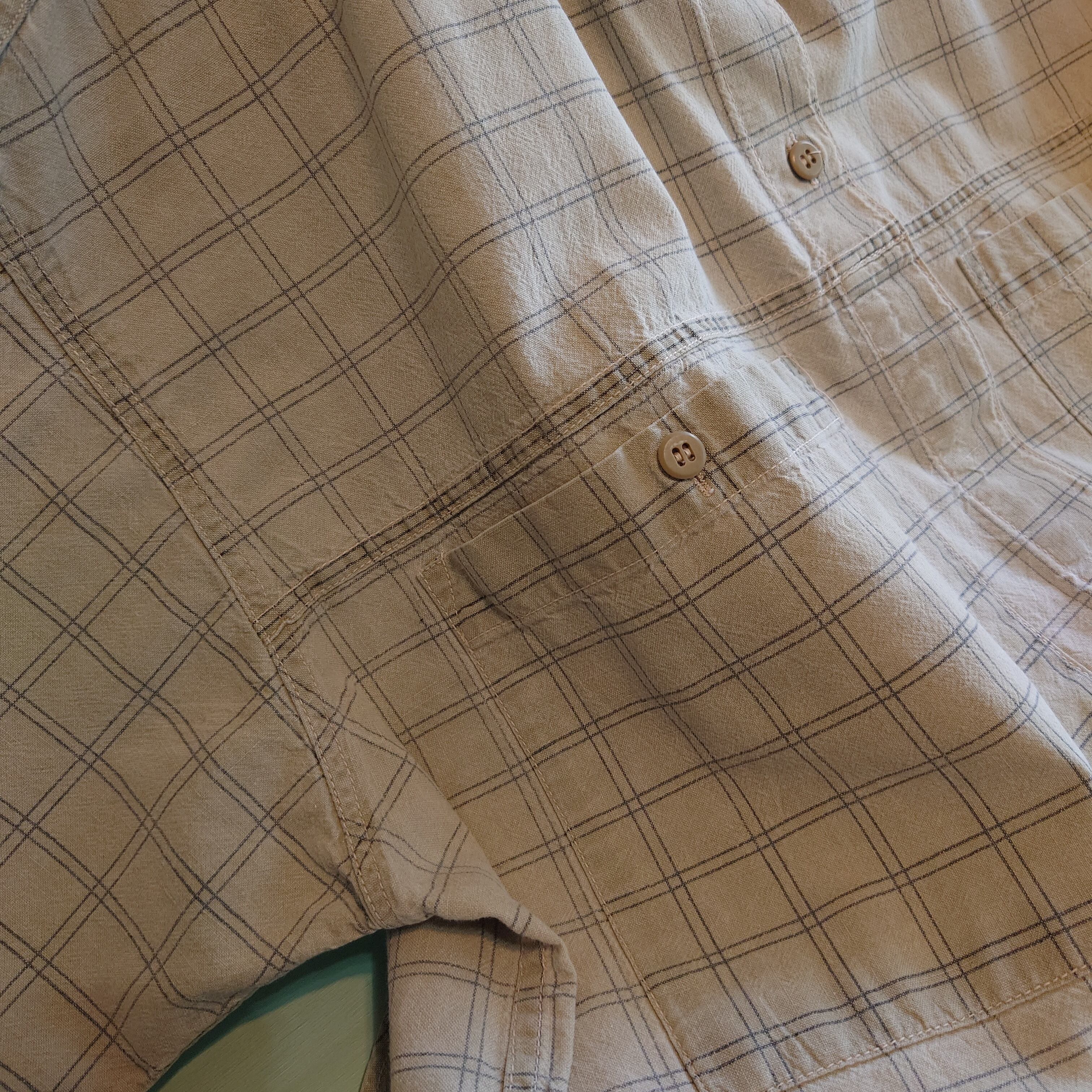 00s コットンドレスシャツ チェックシャツ チェックブラウス レディースM 生成り
