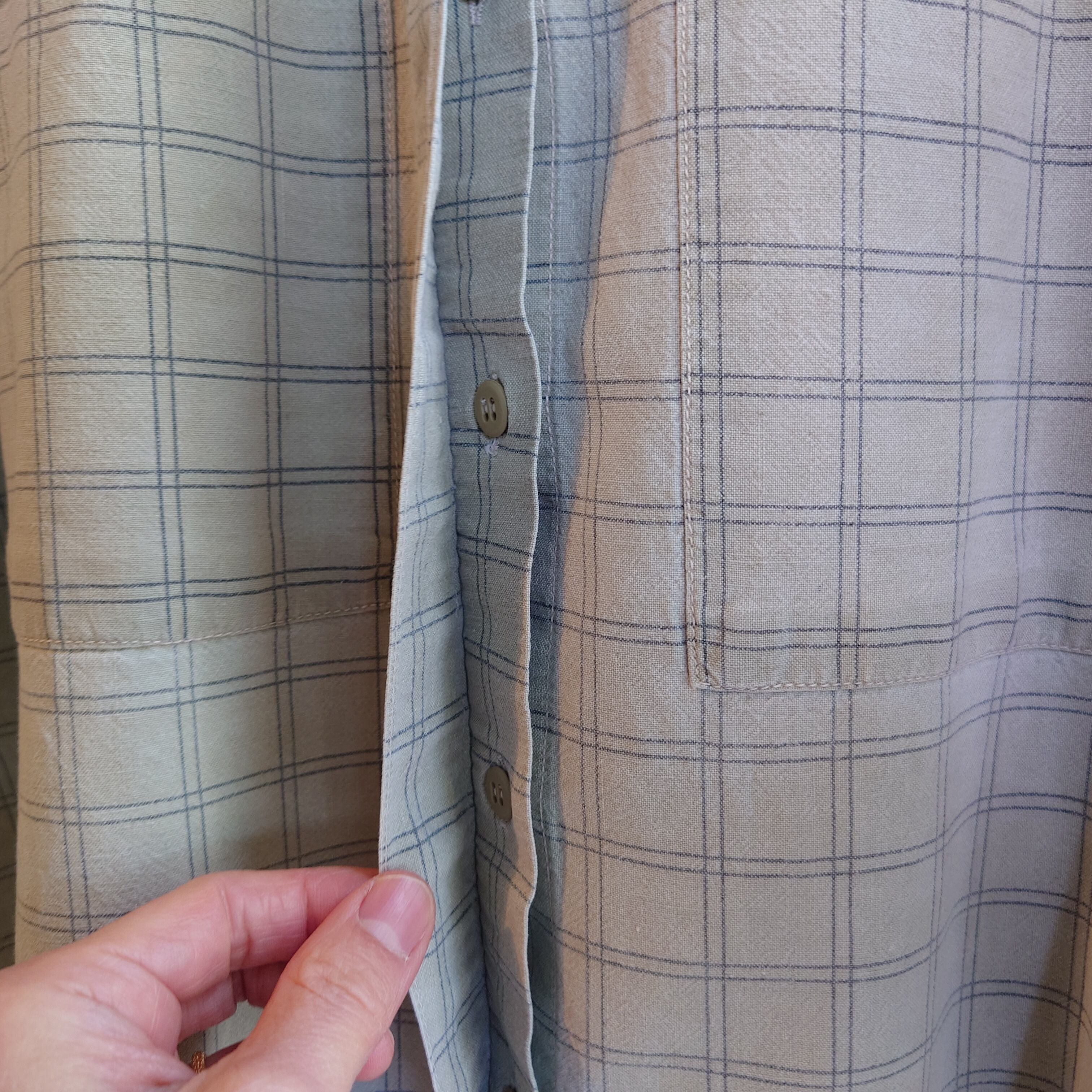 ◎00s コットンドレスシャツ チェックシャツ チェックブラウス レディースM 生成り