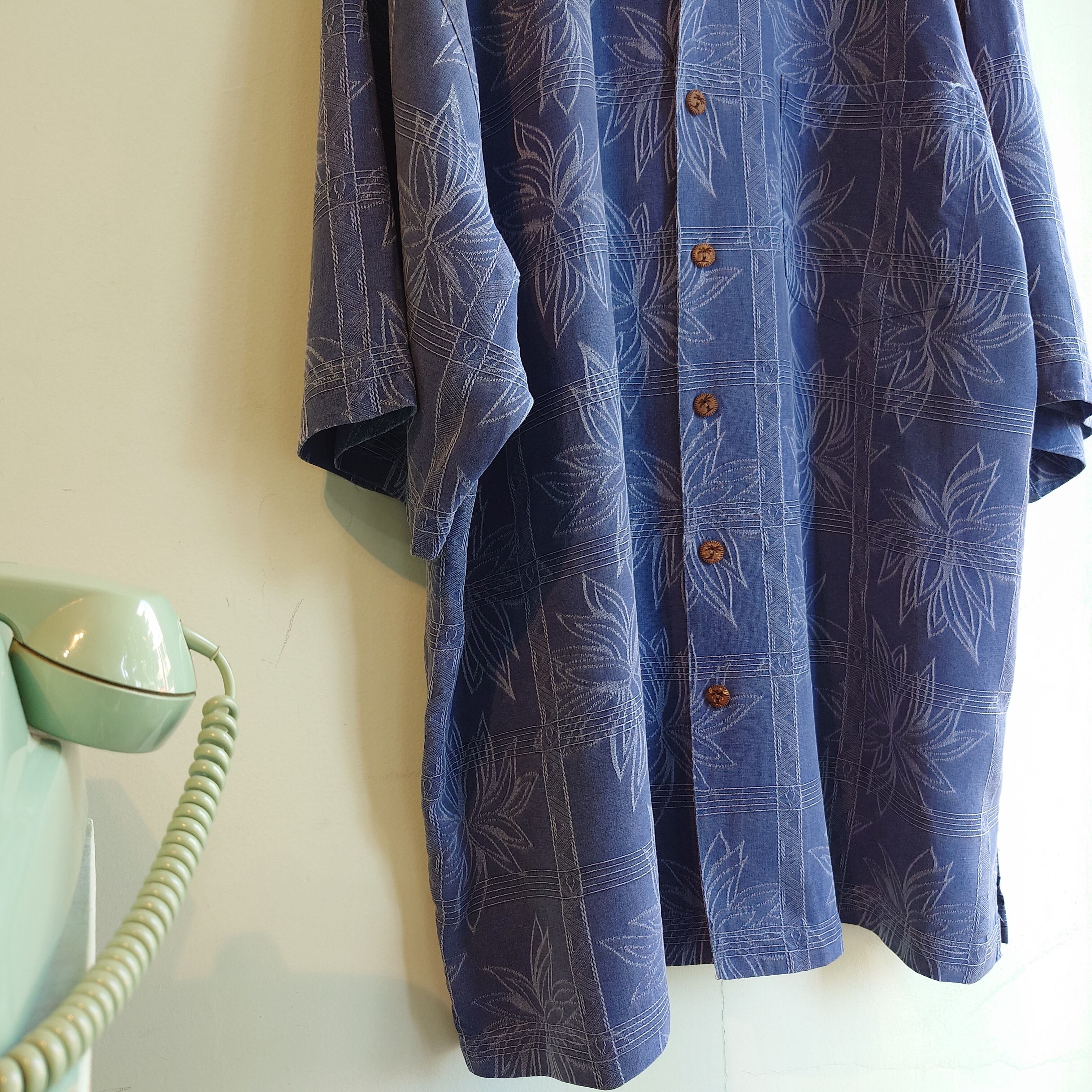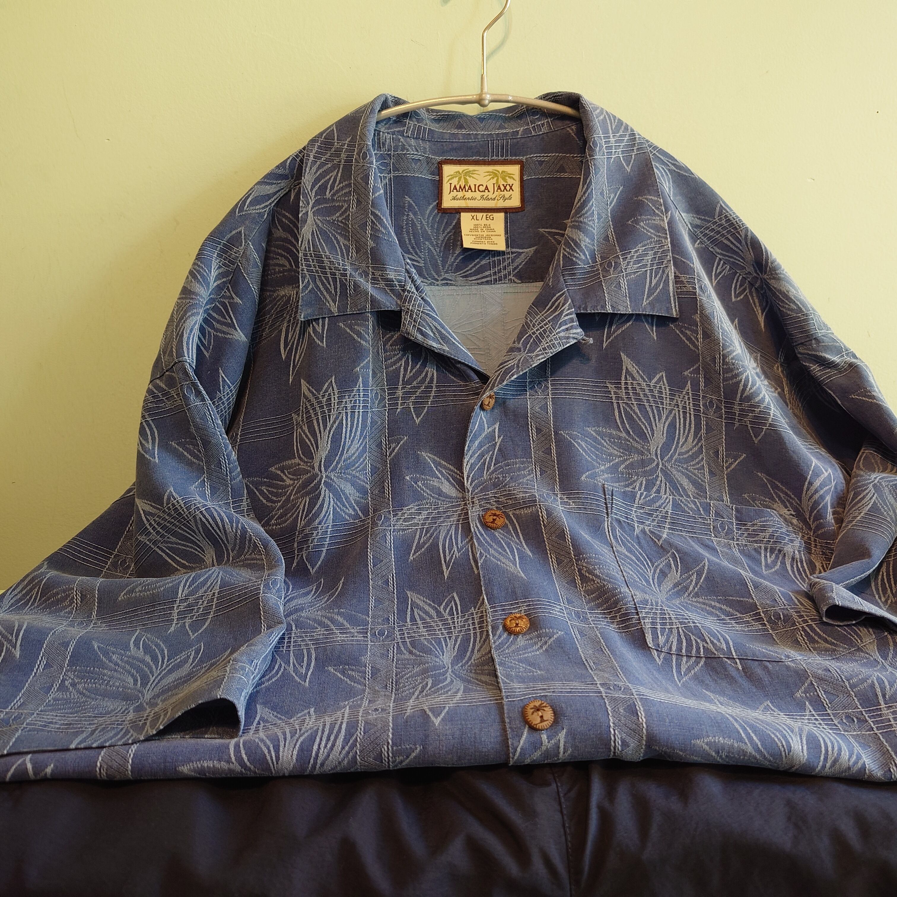 ◎Jamaica Jaxx 90-00s ハワイアンシャツ シルクシャツ 総柄シャツ ネイビー XL