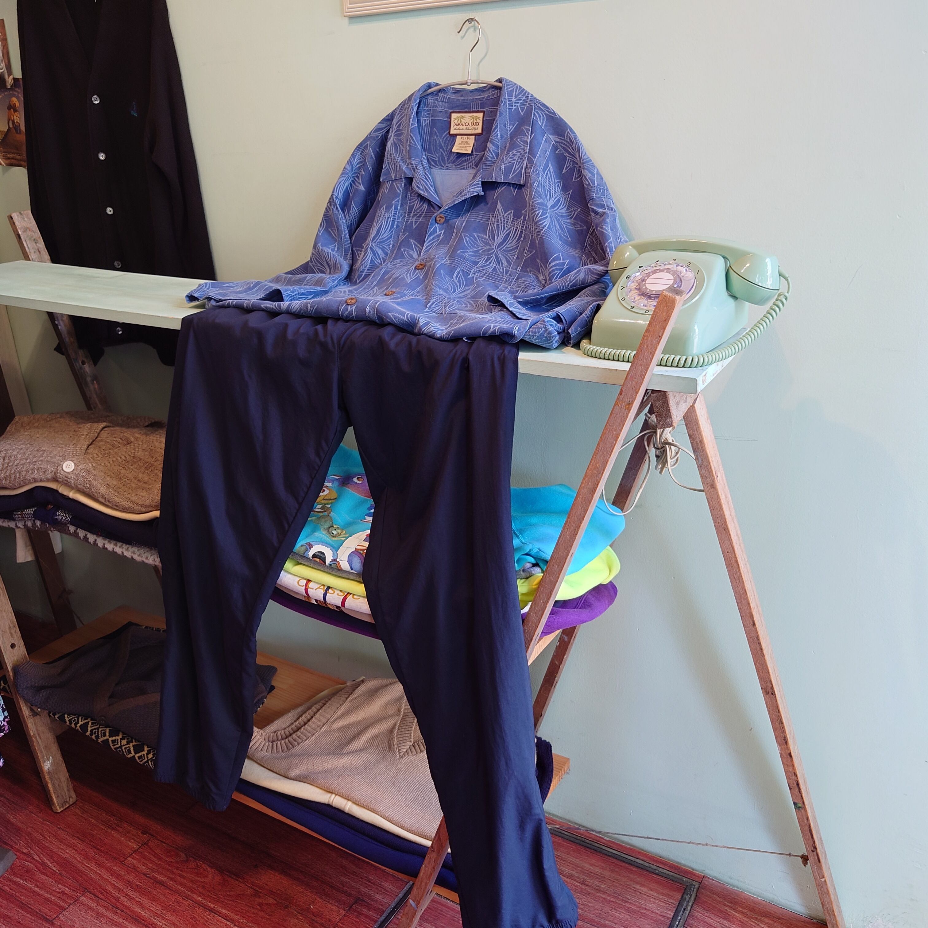 Jamaica Jaxx 90-00s ハワイアンシャツ シルクシャツ 総柄シャツ ネイビー XL
