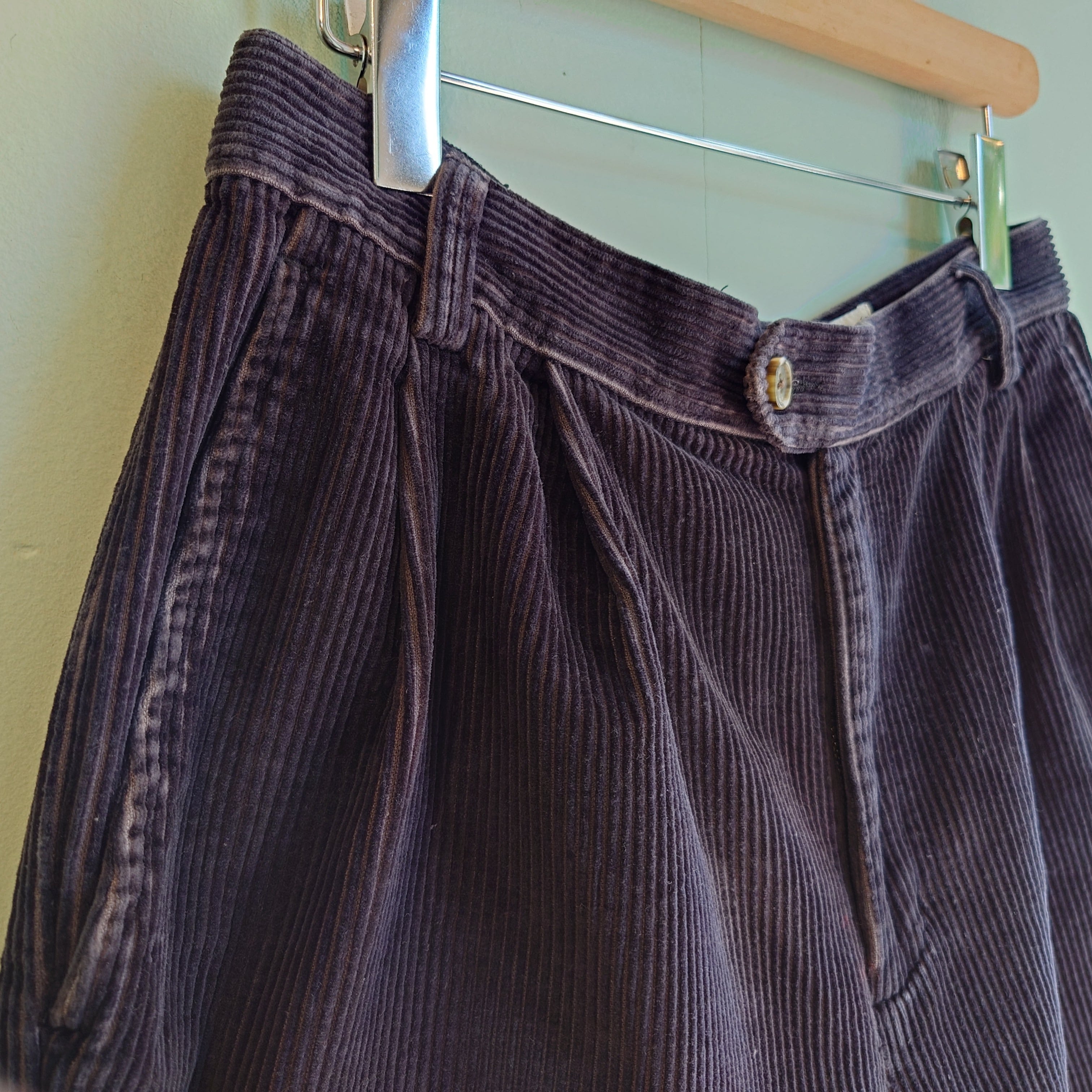 エディー・バウアーの太畝コーデュロイショーツ。ツータックのボリューム感そのもので味わえる長め丈で、ウエストに対してかなりワイド目なシルエットがかわいい。ブランドアイテムらしい、太畝のベルベットな風合いも抜群。