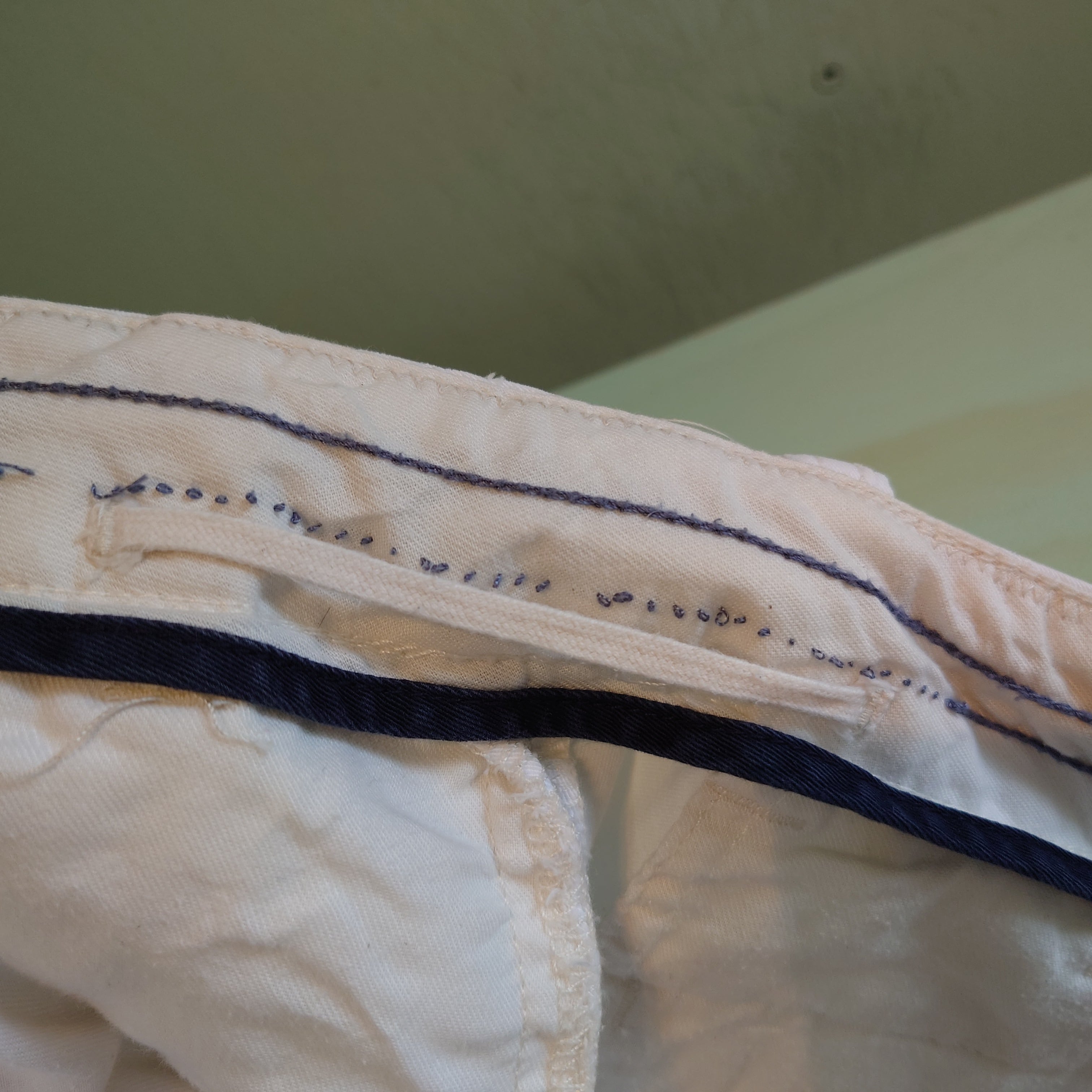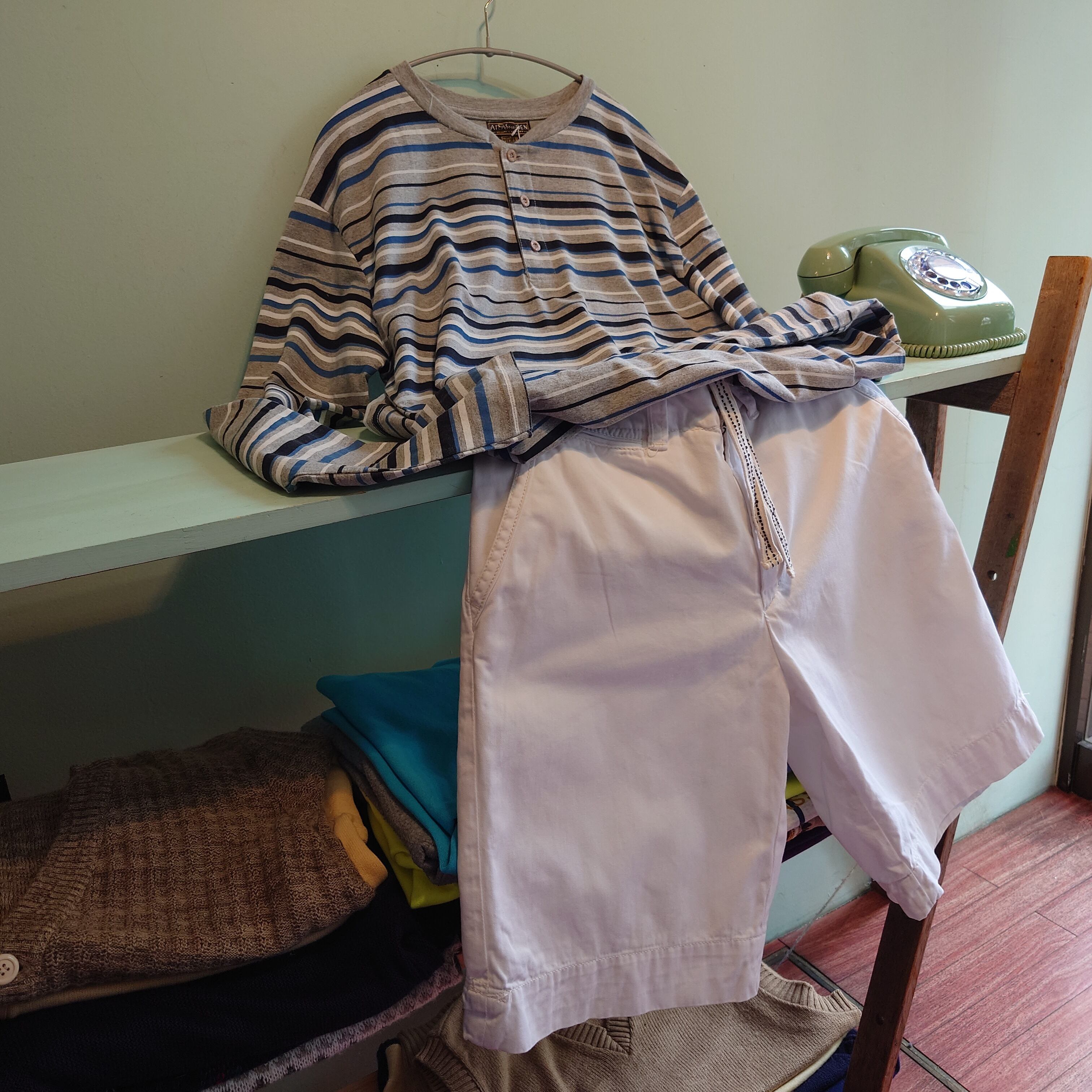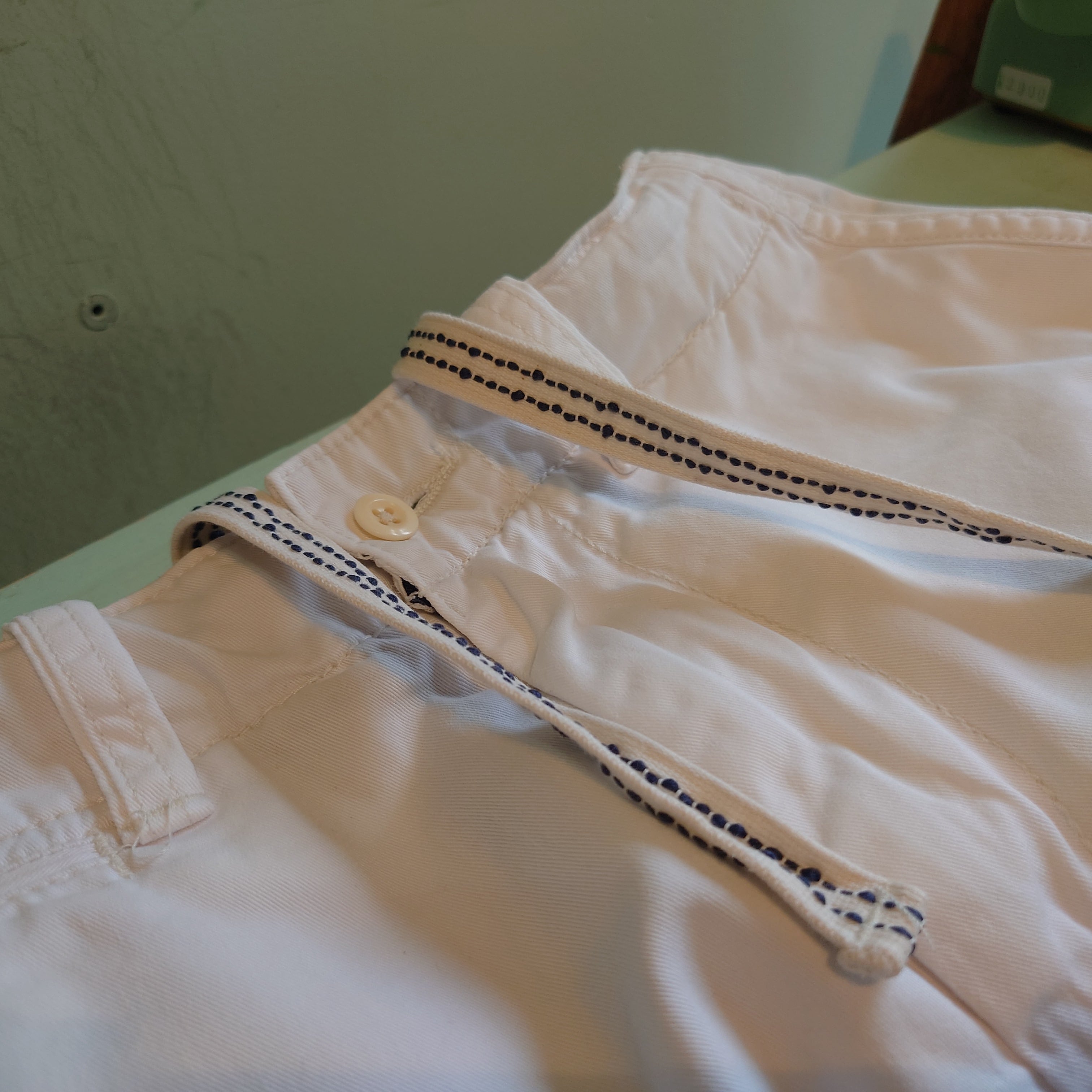 伝統的なボリューム感あるチノショーツをベースに、イージーパンツのように履けるウエスト紐を装備した変わり種コットンショーツ。刺繍のアクセントや、やや長めな丈感など、90s後半から00s 初頭らしいデザインが光る一本。女子コーデにも活躍間違いなしの白ショーツです。