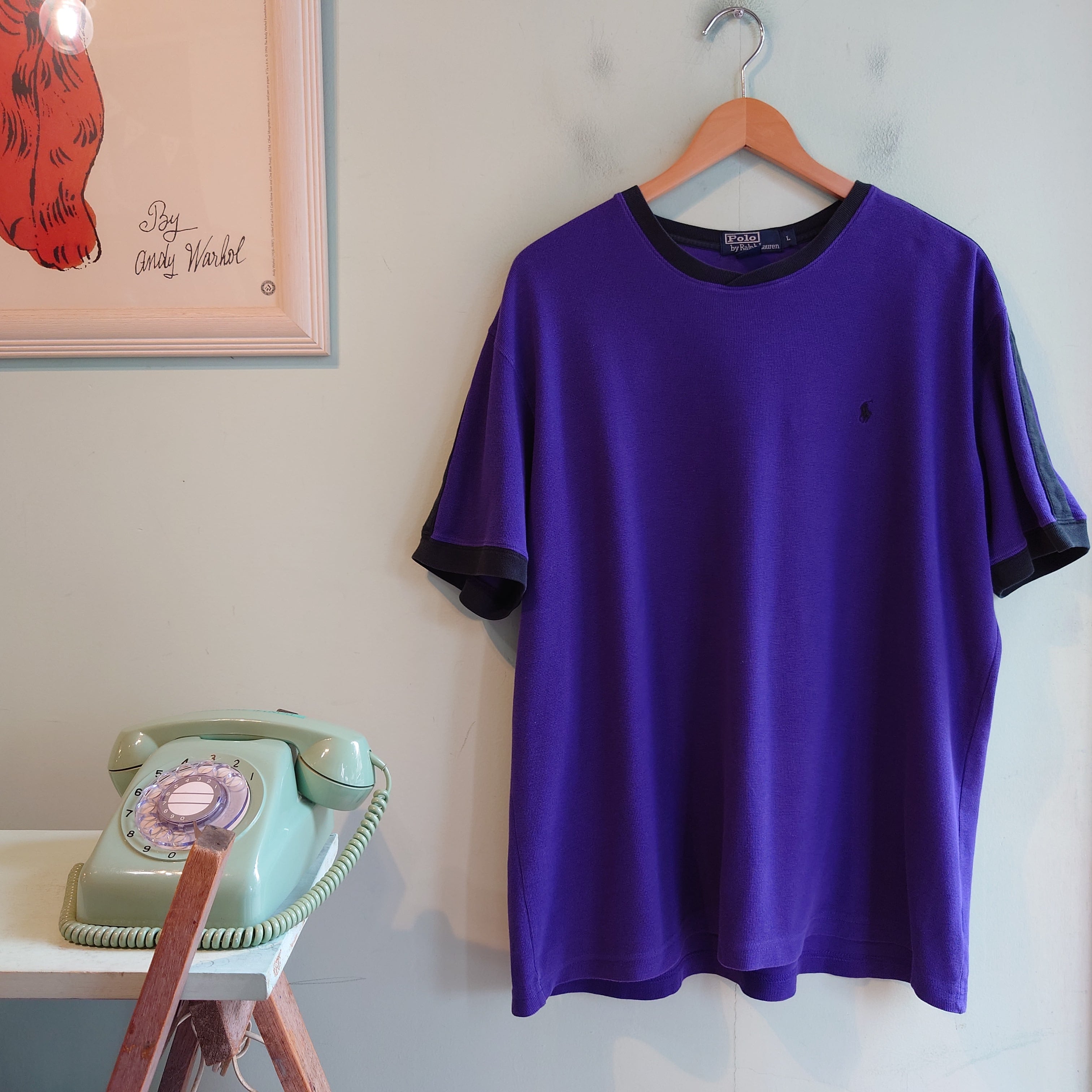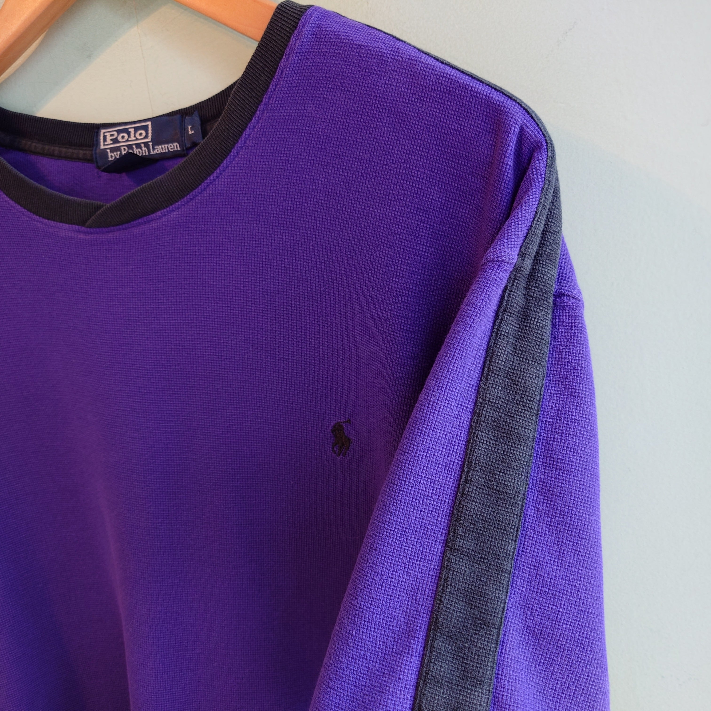 Polo by Ralph Lauren 90s vintage オールドラルフ ラインTシャツ 鹿の子Tシャツ 紫 L
