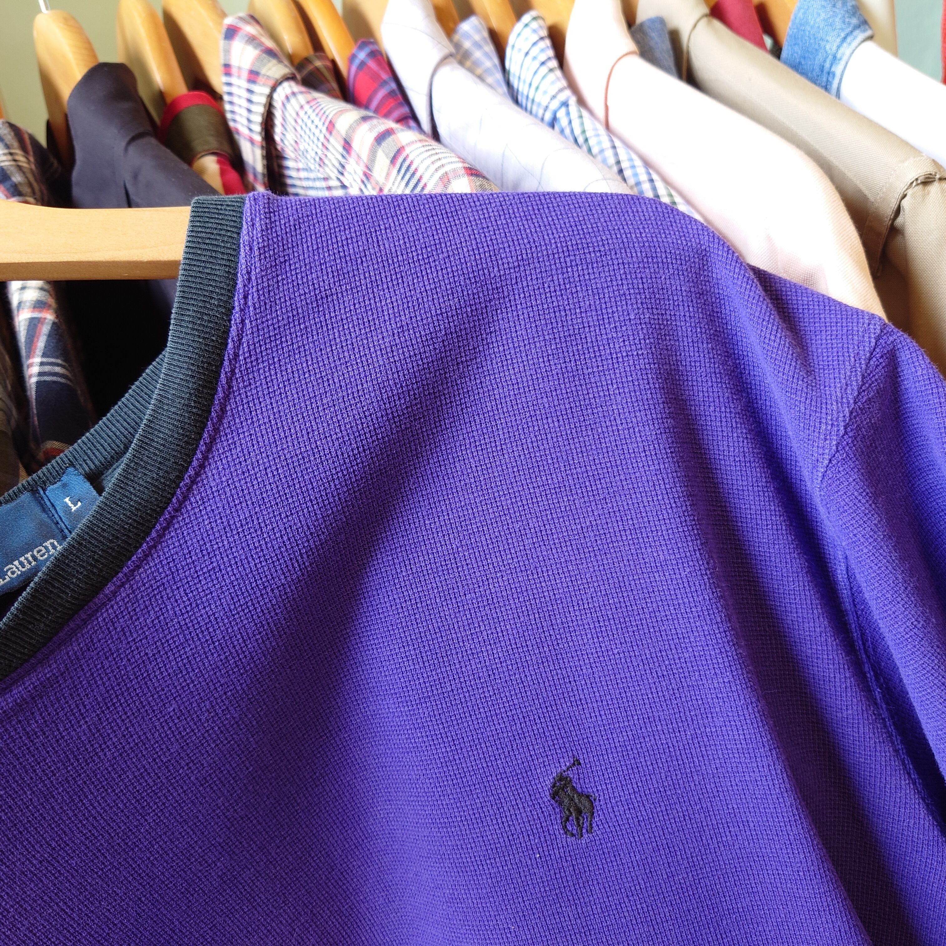 ◎Polo by Ralph Lauren 90s vintage オールドラルフ ラインTシャツ 鹿の子Tシャツ 紫 L
