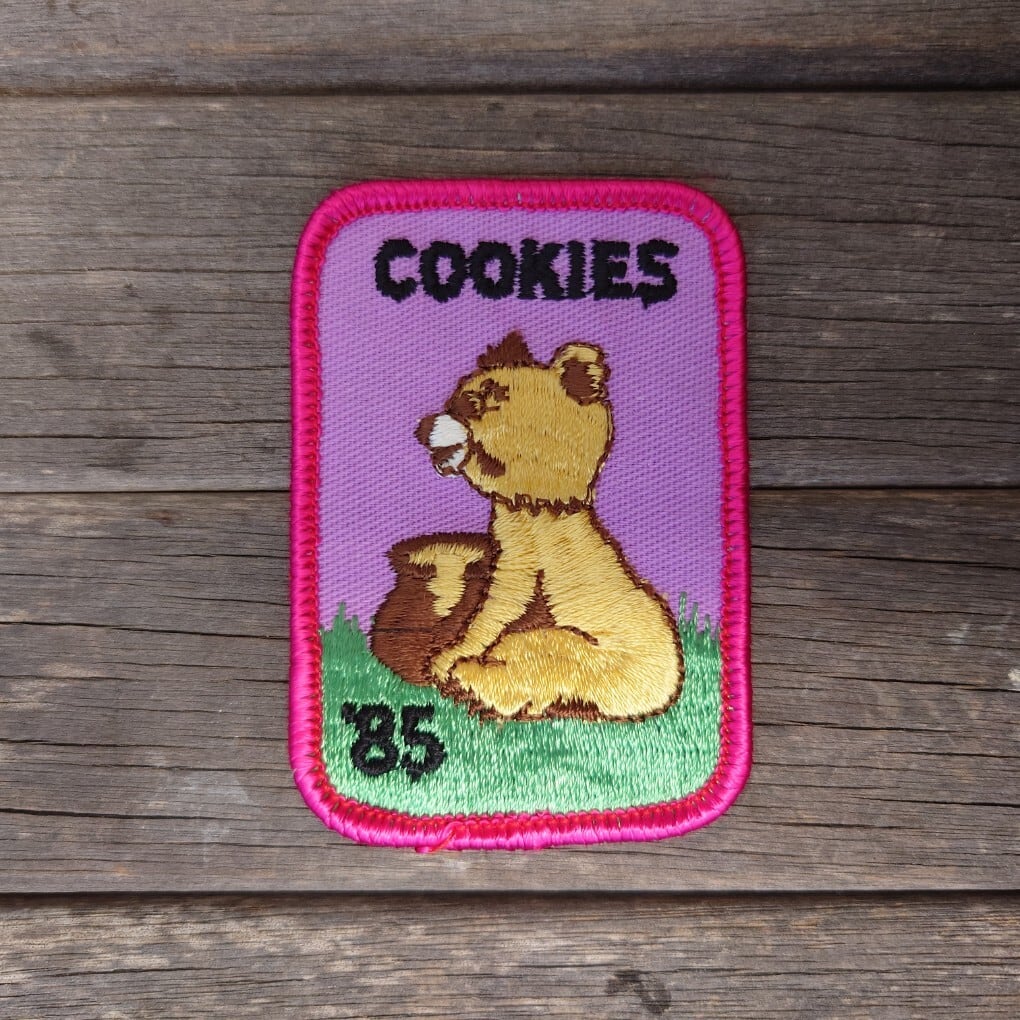 1985年のアメリカ・ガールスカウト系のヴィンテージワッペン。クマの刺繍がキュート。