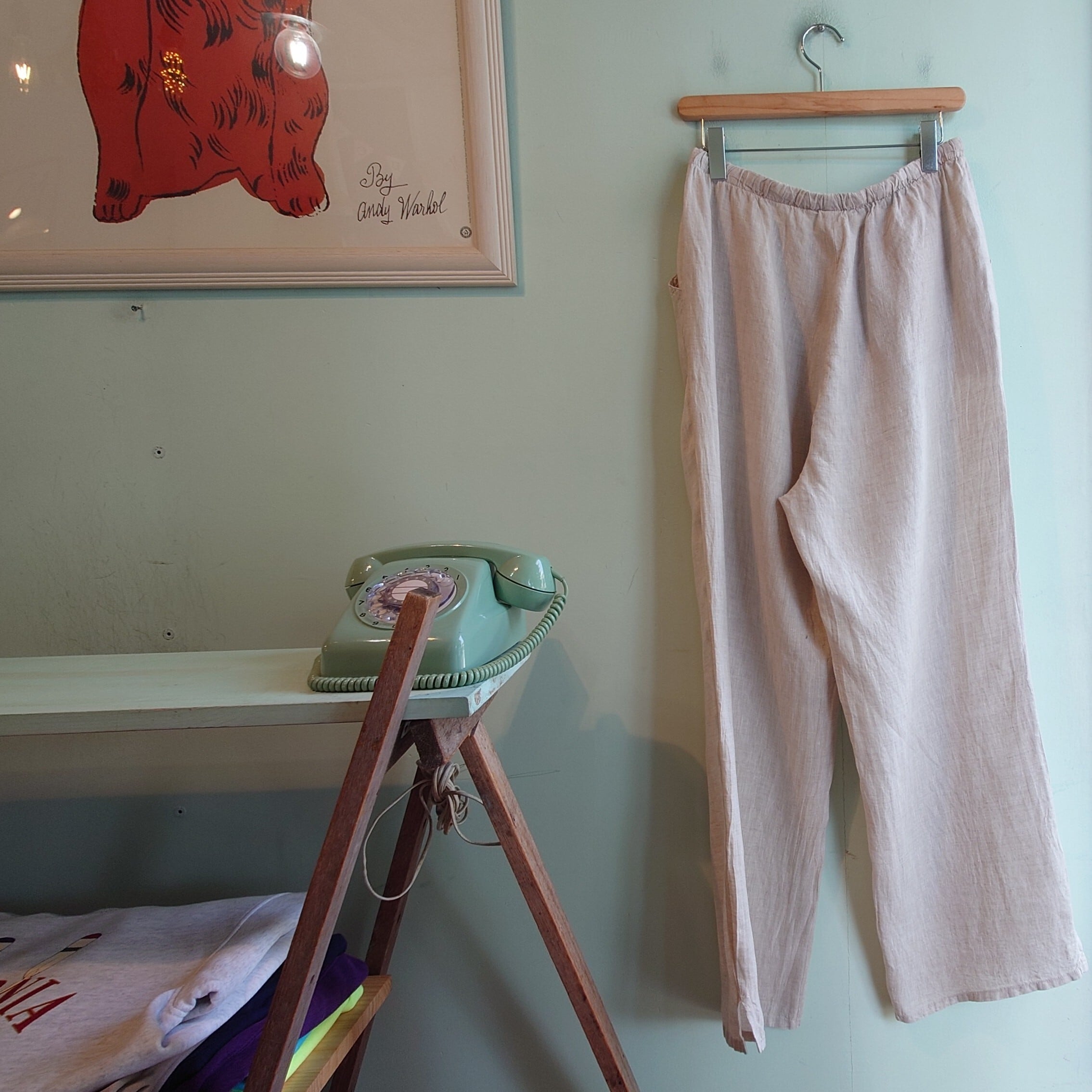 Sashay リネンイージーパンツ リネンパンツ ワイドイージーパンツ USA製 生成り レディースXL