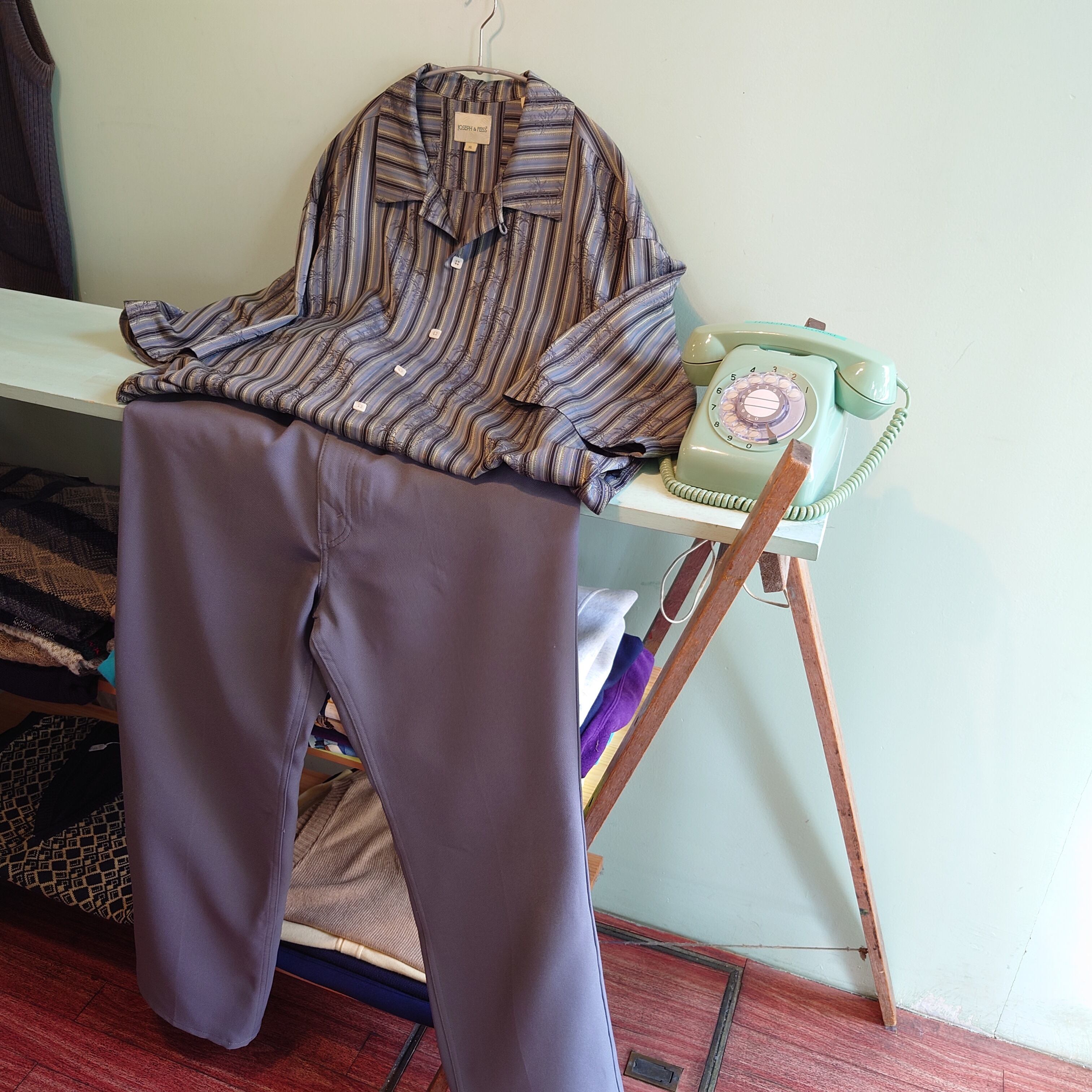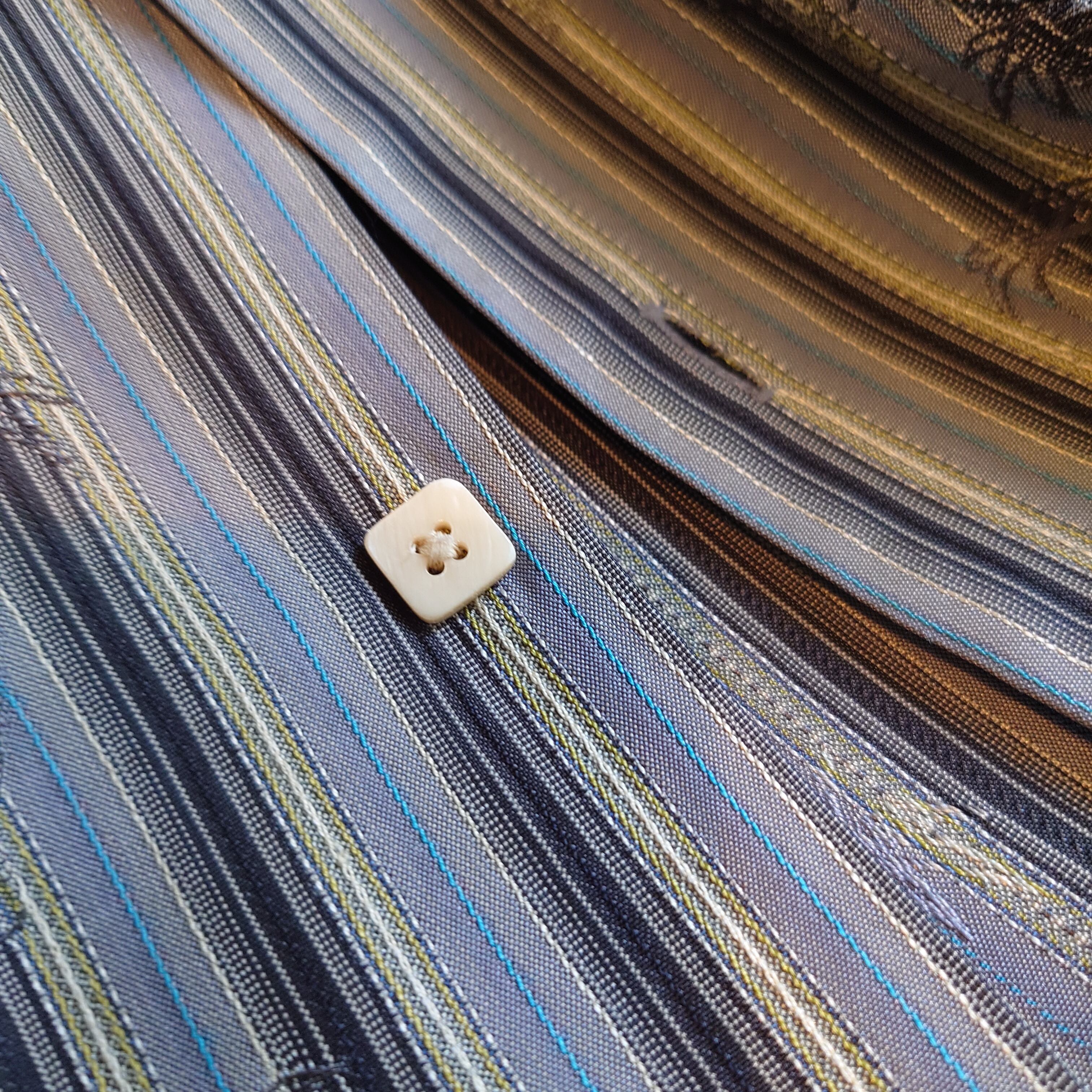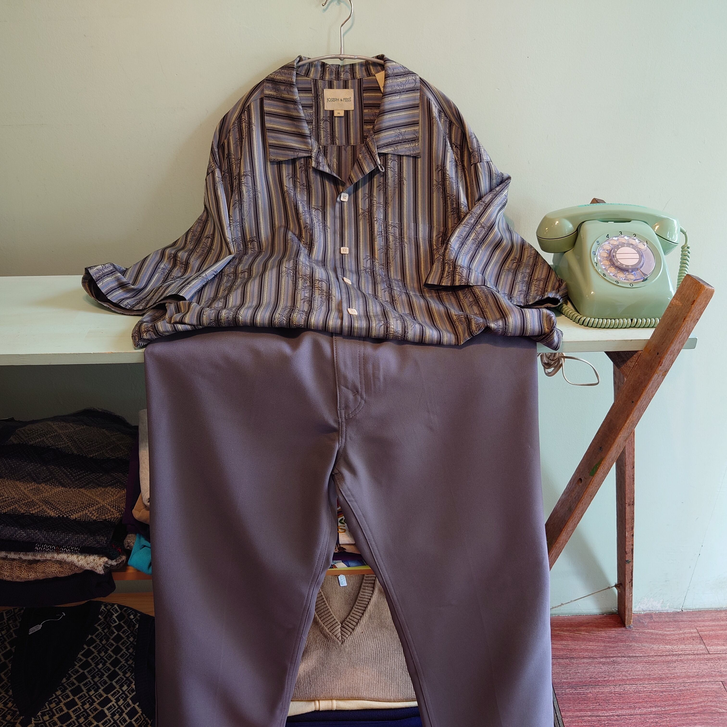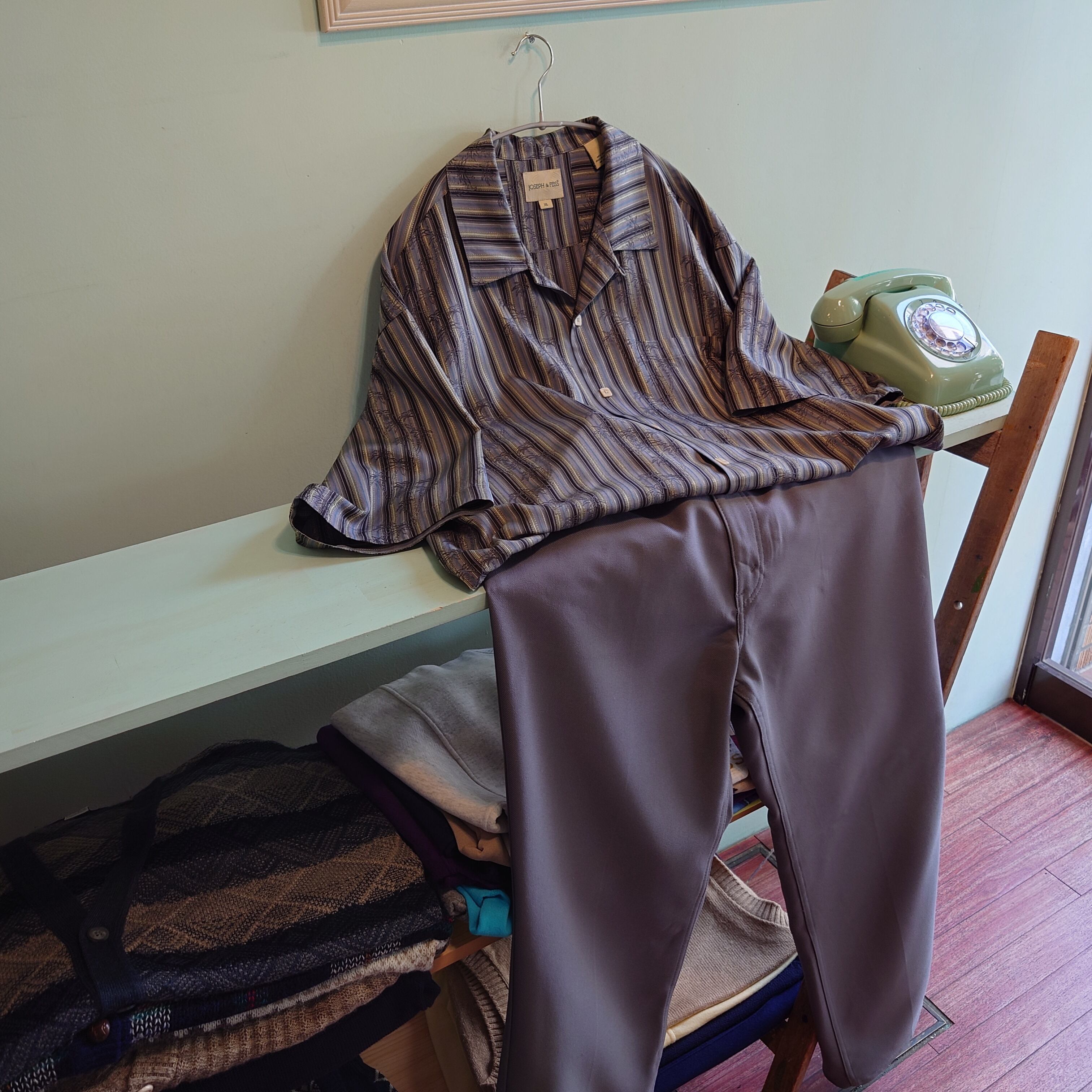 名門、Joseph & Feissの総柄シルクシャツ。ジャガードのように織り込まれたストライプ、総柄は、シンプルに見えて絶妙な糸目の作り込み。トロサラっとしたシルクの風合いで、シルエットと特別な動き感。王道ハワイアン系とは一味違う個性が光る柄シャツです。