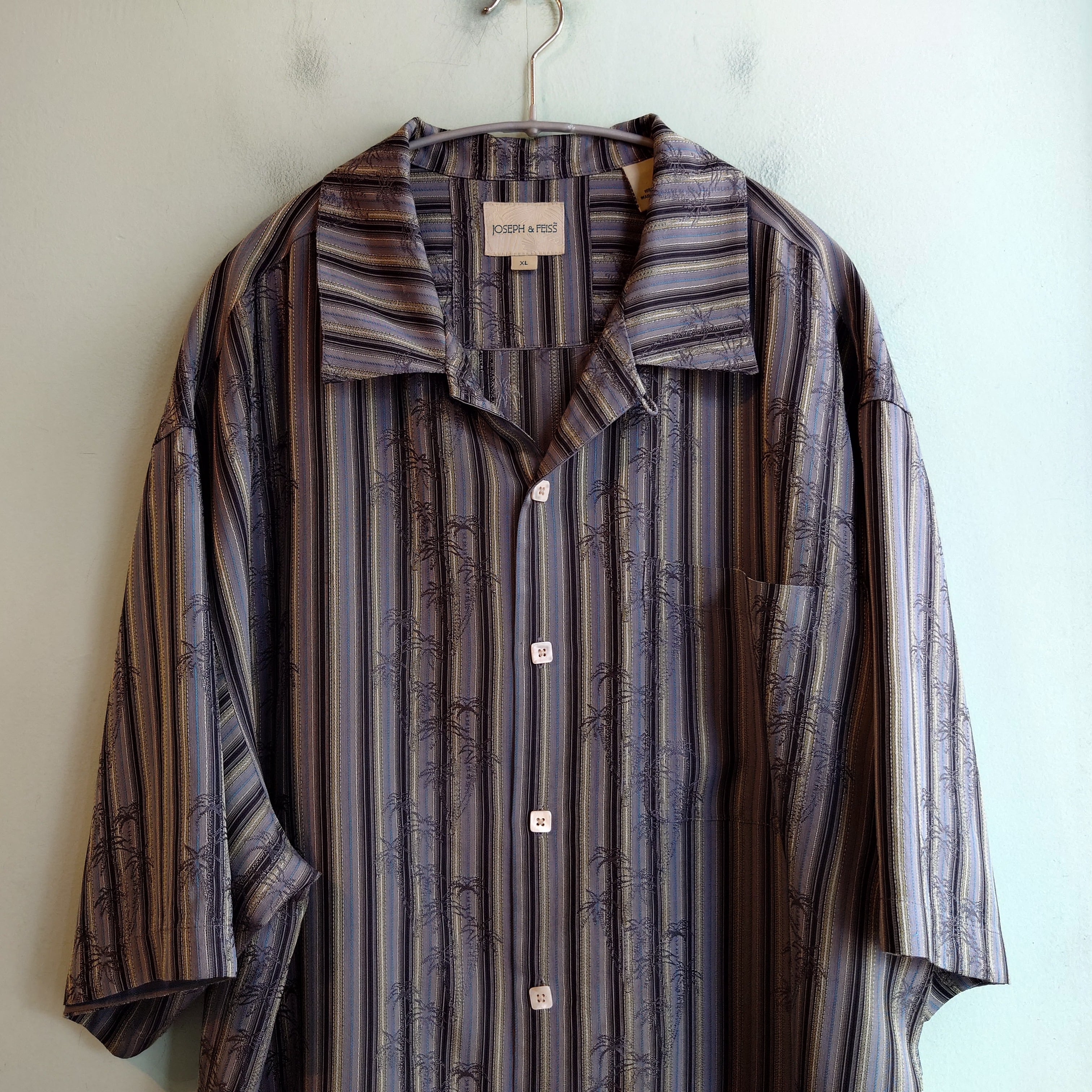 Joseph & Feiss 00s 総柄シャツ シルクシャツ オープンカラーシャツ グレー系 マルチカラー XL