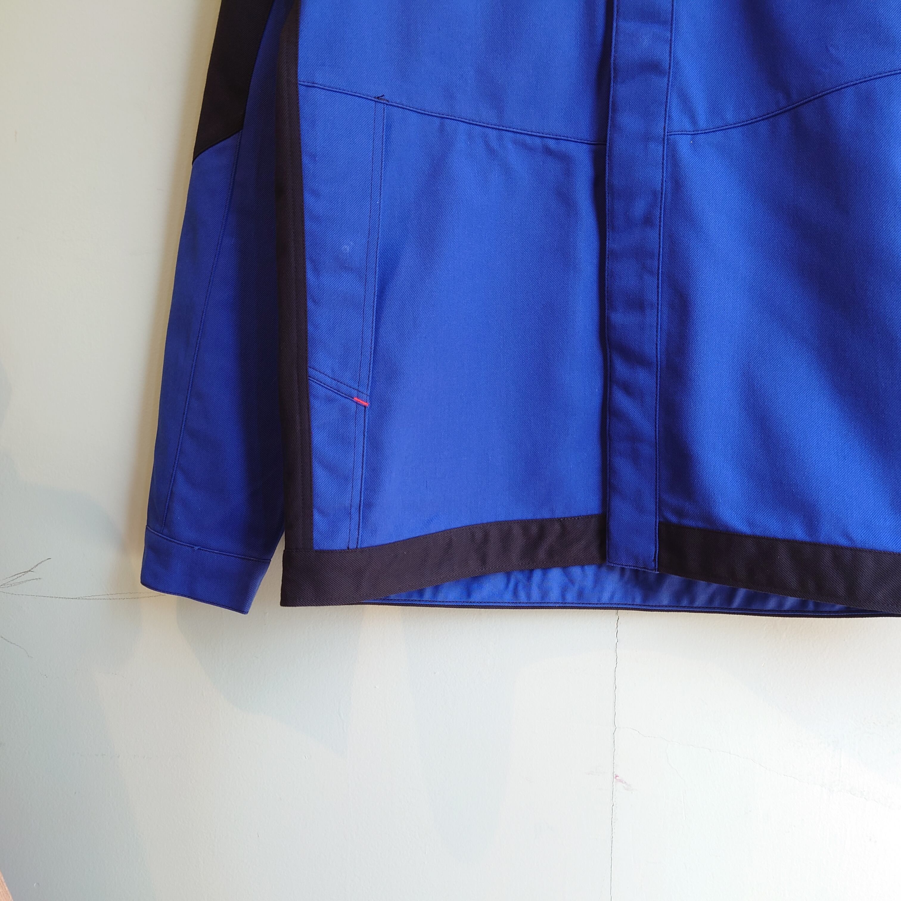 ★ユーロ系、バイカラーと刺繍がかわいいワークジャケット。ロゴはフランスの電力会社のもの。不燃素材、スナップボタン、ポケットや襟のディテールが面白い。USAアイテムにはないデザインが楽しめる一枚。