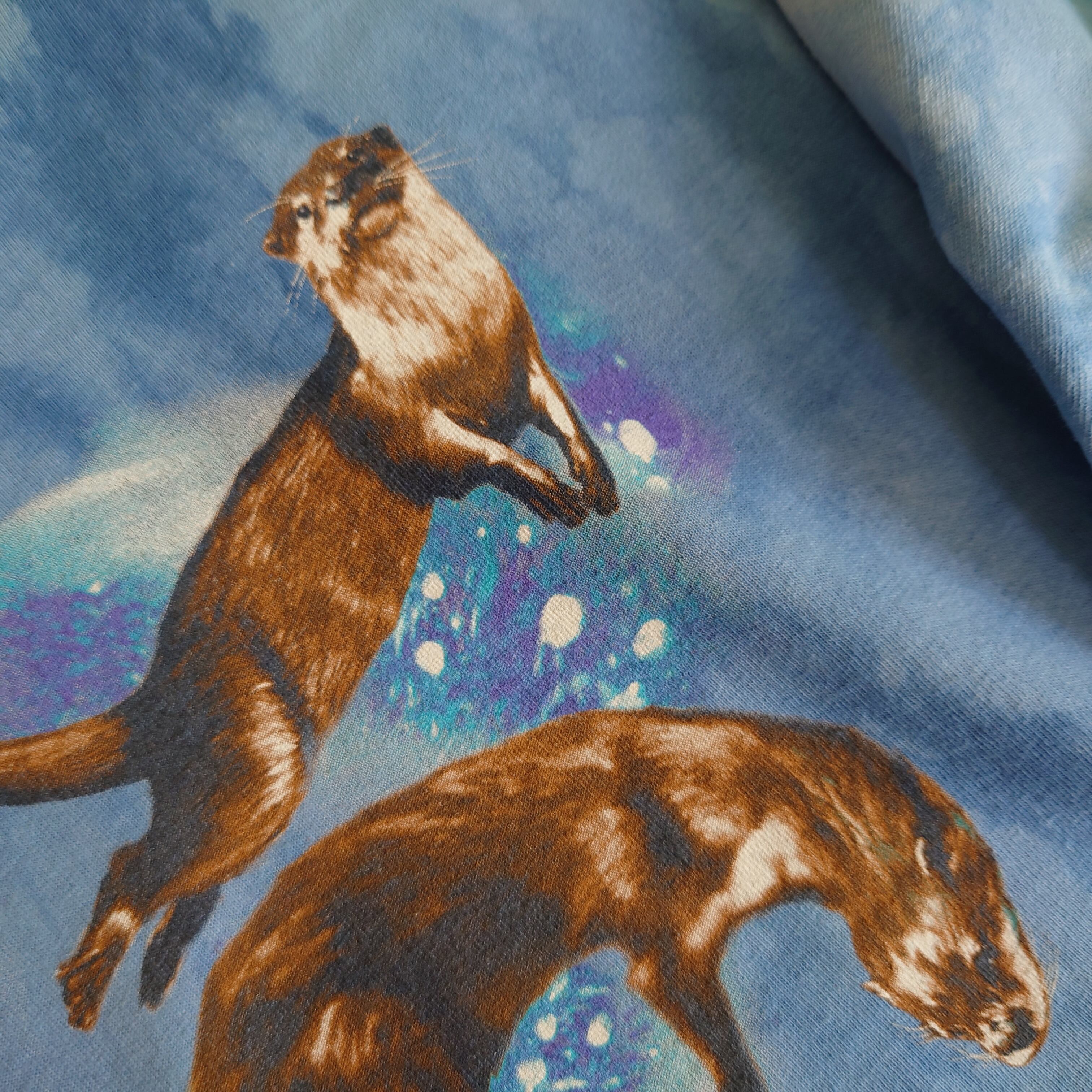 ★天の川を泳ぐカワウソが描かれたドリーミーなプリントが美しい、テネシー水族館のアクアリウムTシャツ。アニマルTシャツの中でもレアなカワウソ。タイダイとリンクするマーブルな背景も素晴らしい。