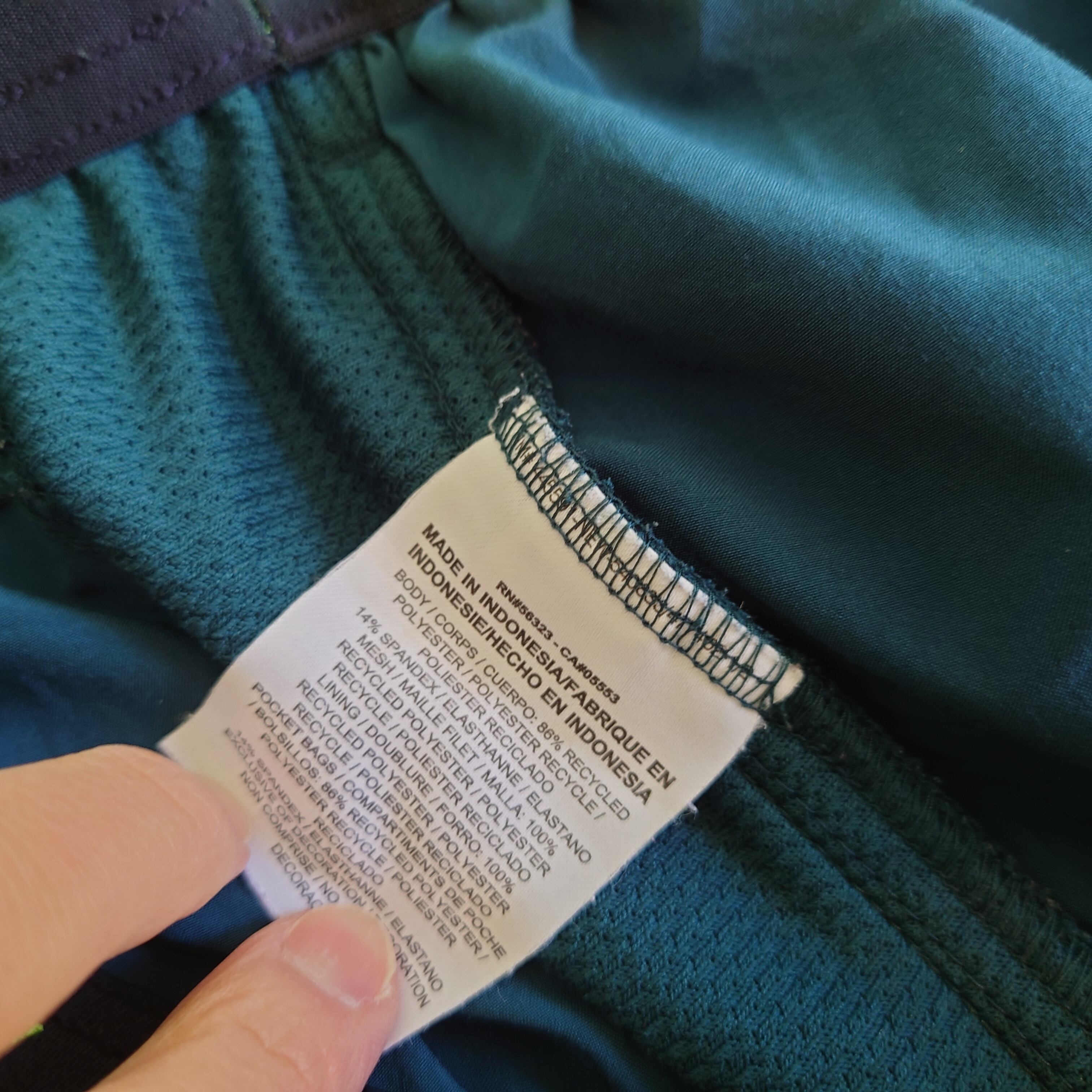 ★光沢感のあふダークグリーンに、蛍光イエローがスタイリッシュなナイキのスポーツショーツ。メッシュ部分の気切り替えもポイント。ひらひら動きのある素材とボリューミーなシルエットがコーデのポイントに。