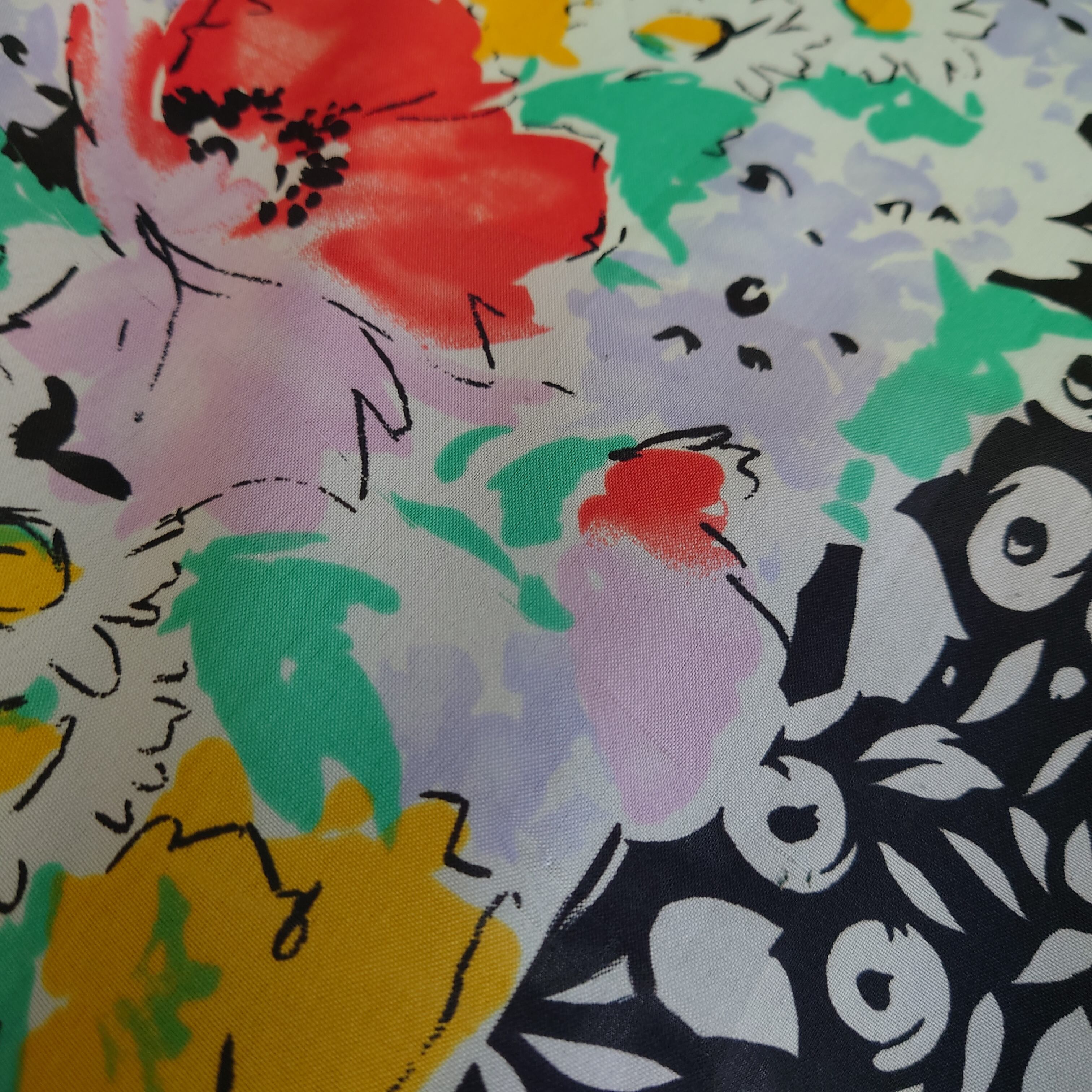 ★花柄とアニマル柄、カラフルとモノトーンがリンクするヴィンテージスカーフ。ちょうどよく可愛く、ちょうどよくスタイリッシュな絶妙スカーフ。