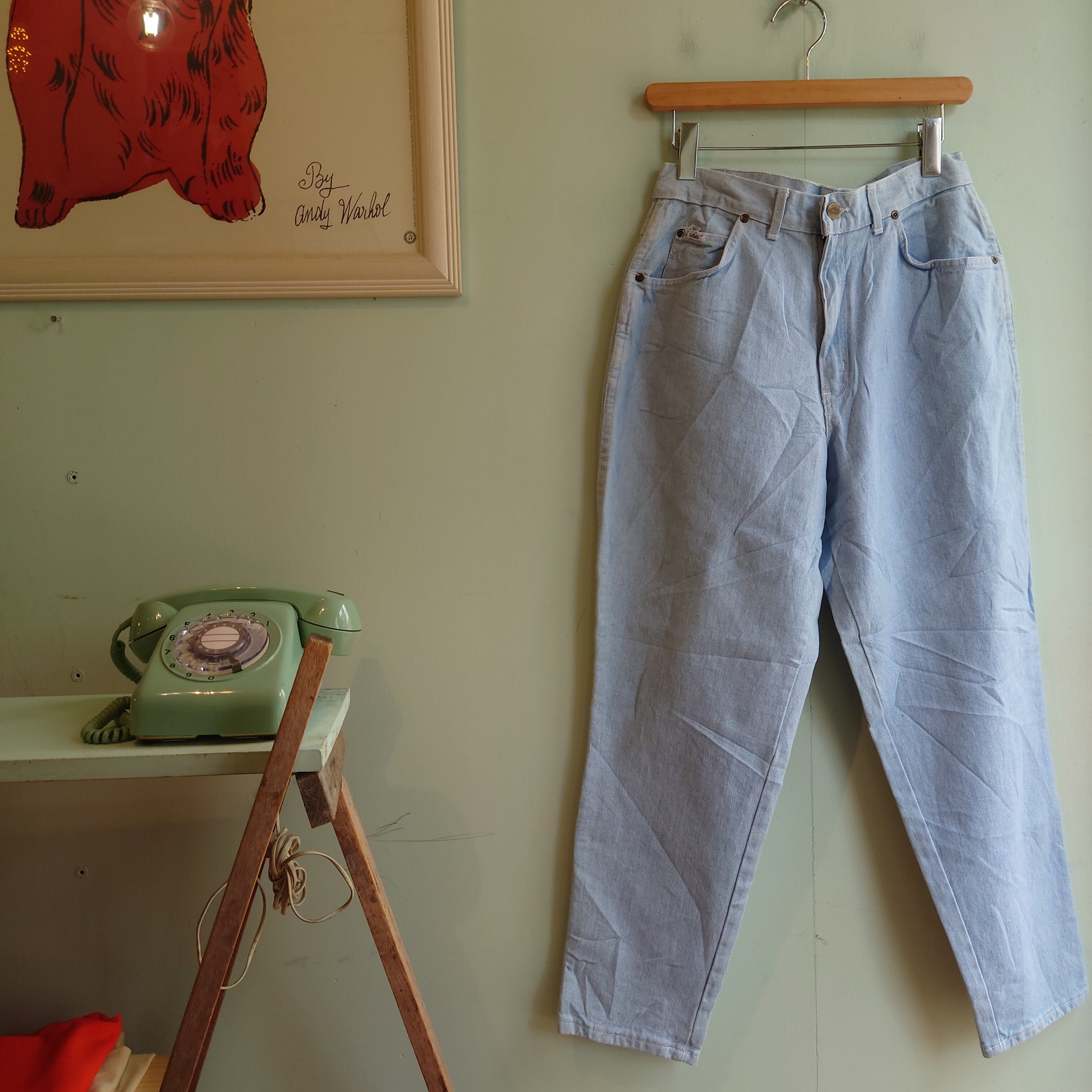 ★貴重、フラッシャー付きデッドストックのテーパードジーンズ。よりバギーでルーズなシルエットと、爽やかなアイスブルーの色味もばっちり。Tシャツやブラウスとあわせてレトロなコーデを楽しめる、ヴィンテージな一本。