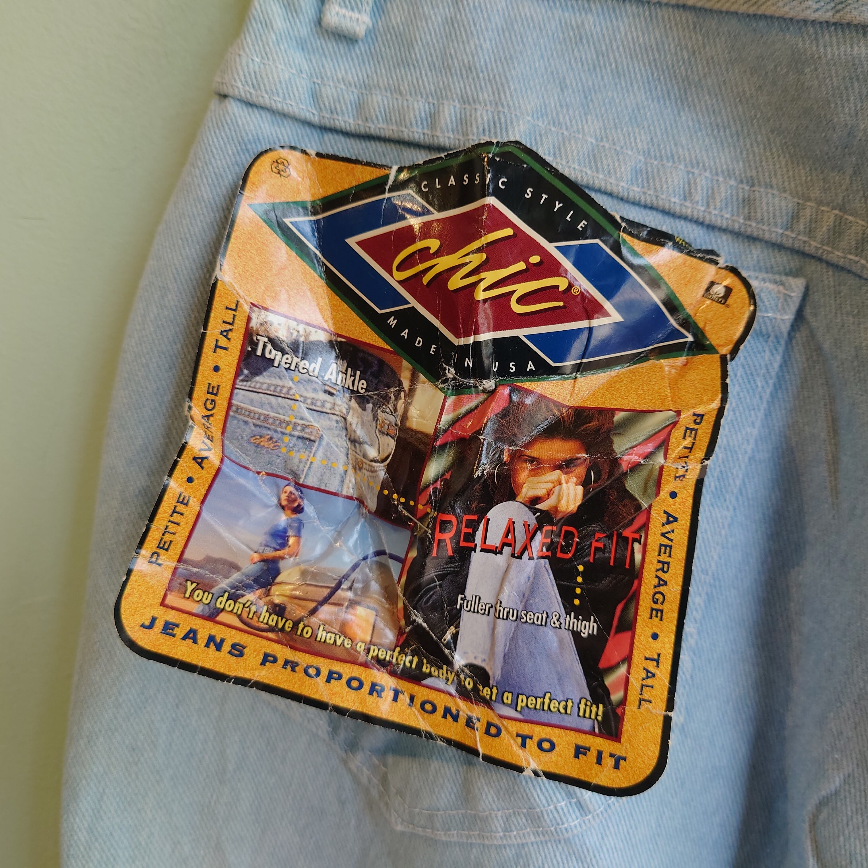 80-90s chic フラッシャー付き未使用 テーパードジーンズ ハイウエスト アイスブルー USA製