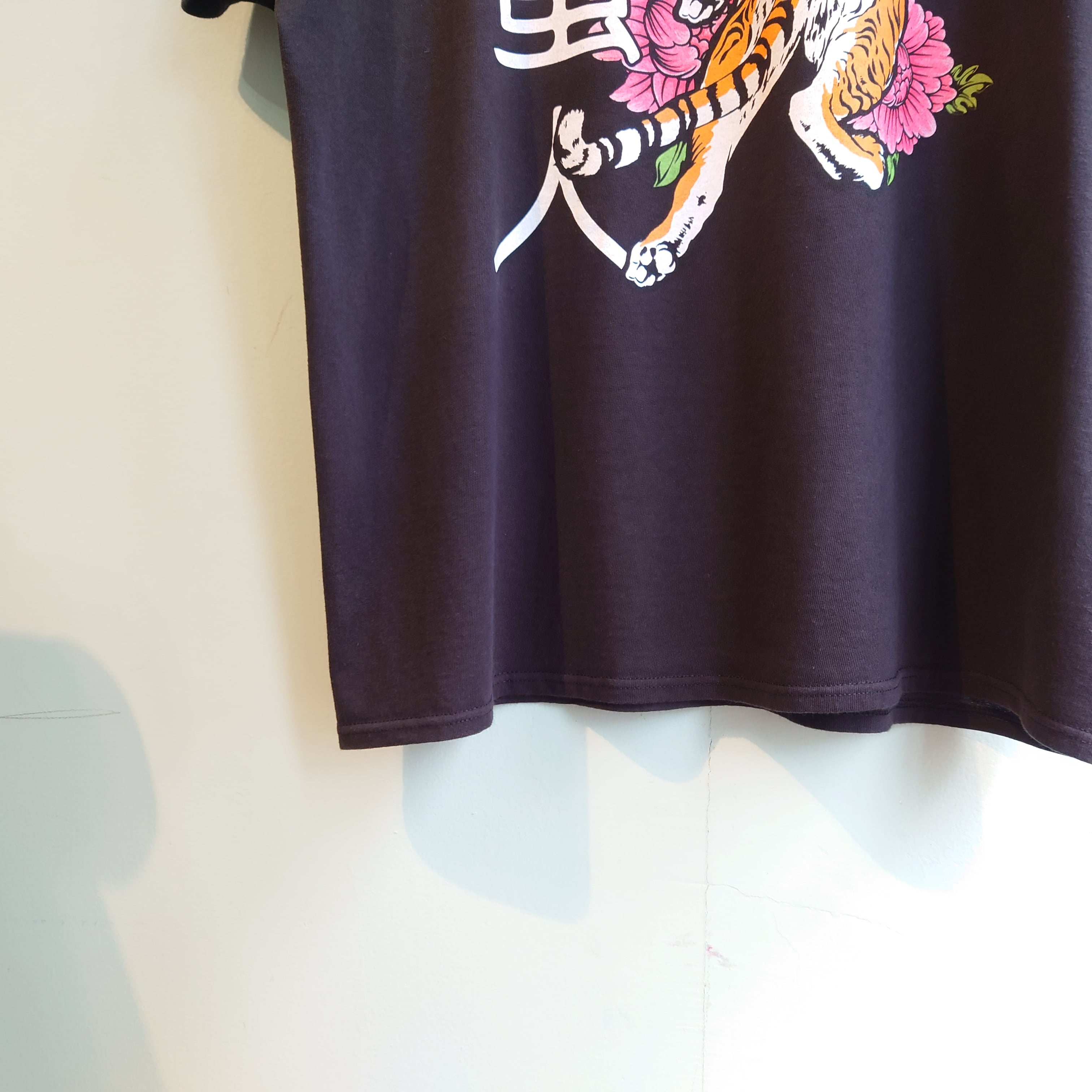 00s ベンガルトラ グラフィックTシャツ 和柄 漢字 黒 アニマルT