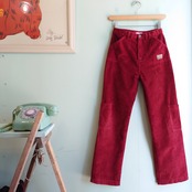 ◎ユーロ系 90s レディースコーデュロイパンツ 赤 太畝 ワークパンツw24