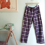 ★ネイビーベースの爽やかさに、赤いラインがかわいいノーティカのイージーチェックパンツ。パジャマパンツライクだけど、若干タウンよりの洗練された印象の一本。カットソー素材にややフリースのようなボア感が入るレア素材にすっきり太めなシルエット。