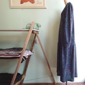 ★すっぽりと体を包み込む、ゆったりしたシルエットがかわいいヴィンテージワンピース。レーヨンのテロッとした生地感と、深いグリーンのペイズリー柄がトラッド。