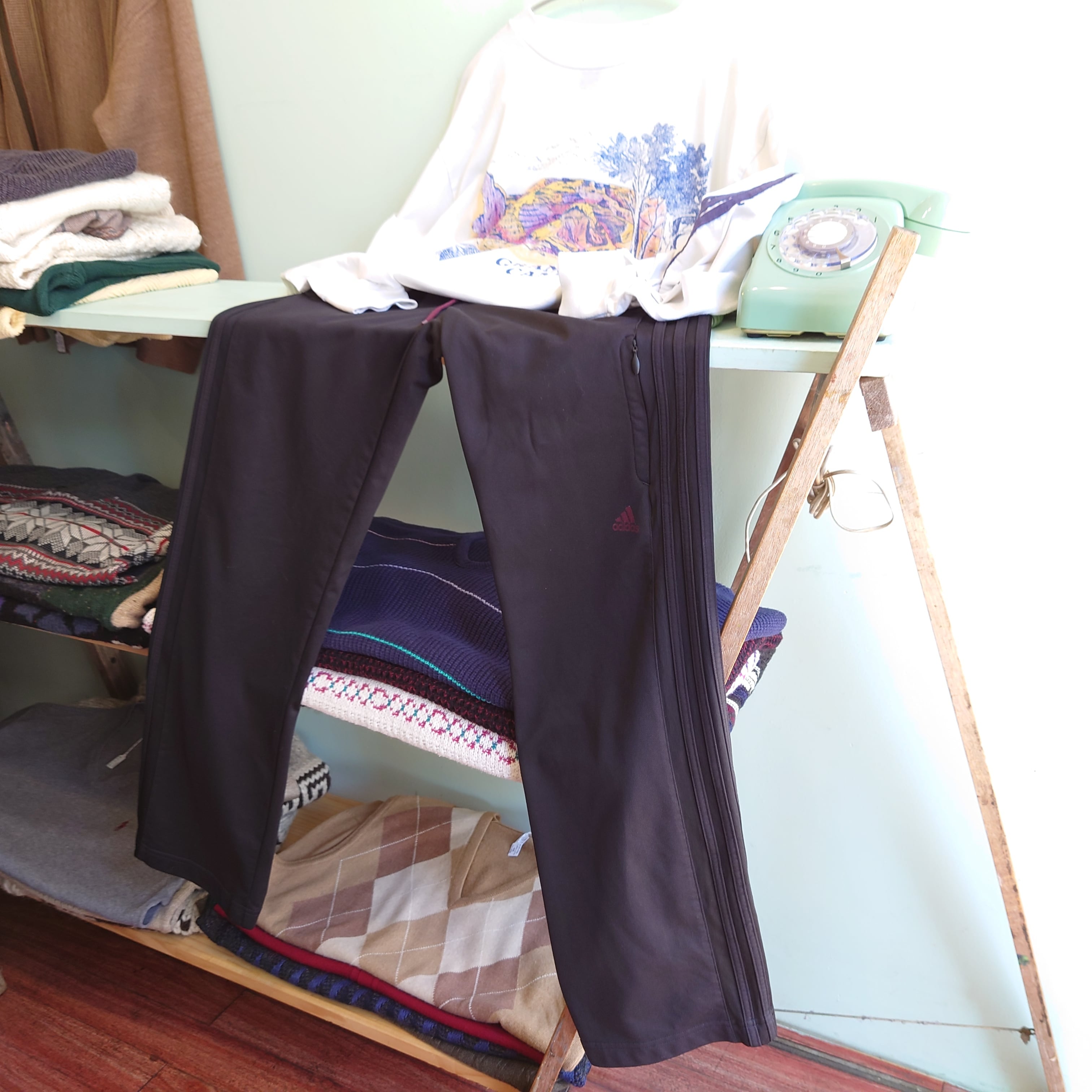 ◎adidas ジャージパンツ トラックパンツ オールブラック×ボルドー М