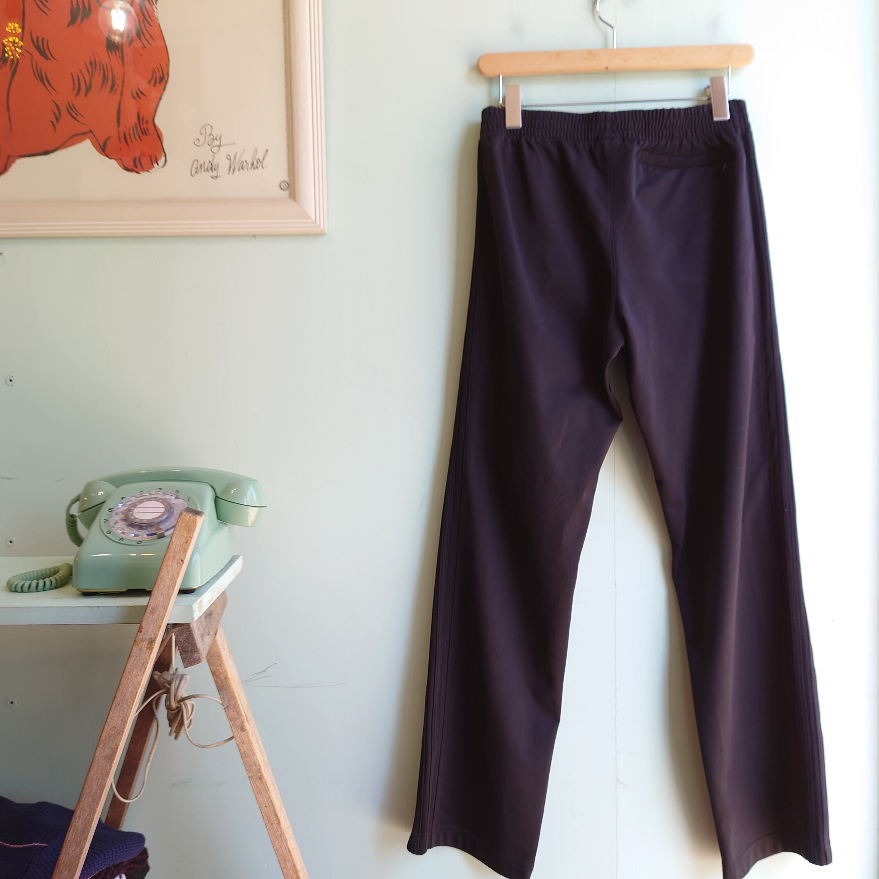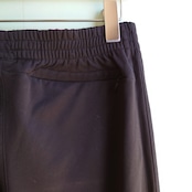 ★オールブラックスタイルに、ややスタイリッシュなシルエットを取り入れたトラックパンツ。ウエストインナーや紐にボルドーの差し色もセンスあり。