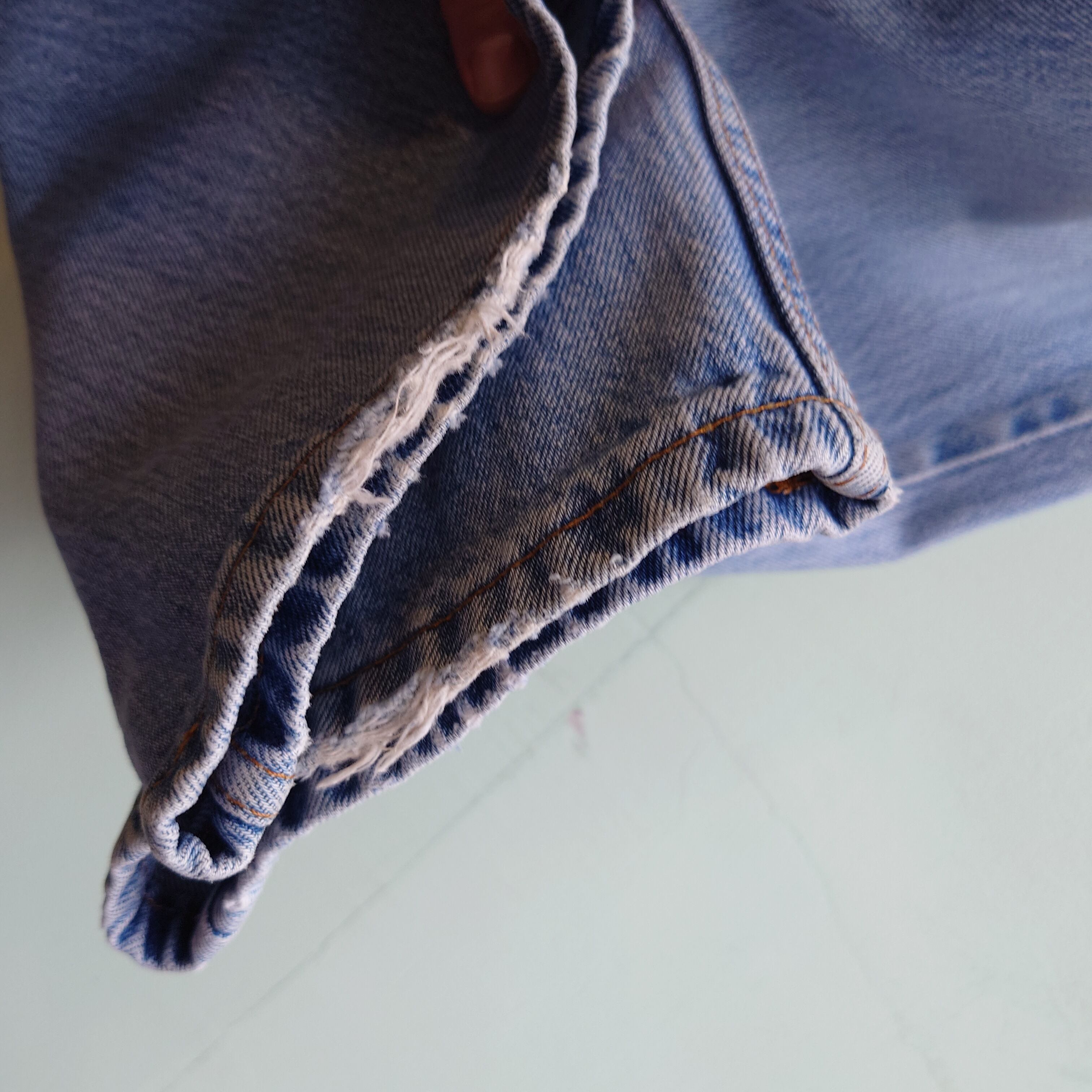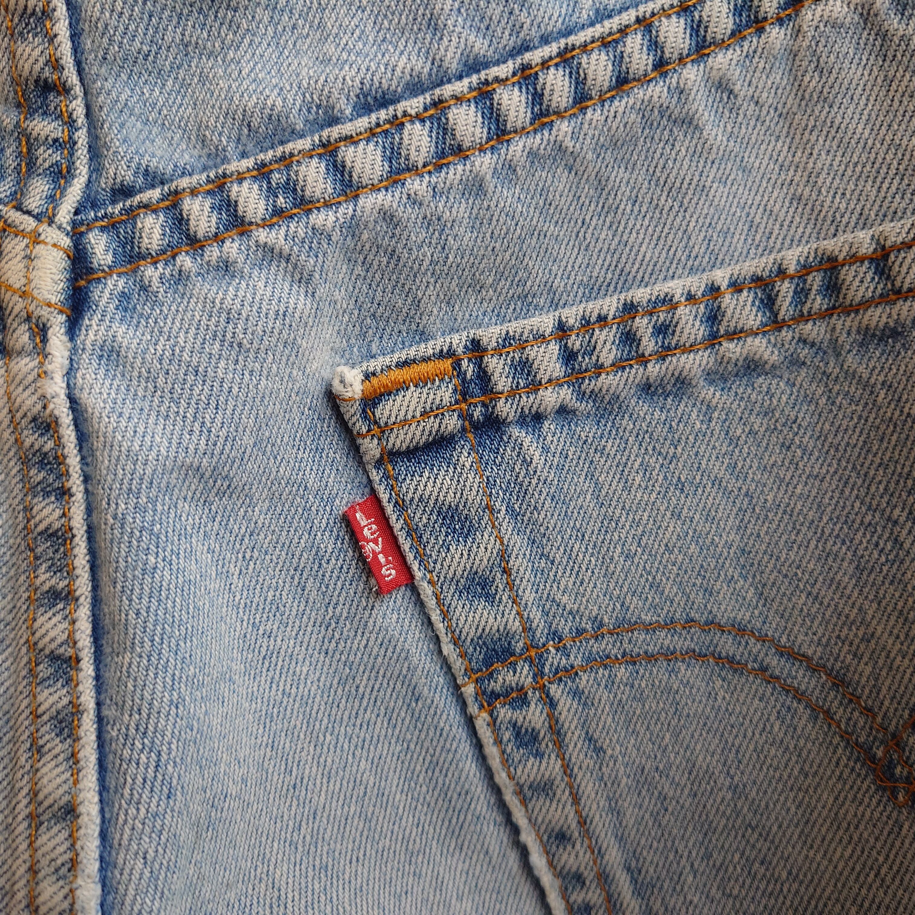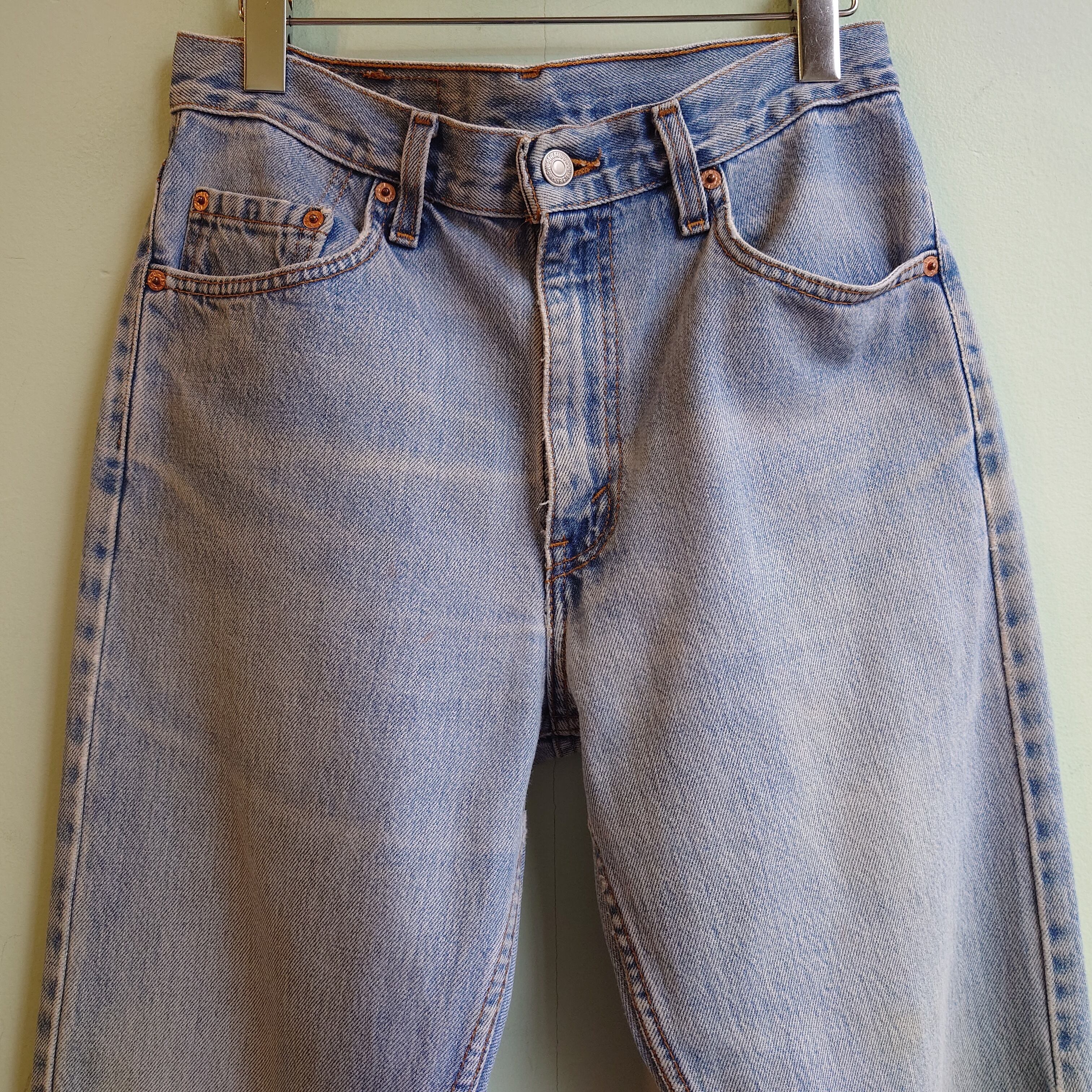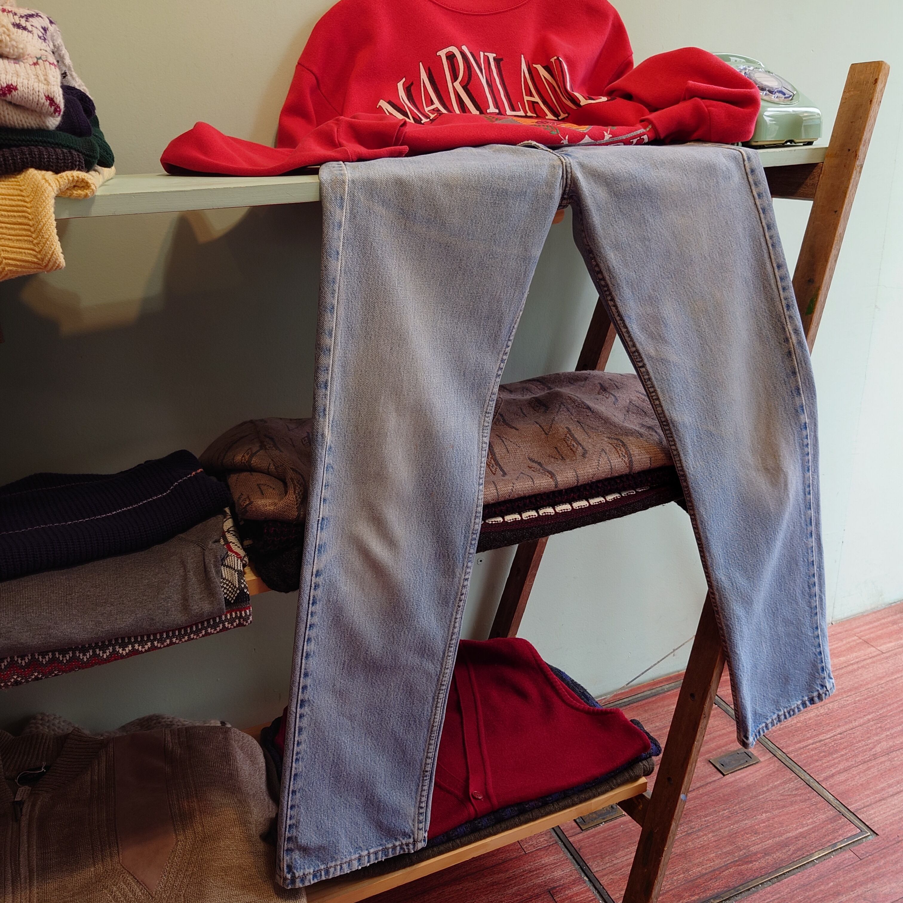 ★品番不明、刻印から90年代のものと推測されるアイスブルーのLEVI'S。ややテーパードのかかるストレートシルエットで、レトロな色落ち具合も雰囲気あり。