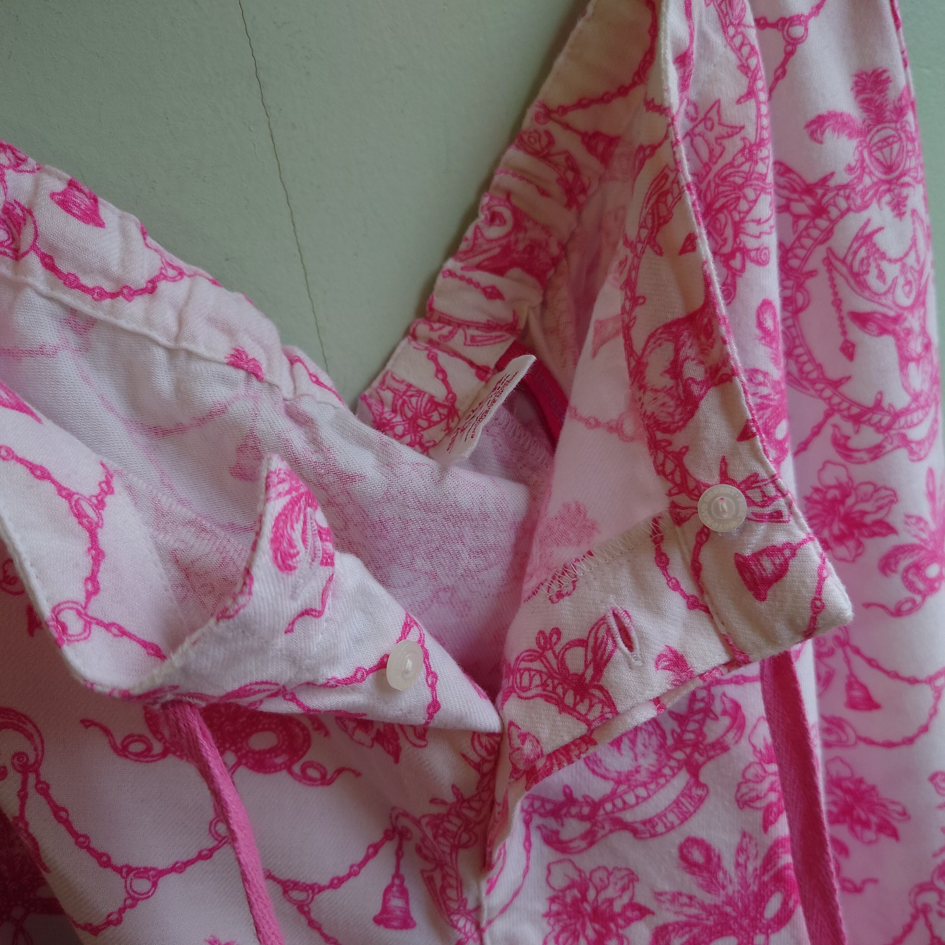 ★猟犬とヘラジカをガーリーデザインに落とし込んだ、珍しい雰囲気のパジャマパンツ。シルエットはぶかっと太めでややフレアするY2Kなライン。