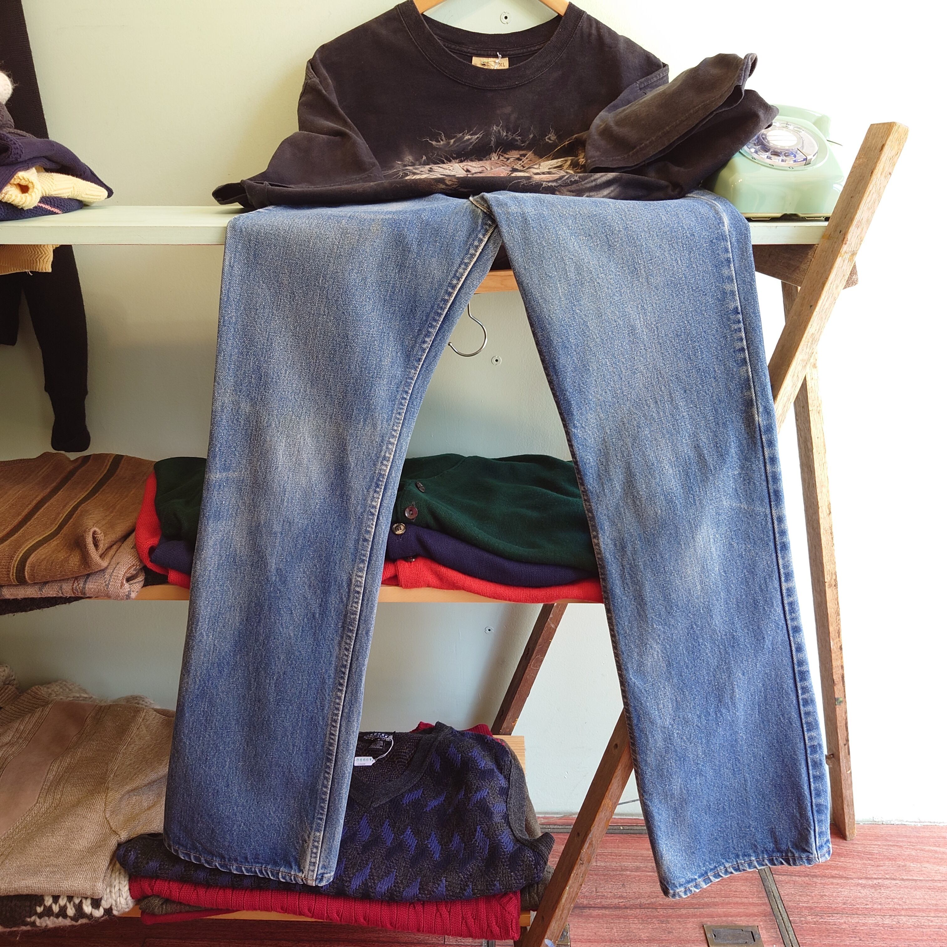 ★80-90s vintage、LEVI'S517ブーツカットジーンズ。オレンジタブと紙タグのノスタルジックさと、深みのあるインディゴと色落ちが申し分のない一本。